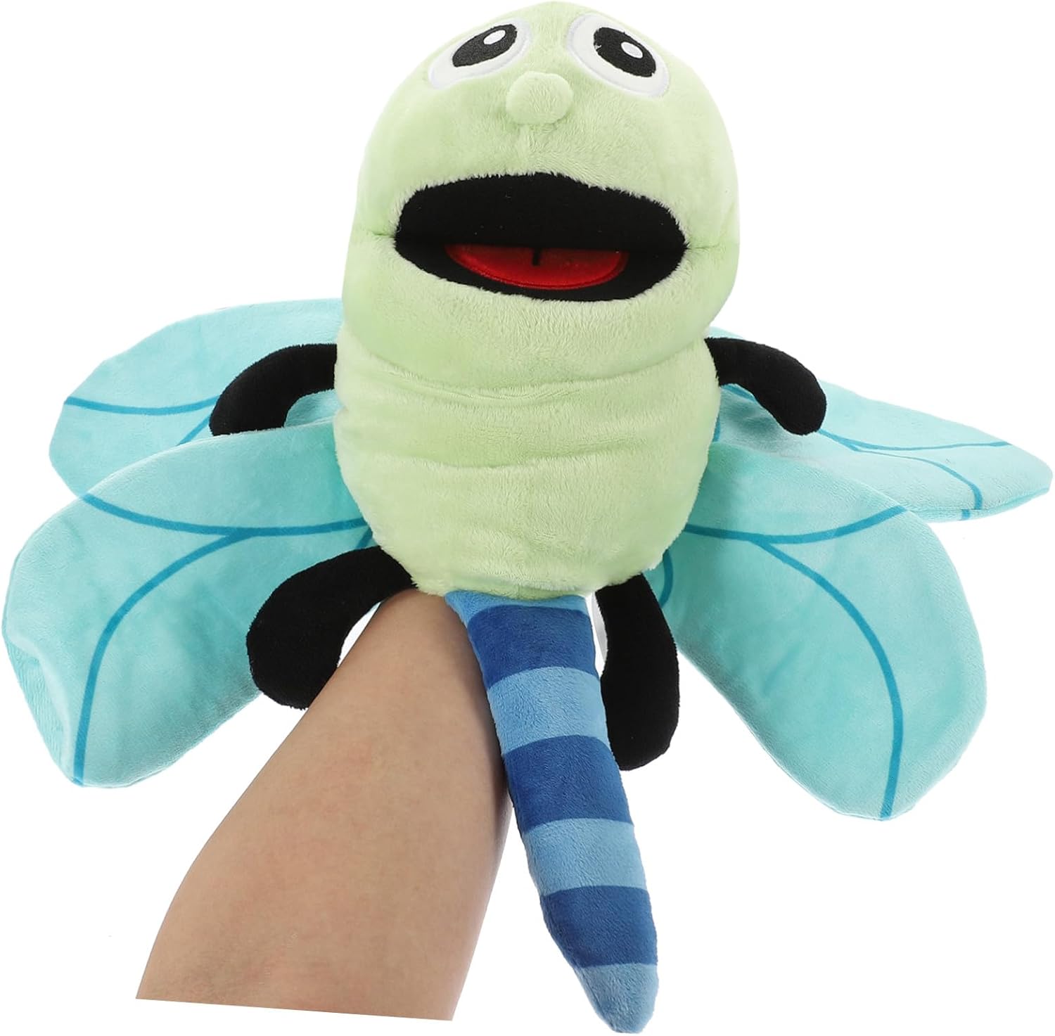 Libellula di peluche: questo simpatico burattino di peluche a forma di libellula è perfetto per il tuo compleanno, la festa dei bambini., un burattino di drago, un animale da dito: un burattino con una consistenza morbida e bocca mobile, che fornisce un'esperienza realistica e coinvolgente, bambola giocattolo per bambini: con il burattino di mano, gli adulti possono raccontare una varietà di storie interessanti e divertenti. Marionette per burattini di peluche: raccontagli storie, condividi con lui e regalagli una bella favola della buonanotte. Giocattolo per bambini carino: questo giocattolo narrativo è perfetto per l'interattività e consente ai bambini di impegnarsi in esperienze di narrazione fantasiose e creative, giocattoli con aquiloni