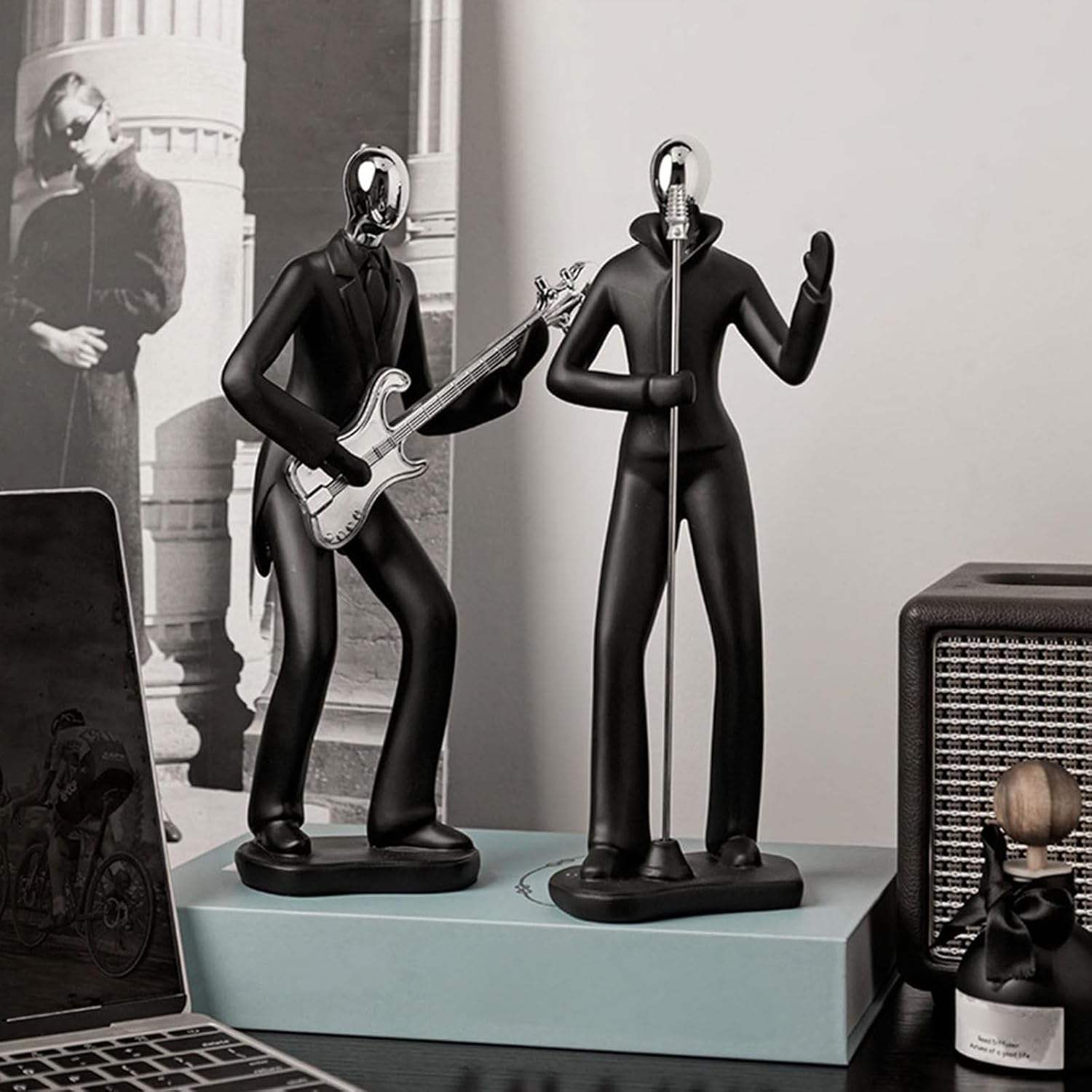 Sculture artistiche migliora l'attrazione estetica dell'area di intrattenimento, su scaffali, lobby dell'hotel o come durante feste a tema e cultura Le superfici lisce non tossiche resistono all'usura mentre offrono più temi, tra cui musicisti, atleti per espressione artistica personalizzata Per gli appassionati di musica, gli appassionati di sport, gli interni o le conversazioni per avviare l'ufficio Statua cantante ispirata al Nordics moderna in resine sintetiche che si mescolano con salotti artistici, ingressi o armadi espositivi con decorazioni per la casa rialzate Questa collezione di statuette multiuso combina decorazioni funzionali con narrazione e crea racconti visivi dinamici da musicisti e atleti accuratamente formati