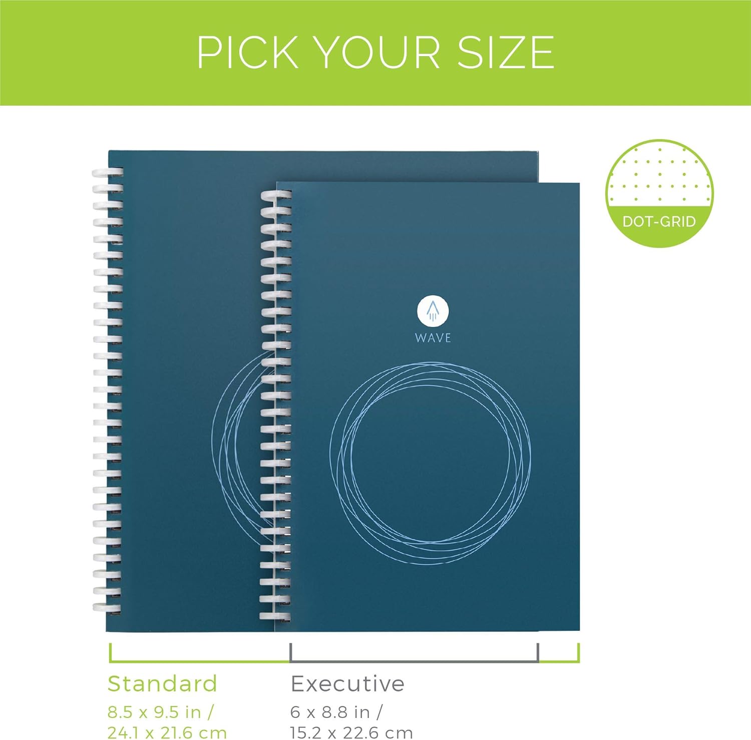 UNA PRIMA MONDIALE: Scopri il primo taccuino intelligente al mondo che può essere cancellato e riutilizzato nel microonde. Basta scaricare l'app Rocketbook per Android o iOS. Installazione semplice in soli 2 minuti. TAGLIE DISPONIBILI: Wave è disponibile nelle misure Executive e Standard. Formato Executive: 15,2 x 22,6 cm (vicino ad A5: 14,8 x 21 cm). Formato standard: 24,1 x 26 cm (vicino al formato A4: 21 x 29,7 cm). INVIA LE TUE NOTE OVUNQUE: invia le tue note a Google Docs, Dropbox, iCloud, Evernote, email e altro ancora. RIUTILIZZABILE: usa il tuo Rocketbook Wave rimuovendolo facilmente e riutilizzandolo fino a 5 volte. SUCCESSO RECORD: Rocketbook è il prodotto desktop più finanziato di tutti i tempi su Kickstarter e Indiegogo. È anche il taccuino a spirale più venduto.