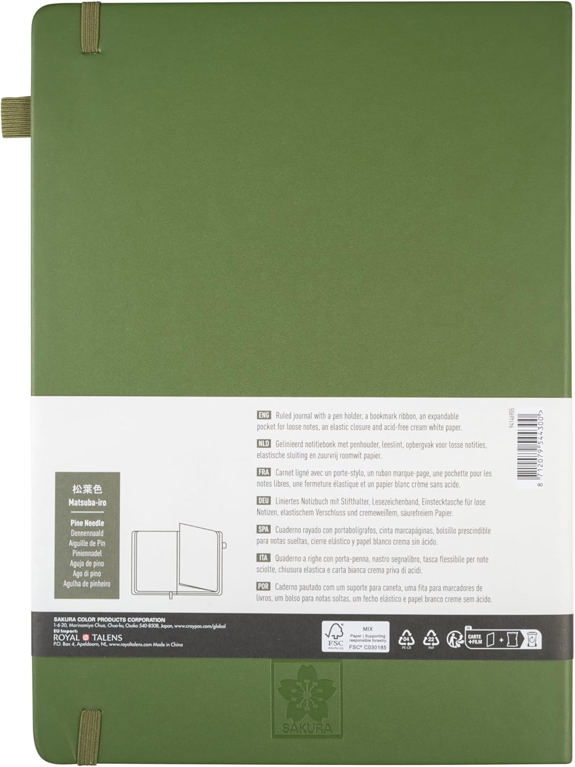 FINITURA DI ALTA QUALITÀ: il taccuino con copertina rigida foderata Sakura ha una copertina rigida colorata in ago di pino con angoli arrotondati, che fornisce una protezione duratura ed elegante per tutti i tuoi appunti. Carta certificata FSC: questo taccuino contiene 80 fogli di carta color crema chiaro senza acidi da 140 g/m², certificata FSC per il rispetto dell'ambiente e eccellenti prestazioni di scrittura. Scrittura comoda: con la classica spaziatura di 7 mm, questo taccuino offre ampio spazio per una scrittura fluida e leggibile, ideale per prendere appunti, fare schizzi e inserire nel diario. Adatto a penne diverse: la carta robusta impedisce all'inchiostro di fuoriuscire e consente di scrivere senza sforzo con diversi tipi di penne e pennarelli senza che l'inchiostro penetri. Marchio affidabile: Sakura è nota per i suoi prodotti artistici e di scrittura di alta qualità e questo taccuino offre la migliore qualità per l'uso quotidiano, ideale per professionisti e hobbisti.