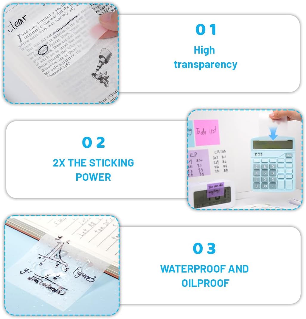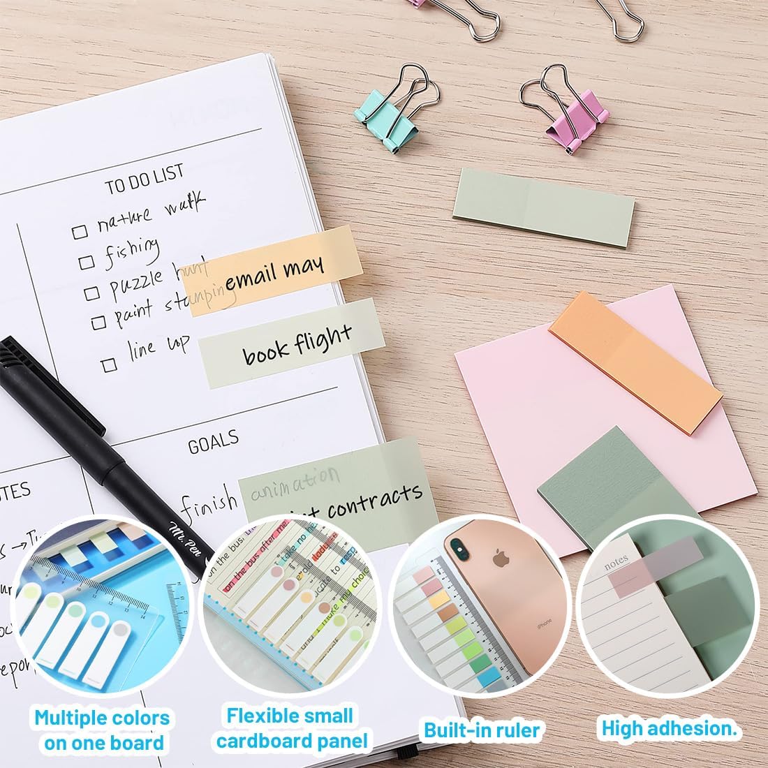 Colori vivaci e variegati: una gamma di foglietti adesivi ispirati ai macaron, disponibili in diverse tonalità, ideali per categorizzare diverse tipologie di contenuti. Migliora la distinzione visiva nelle note e nelle annotazioni soddisfacendo al tempo stesso le tue esigenze organizzative personalizzate. Trasparente e discreta: la versione trasparente consente di vedere chiaramente il testo sottostante dopo l'applicazione, ideale per annotazioni su libri o note aggiuntive su documenti. Forte adesione e durata: due volte più appiccicosi dei foglietti adesivi standard, garantiscono un fissaggio sicuro senza scivolare. Resistenti all'acqua e all'olio, mantengono le loro prestazioni in una varietà di ambienti. Righello integrato: ogni foglietto adesivo è dotato di un righello per misurare e tracciare facilmente linee, migliorando l'efficienza durante lo studio o le attività d'ufficio. Applicazioni versatili: ideali per evidenziare i punti chiave dei libri, creare liste di cose da fare, decorare diari, organizzare documenti, ecc. Che si tratti di studio, lavoro professionale o prendere appunti quotidiani, questi appunti sono essenziali.