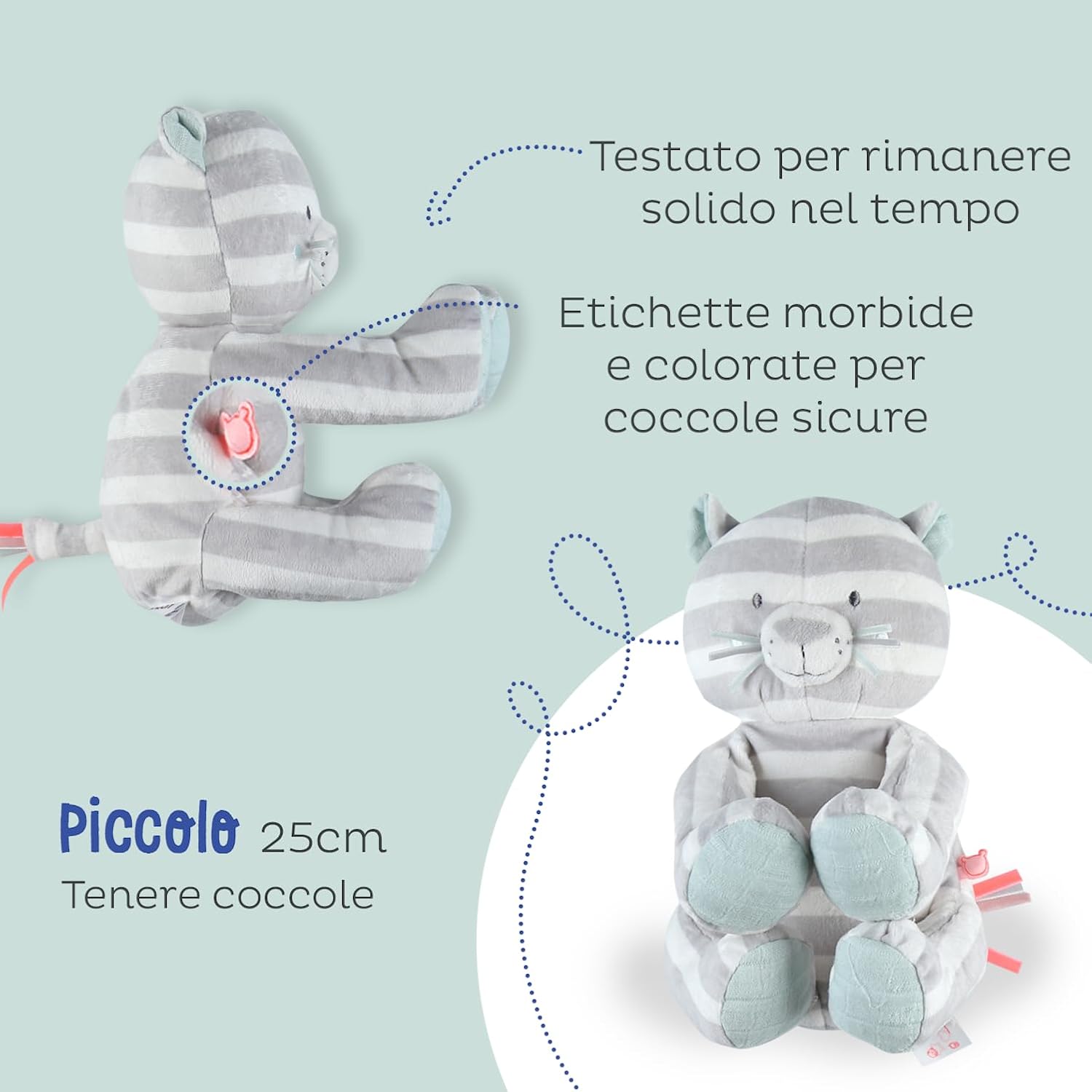 UN DOUDOU NOUKIE'S PER FARE LE COCCOLE: questo doudou per bambini è un simpatico peluche della misura giusta per il vostro piccolo amore, ideale per fare tante coccole o per decorare la cameretta dei piccolini (e anche dei grandi!). UN DOUDOU IN COTONE BIO SENZA PERICOLI PER I BAMBINI: adorabile e paffuto, questo peluche è realizzato con un materiale morbido costituito al 100% da cotone bio. Le sue etichette colorate possono essere messe in bocca senza pericolo. UN PELUCHE CARINO E DI FACILE MANUTENZIONE: testato per mantenere la sua forma nel tempo, questo peluche Noukie's è facile da mantenere e può essere lavato in lavatrice a 30°C. Si consiglia di lasciarlo asciugare all'aria. IL REGALO PERFETTO PER NEONATI O BAMBINI: i doudou Noukie's possono essere regalati fin dalla nascita per decorare la cameretta del bambino, oppure ai bambini più grandi che amano coccolare i loro doudou o fare merenda con loro! UN MARCHIO NATO DALL'AMORE PER I NOSTRI BAMBINI: da oltre 20 anni, sosteniamo i vostri bambini dalla nascita agli 8 anni. Grazie alla sua esperienza, Noukie's ha sviluppato prodotti e materiali resistenti e adatti alla crescita dei bambini.