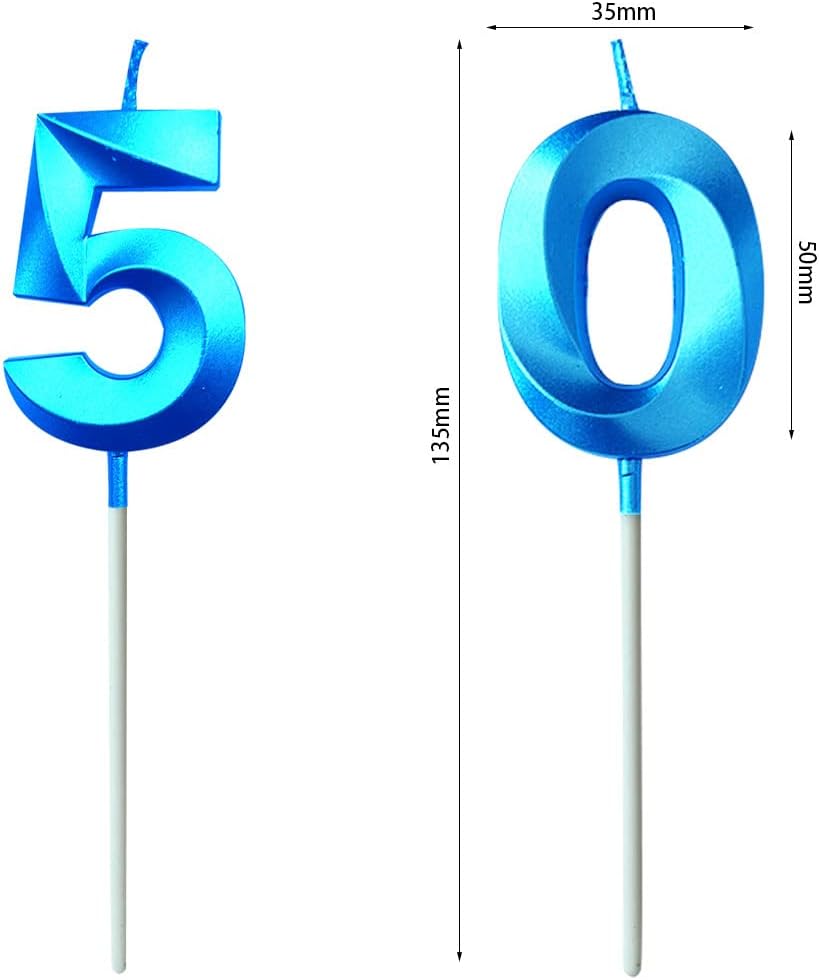 Dimensioni adatte: dimensioni intere: 13,5 x 3,5 x 1 cm, dimensioni numero H x P x T: 5 x 3,5 x 1 cm. Si prega di assicurarsi che questa candela numero sia adatta al vostro utilizzo. Buona qualità: realizzato in cera senza fumo di alta qualità. Ecologico e non tossico. Facile da inserire e leggere. Bruciare in modo uniforme e coerente. Bella ed elegante: questa candela numerica è disponibile in colore blu vivido e si illumina brillantemente nella luce scura. Rende un effetto elegante e un'atmosfera romantica per la tua festa, fai risaltare la tua torta. Per qualsiasi 50 ° speciale: questa candela numero 50 è adatta per compleanno e anniversario di matrimonio. Ampiamente utilizzato: adatto per feste di compleanno, anniversari, riunioni di famiglia, baby shower, feste di pensionamento, feste hawaiane, Natale, addio al nubilato, matrimoni, anche un buon sfondo fotografico per scattare foto interessanti.