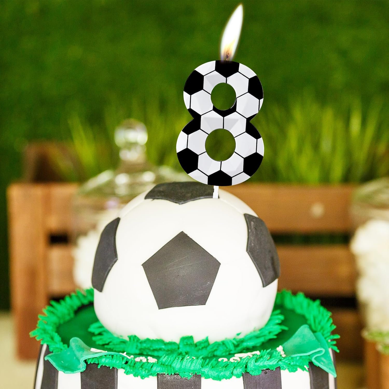 Numero 8 candele 8° compleanno candele calcio Happy Birthday candela di alta qualità cera e design 3D diamante a tema calcio topper decorazioni per torta per uomini ragazzo festa di compleanno