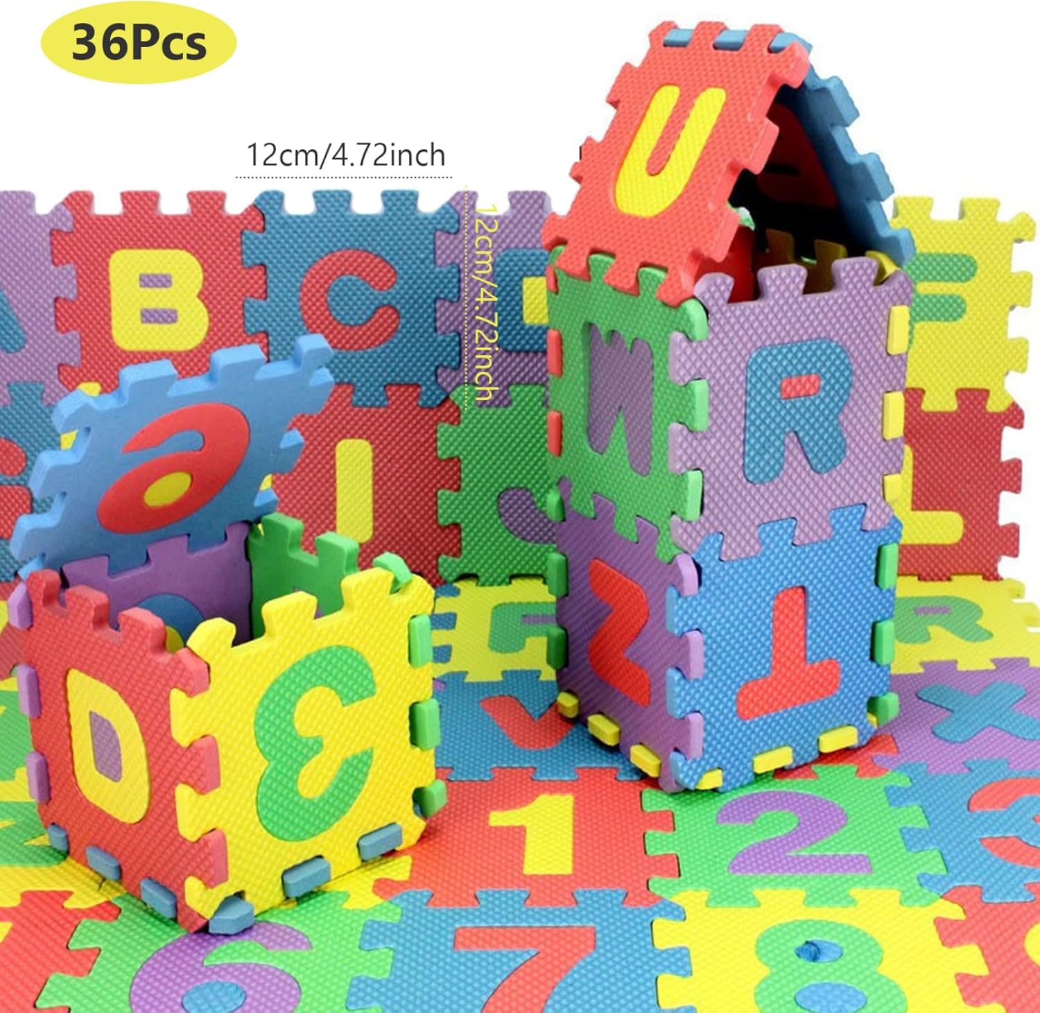 Baby Play Mat: le piastrelle di schiuma sono morbide e, fornendo un'area giochi confortevole e sicura per il tuo bambino..Questo tappetino da gioco è diventato incredibilmente popolare nelle sale da gioco, nelle scuole e nei vivai sia per l'apprendimento che per la protezione dei bambini dalla caduta sui pavimenti duri. Spazio di gioco ideale: realizzato in schiuma eva morbida, queste piastrelle da pavimento in schiuma sono, morbide e non facili da sbiadire per un uso da molto tempo..Il tappetino da gioco in schiuma per bambini è composto da 26 piastrelle con colori e lettere assortiti (da A a Z) che misurano 12x12 cm/4.72x4,72 pollici ciascuno..È l'area giochi perfetta per tuo figlio e impedisce loro di farsi male nel caso di dossi e cade su superfici dure. Giocattolo educativo: il tappetino azzurro in schiuma non può essere utilizzato solo come tappetino da gioco per mantenere i bambini e i bambini al sicuro nei salotti o nelle aree giochi, ma funge anche da giocattolo educativo efficace..Il tappetino presenta numeri e lettere, aiutando tuo figlio a imparare le basi del conteggio e del linguaggio..È un modo divertente e interattivo per tuo figlio di sviluppare le loro capacità cognitive e motorie, mentre si esercitano a abbina Facile da archiviare: questi tappetini da puzzle ti consentono di creare forme e dimensioni diverse, rendendolo un tappetino versatile per le esigenze di tuo figlio..Le nostre piastrelle da pavimento in schiuma sono perfette per il gioco indoor, ma è anche facile da pulire e riporre..Se non in uso, semplicemente impilare le piastrelle e conservare in un piccolo spazio..I giocattoli educativi sono anche leggeri e portatili, rendendolo perfetto per date da gioco, picnic e atti Vibrant Play Mat: il tappetino da gioco per bambini in schiuma Eva è dotato di colori brillanti e 26 pezzi di schiuma di grandi dimensioni con lettere staccabili..Questi tappetini alfabeti offrono un'esperienza di gioco stimolante e coinvolgente.
