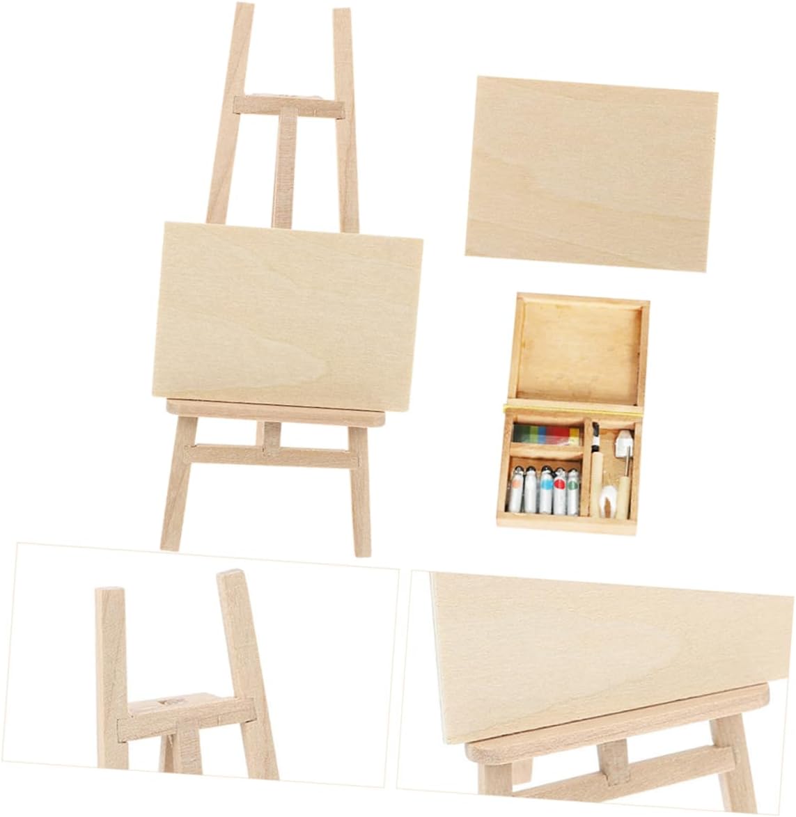 Mini modello di cavalletto in legno: dimensioni ridotte, facile da trasportare, facile da trasportare o facile da posizionare, può essere utilizzato come arredamento quotidiano per la casa, decorazione del tavolo da disegno della casa delle bambole Mini accessorio per la casa: di ottima fattura, ottimo per la casa delle bambole o per l'arredamento di micro paesaggi, tavolo da disegno per micro paesaggi Fornitura per la casa delle bambole: può essere utilizzata come decorazione domestica, supporto fotografico, mini accessorio per la decorazione della casa, modello micro cavalletto Accessorio paesaggistico fai da te: ampia di accessori per scene in miniatura, facili da abbinare ad altre decorazioni, decorativi e creativi Tavolo da disegno in miniatura in legno: realizzato in materiale di legno, realistico e da giocare, è l'accessorio per la casa delle bambole, cavalletto in legno in miniatura
