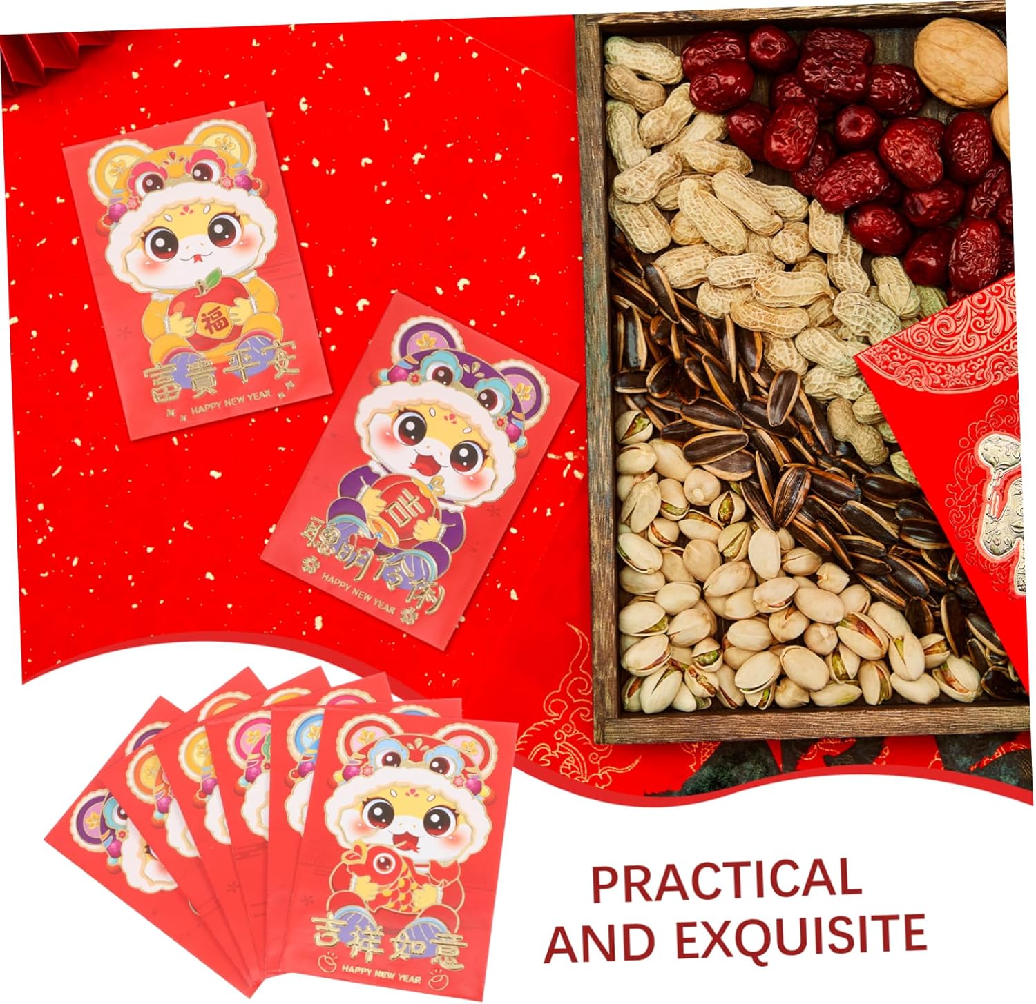 Stampa fine: le buste presentano una stampa fine con colori vivaci e disegni che catturano l'essenza del anno, buste decorative, buste per denaro contante Design accattivanti: i vivaci e accattivanti design dei cartoni animati fanno risaltare queste buste, aggiungendo un elemento divertente ai tuoi regali, buste fantasiose, buste per il capodanno cinese Leggero e portatile: facile da usare, leggero, facile da aprire o chiudere, portatile e comodo per mettere o togliere oggetti, busta rossa di capodanno, busta rossa Design festoso: caratterizzate da vivaci e festosi disegni di cartoni animati, queste buste rosse sono ideali per celebrare il capodanno cinese 2025, decorazioni per il capodanno cinese, buste rosse per il capodanno cinese Adorabili personaggi dei cartoni animati a forma di serpente: ogni busta presenta adorabili personaggi dei cartoni animati a forma di serpente che piacciono sia ai che agli adulti, rendendole ideali per le feste di famiglia, buste cinesi per soldi, buste rosse