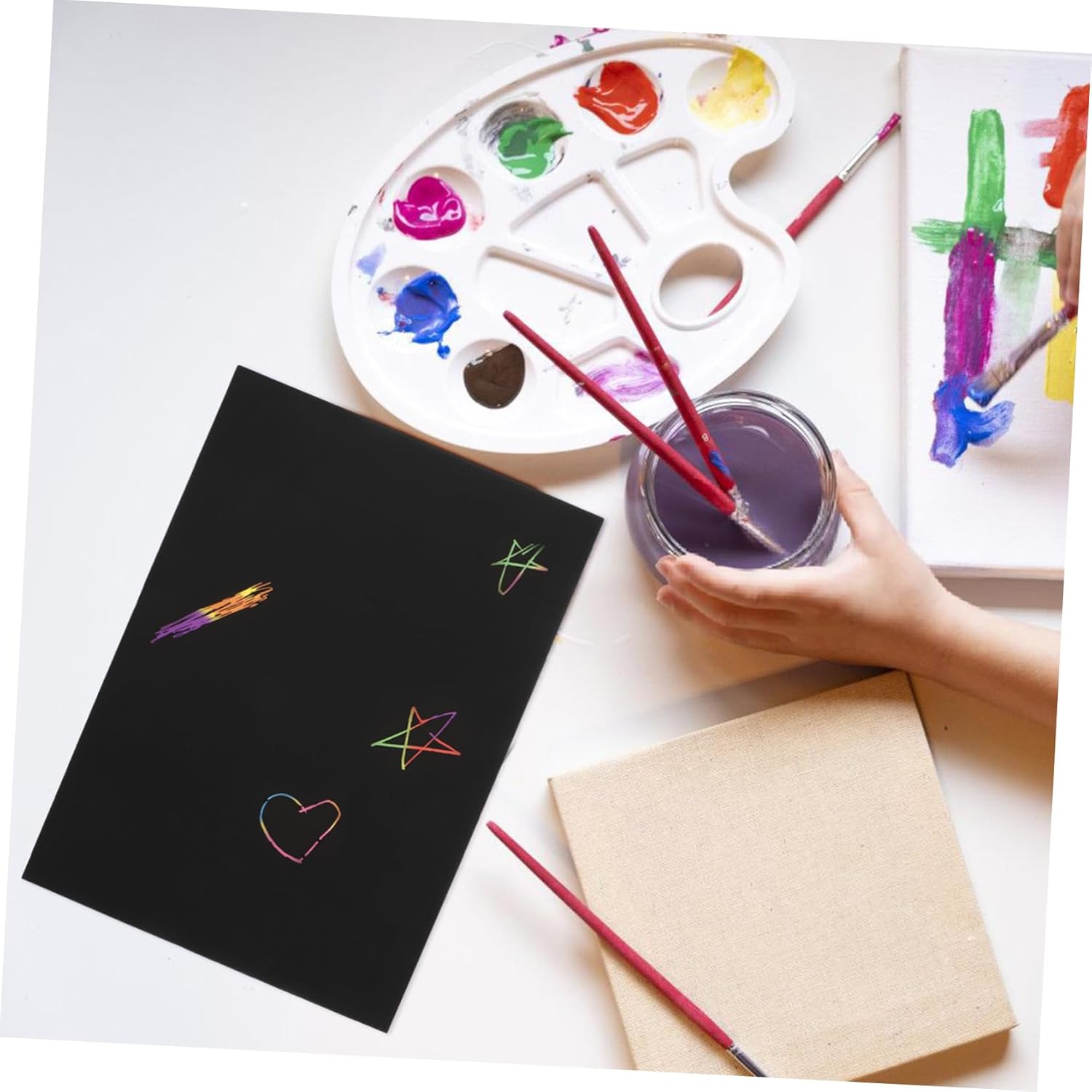 Divertente pittura da grattare: il kit di carta da grattare può essere utilizzato evento di gioco per la festa per permettere a tutti di creare a mano. Gratta e vinci: è ottimo per i bambini per sviluppare la propria immaginazione e passare il tempo. Divertente carta fai-da-te: ideale per graffiti fai-da-te, disegno a mano, sviluppo dell'intelligenza, nonché per il tempo libero e l'intrattenimento degli adulti. Mestiere di pittura su carta gratta e vinci: può esercitare la coordinazione occhio-mano dei bambini, la capacità di riconoscimento del colore e la loro creatività. Pittura creativa da grattare: questo kit di carta artistica da grattare può darti divertimento in diversi progetti. unico e accattivante, rendendolo un ottimo per i bambini.