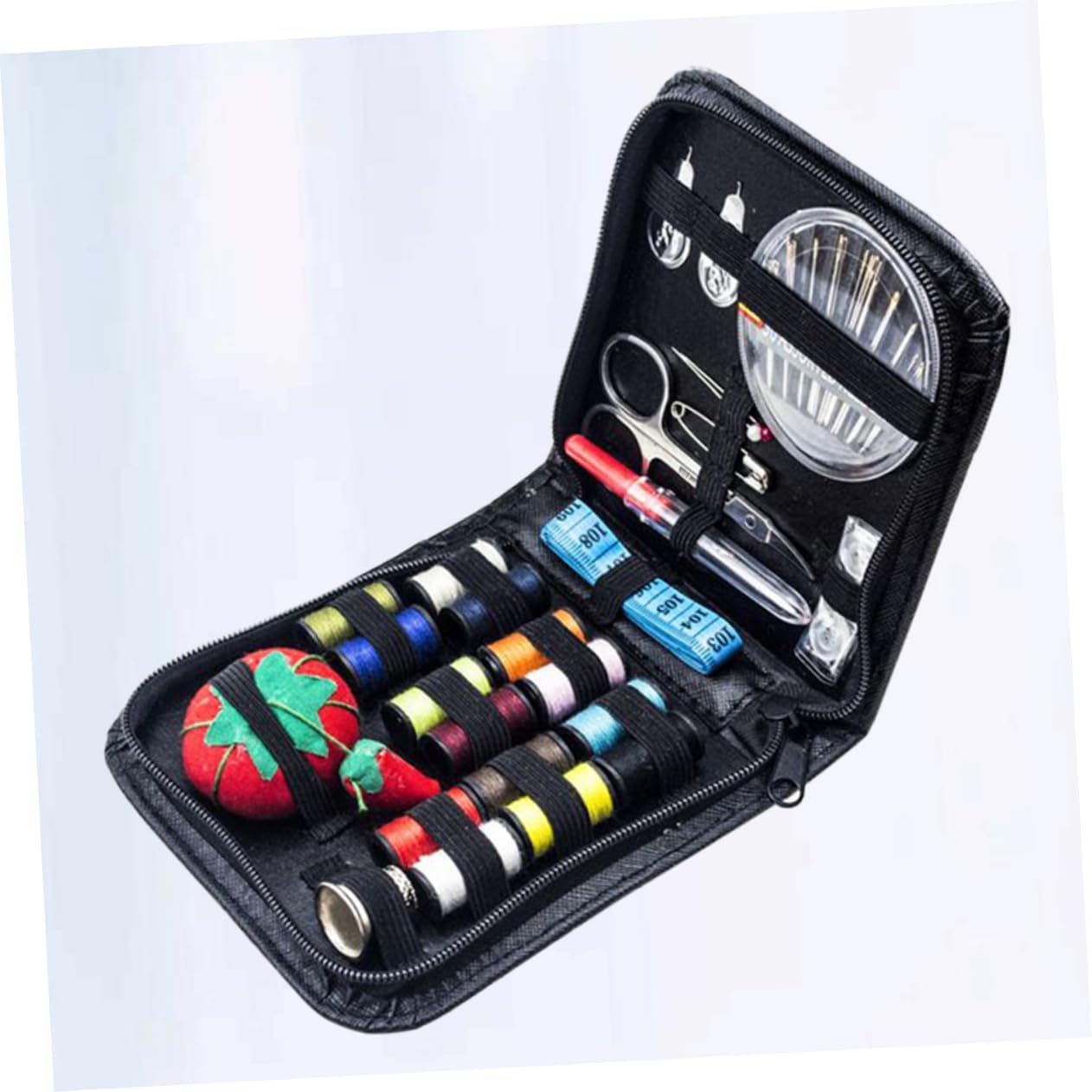 Strumenti per cucire: il set include 1 scatola di aghi; 1 set di 14 di filo colorato; 1 righello; 1 tagliafilo; 1 forbice; 1 cuscinetto per aghi a forma di fragola; 1 ditale; 1 set di 3 bottoni; 1 set di 2 infila ago; 1 set di 2 aghi per perline; 1 spilla e 1 borsa portaoggetti, strumenti per filo da cucito Kit di aghi da cucito: organizzato, leggero e pratico, è il tuo kit di forniture per cucito portatile, strumenti per filo da cucito Strumenti per il filo da cucito: la borsa con cerniera può contenere bene gli strumenti ed è comoda per la ricerca, kit di aghi da cucito Ottimo per decorazioni da cucito, artigianato, vestiti, sartoria, ecc Tutti gli strumenti necessari per il cucito fai da te dei costumi