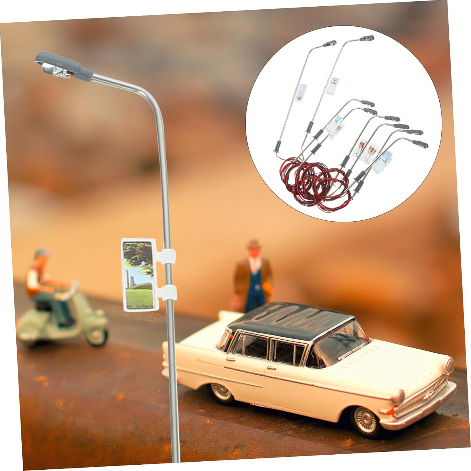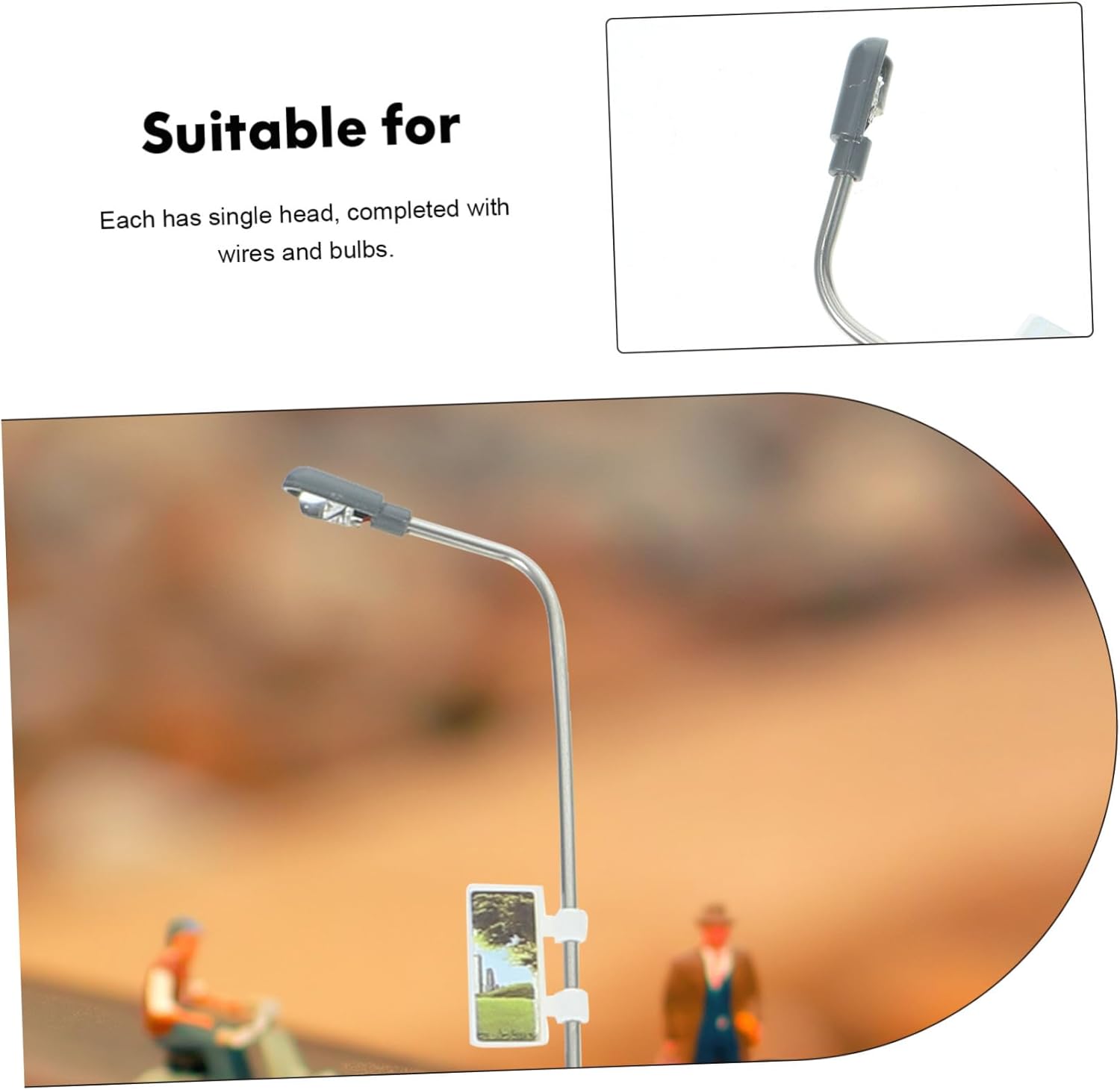 Lampione modello in scala - realizzato con materiali resistenti e pratici, modello di lampione Lampione modello: ognuno ha una testa singola, completo di fili e lampadine, modello di lampione in scala Lampione modello: queste luci non possono essere accese ininterrottamente per troppo tempo, altrimenti la gomma avvolta sulla lampadina scioglierà, lampione modello Lampione stradale 1/100 - adatto per costruire modelli di tavoli di sabbia, modelli di treni, modelli di micro paesaggi, tavoli di sabbia psicologici, modelli di lampione Lampione stradale 1/150: utilizzato principalmente per decorare il tuo modello di layout, lampione modello