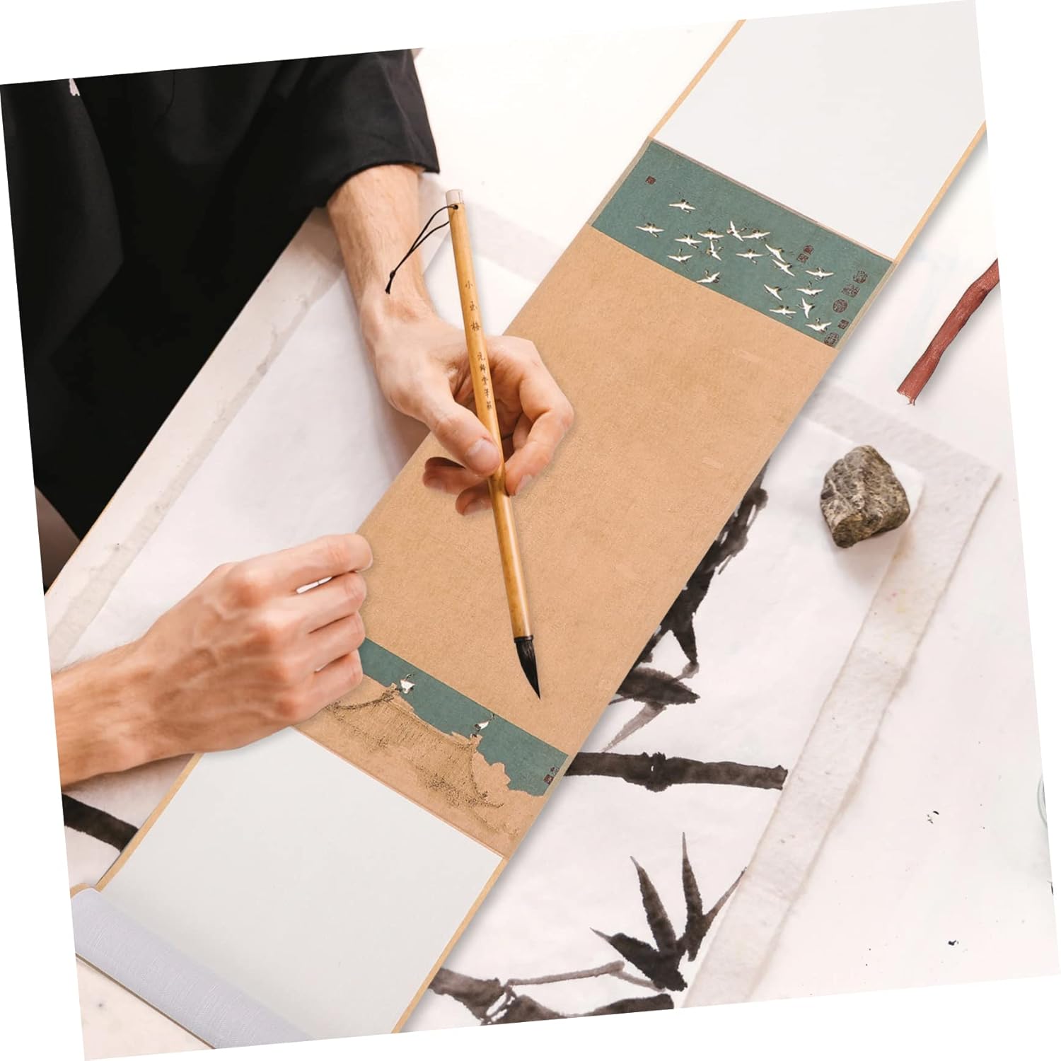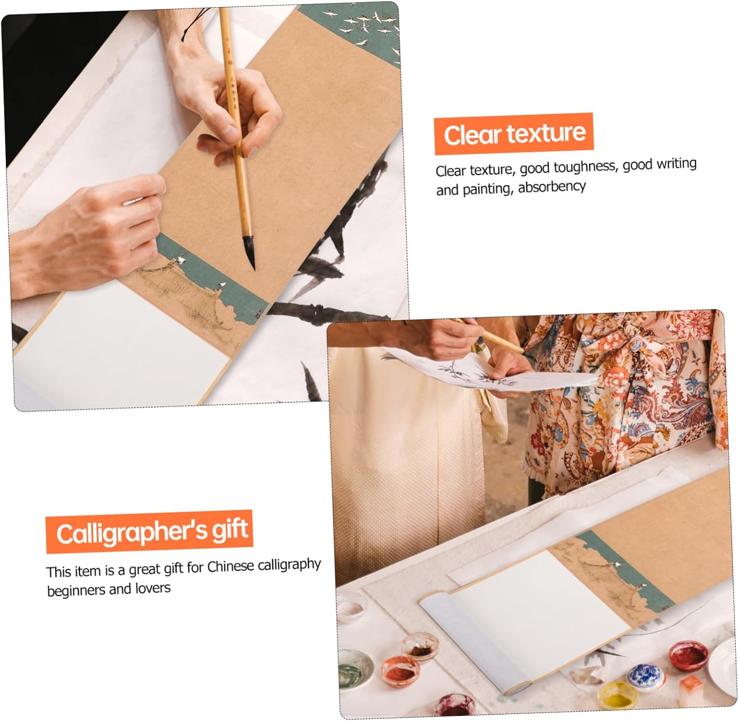 Carta bianca per pergamene sospesa: progettata per i principianti e adatta anche per calligrafi esperti. Decorazione da parete sospesa: realizzata in carta di riso, durevole da usare. Carta chunlian con distici vuoti: puoi dipingere o scrivere direttamente sulla semplice area di carta di riso al centro. Carta per sospesa: realizzata in materiale di alta qualità per un uso durevole e duraturo. Carta cinese a scorrimento: multifunzionale e versatile, ampiamente applicata nella scrittura, nella pittura, ecc.