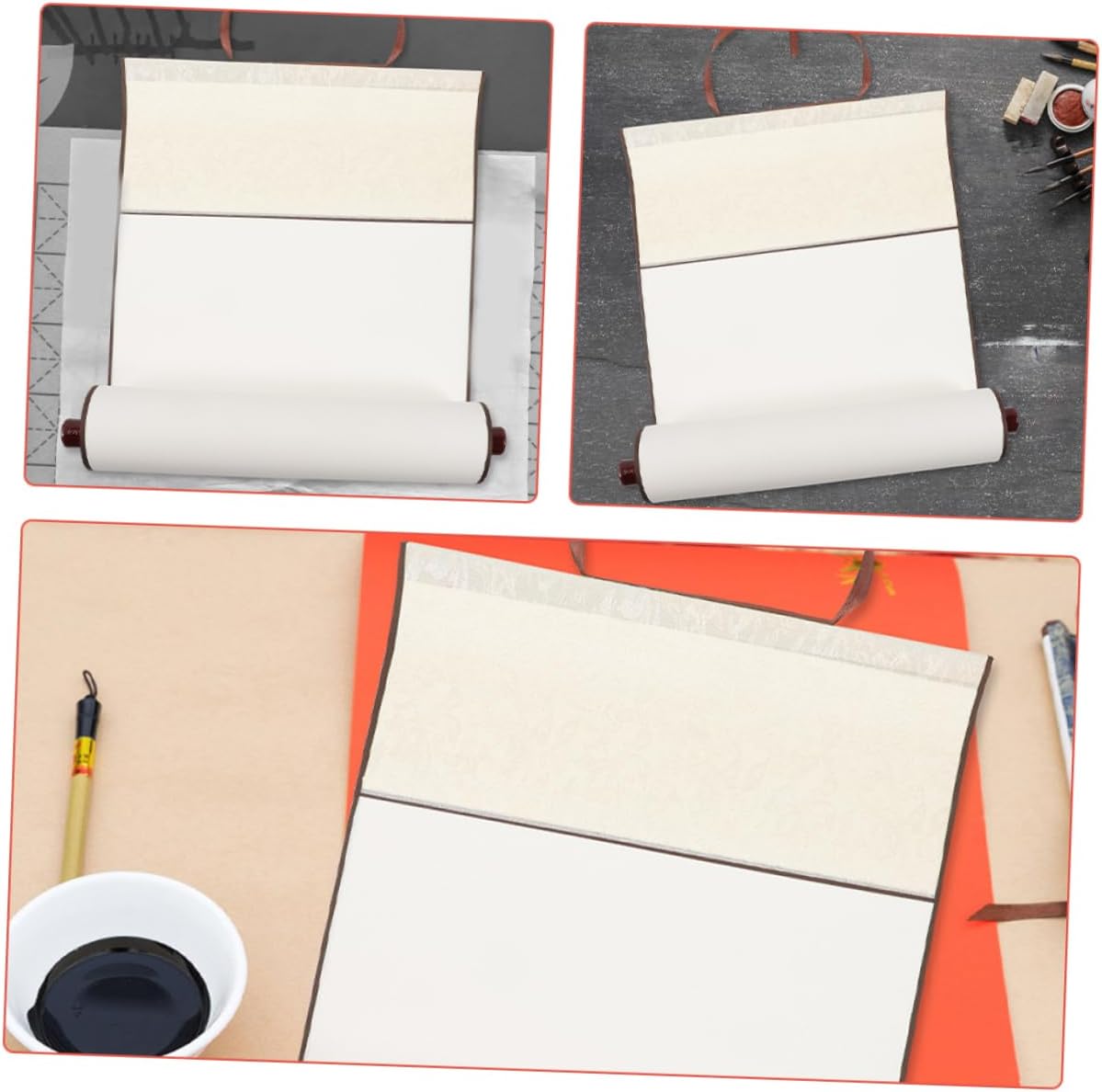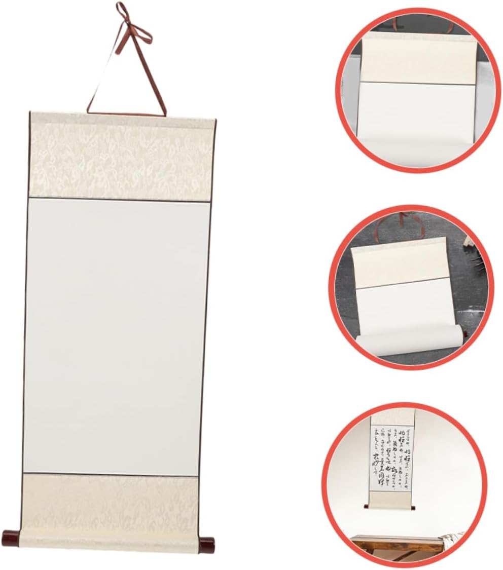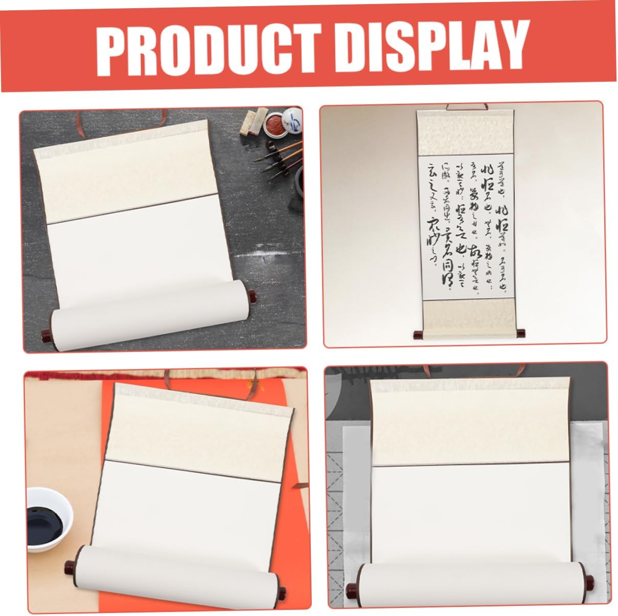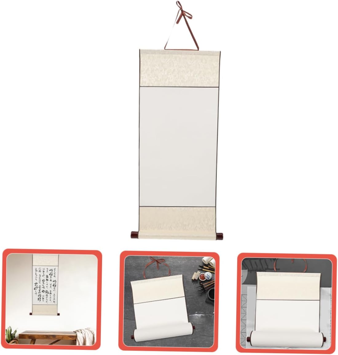 Rotolo da parete artistico: questo rotolo vuoto multifunzione e sospeso può offrirti un'eccellente esperienza di scrittura e disegno. Scorri per dipingere: design scorrevole e leggero, può essere riposto a piacimento, non occupa spazio. Carta di riso cinese: puoi dipingere o scrivere direttamente sull'area di carta comune al centro. pieno di atmosfera retrò per sospendere il giornale in corridoio. Scorrimento vuoto multifunzione: ha inchiostro moderato e infiltra lentamente, adatto per pittura a pennello cinese, scrittura, pittura calligrafica. Pergamena vuota per calligrafia: la pergamena per calligrafia ha una consistenza chiara, buona tenacità, buona scrittura e pittura, assorbenza.
