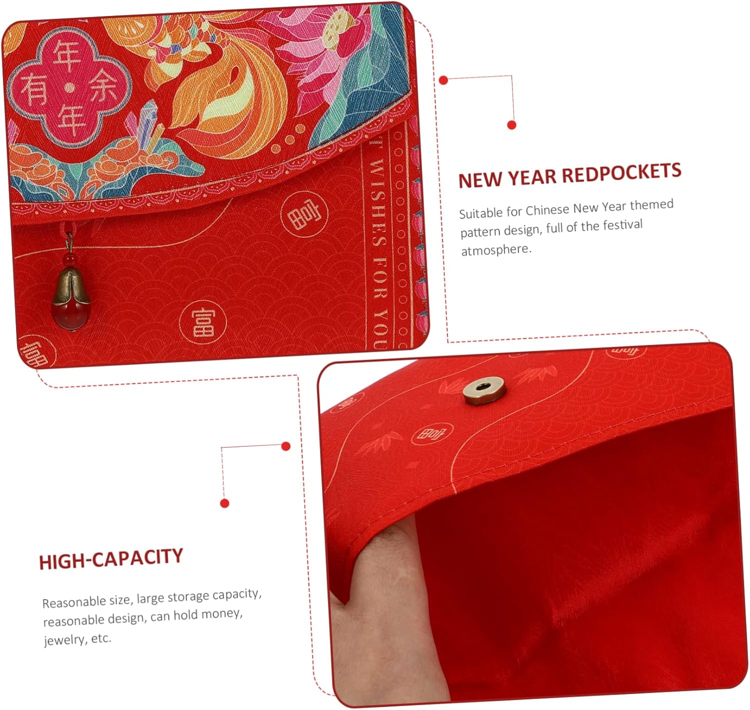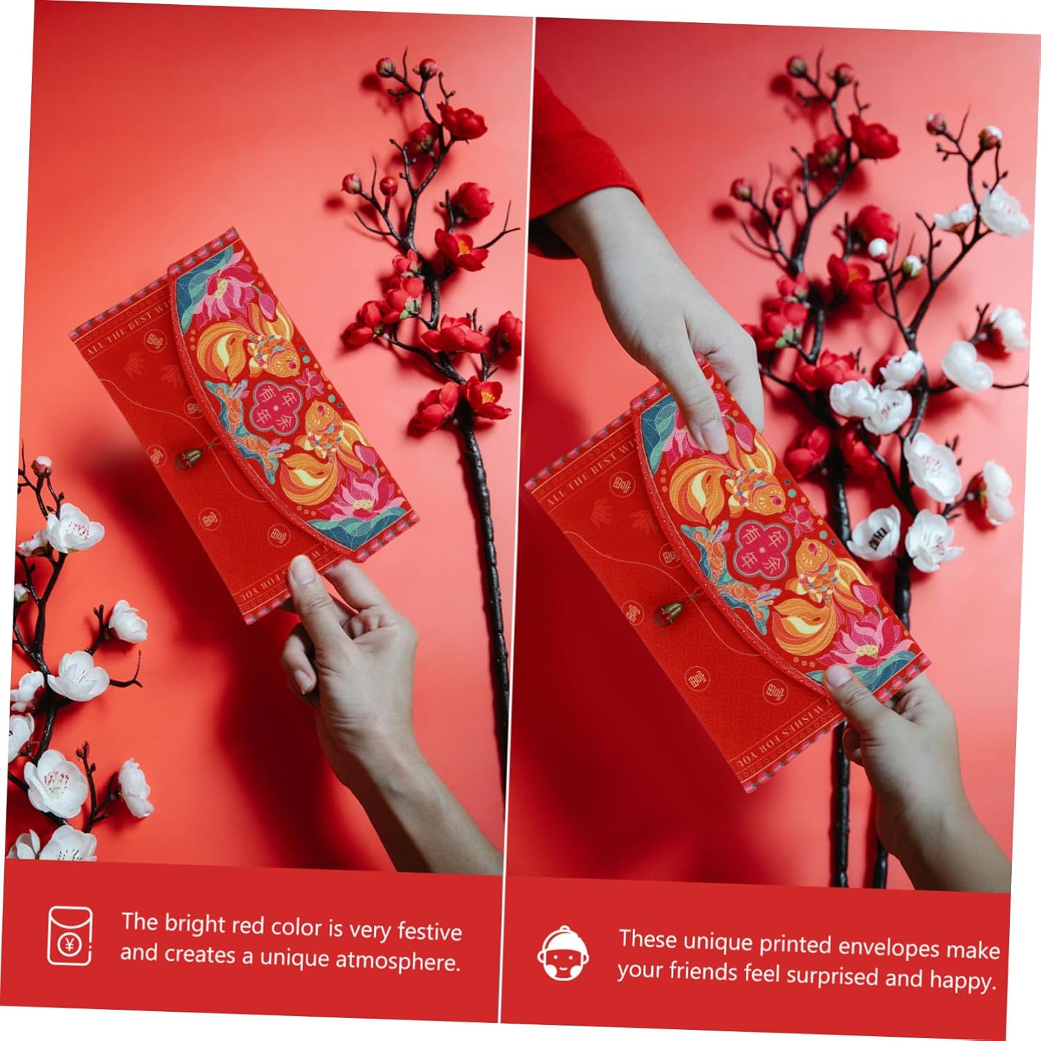 Busta rossa creativa: significa auguri dagli anziani alle giovani generazioni, augurandovi allegria e salute durante il anno in arrivo, pacchetti rossi per il capodanno lunare Tasca rossa: puoi riempirla di denaro durante il capodanno cinese, pacchetti rossi decorativi e creativi, pacchetto di stoccaggio del denaro Busta rossa: la che riceve la busta rossa sentirà la tua gentilezza, pacchetto rosso decorativo Busta rossa per il capodanno: una busta rossa per il capodanno lunare cinese, che augura felicità, salute, buon auspicio e prosperità, tradizionale tasca rossa Buste rosse per il capodanno cinese: realizzate in materiale con lavorazione squisita e pregiata, forniture per il capodanno