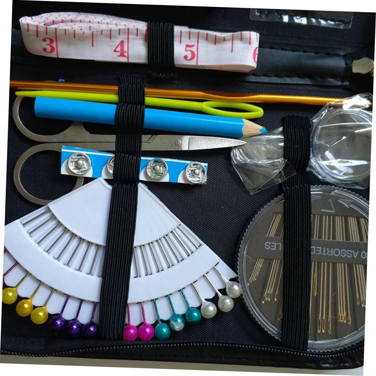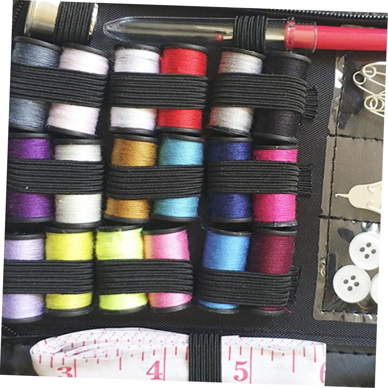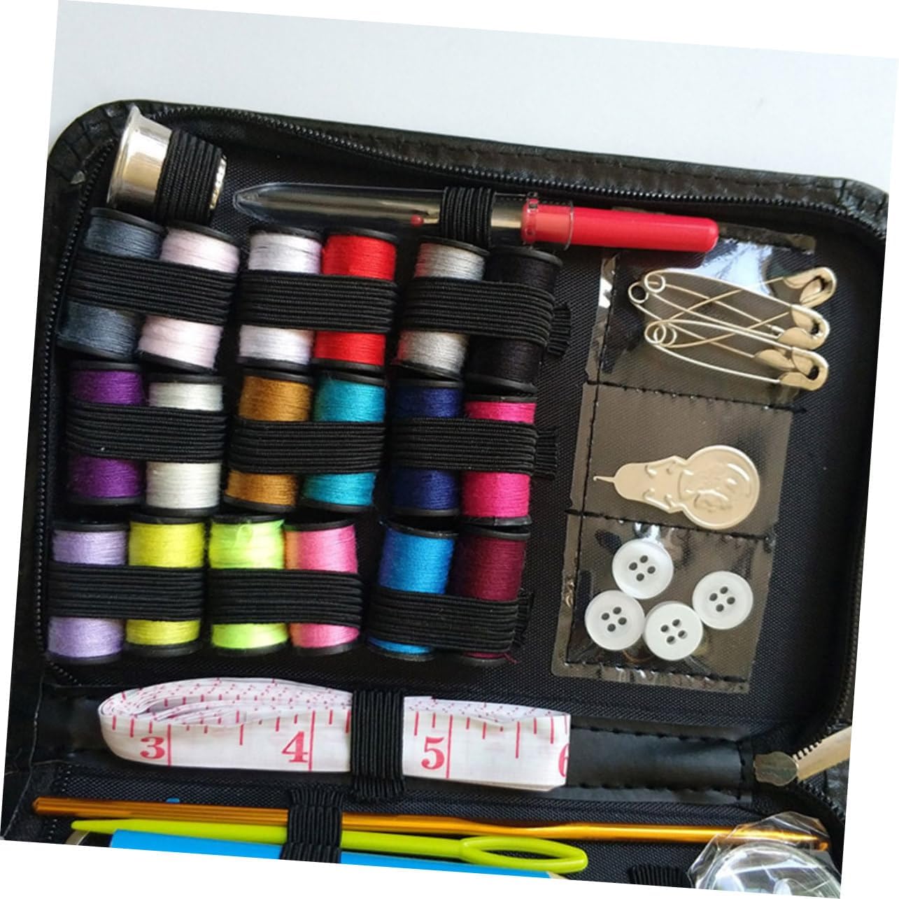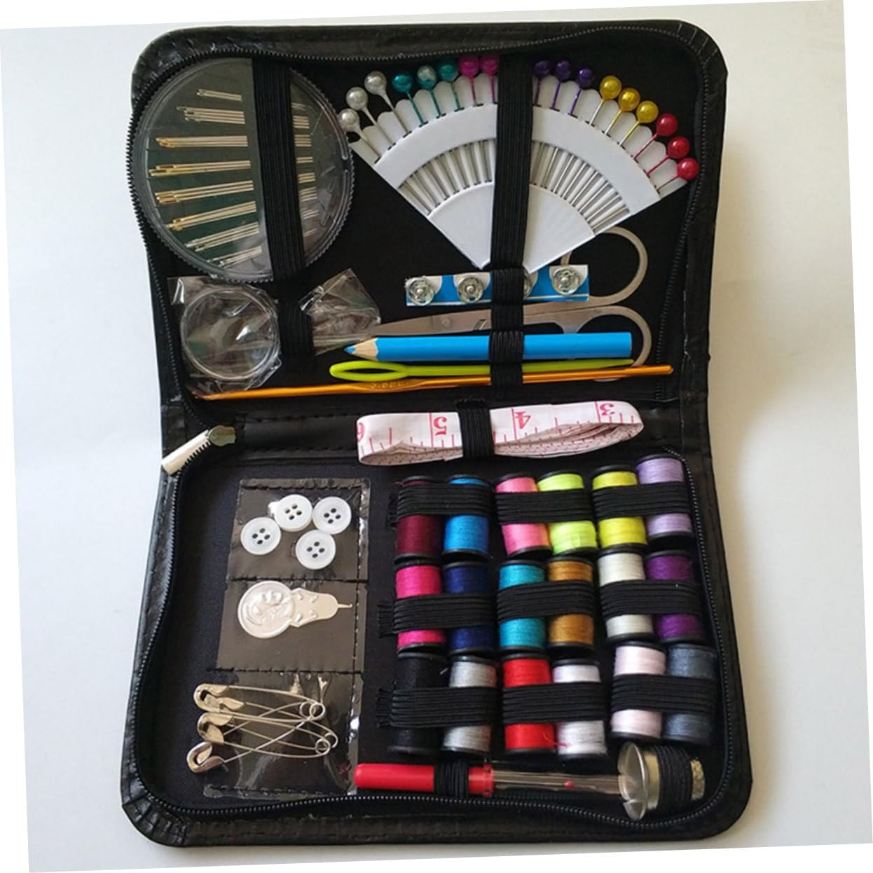 Accessori per cucire: applicabile di abbigliamento, tessuti industriali, per la casa e altri, borse per kit da cucito Kit da cucito: design compatto, piccolo spazio occupato, facile da trasportare, borse per riporre i kit da cucito Utensili domestici: viene utilizzato per cucire e decorare vari colori, oggetti di artigianato, indumenti e così via, borse per riporre kit da cucito Borse per kit da cucito: il kit da cucito soddisfa tutte le tue esigenze, contiene tutti gli strumenti da cucito necessari: forbici, bobine di filo, spille da cucito, aghi da cucito, bottoni, strumenti per aghi filettati, fermagli e così via, 78 pezzi in totale, accessori per cucire Tutti i tipi di strumenti per il lavoro con ago possono essere caricati nella scatola di immagazzinaggio per