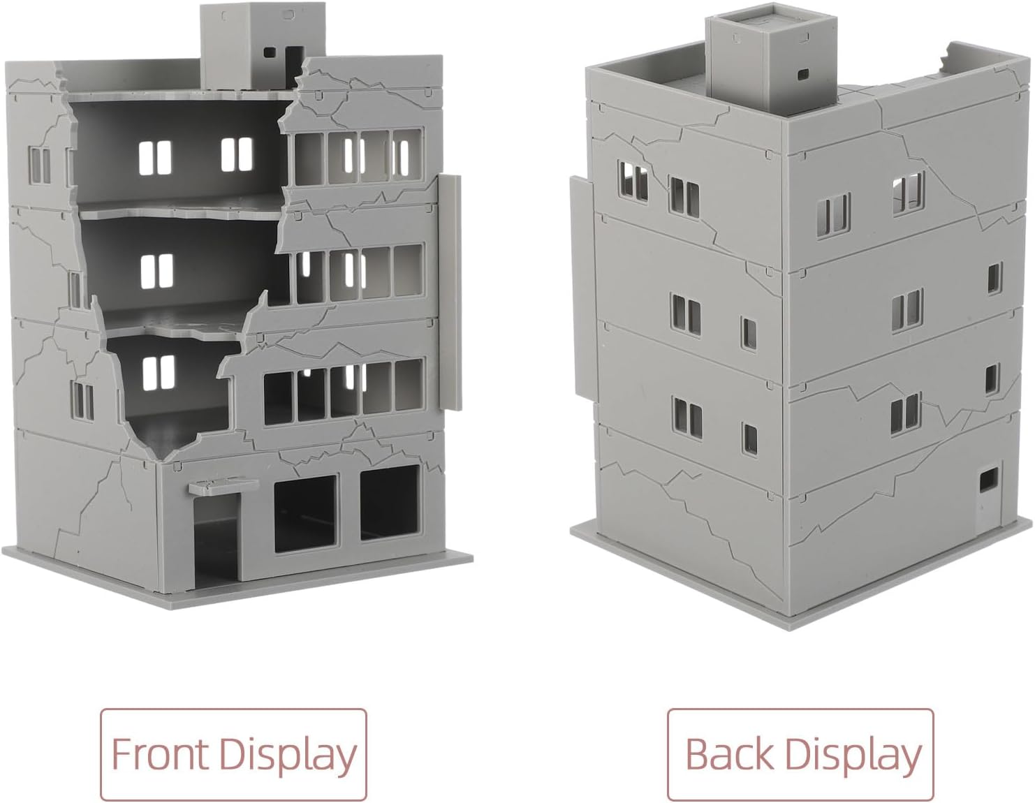 Precisione storica in miniatura: l'edificio residenziale in rovina cattura intricate tracce di guerra, offrendo alla storia un modello costruibile che aggiunge dettagli realistici ai tuoi modelli di edifici architettonici o collezioni di modelli di rovine abbandonate Adatto per diorami creativi: con la sua estetica di casa in rovina, questo prodotto funge da versatile ornamento di micro-paesaggio, fondendosi perfettamente con ambienti come edifici cittadini in rovina o altri progetti di case in miniatura Costruzione in plastica: Progettato per durare, l'edificio danneggiato da tavolo fornisce stabilità mentre si piega facile da montare È adatto per creare un modello di paesaggio in rovina o abbellire il tuo diorama militare Design narrativo: ogni aspetto del modello in rovina racconta una storia, arricchendo la disposizione degli edifici in miniatura danneggiati e aggiungendo profondità alla visualizzazione di qualsiasi edificio cittadino in rovina o modello di edificio in plastica Complemento ideale per il paesaggio: completando un paesaggio ferroviario con edifici in rovina in una città, questo edificio in miniatura danneggiato aumenta il realismo e fa appello agli hobbisti che desiderano un maggiore impatto visivo per le loro creazioni di modellismo in scala reale