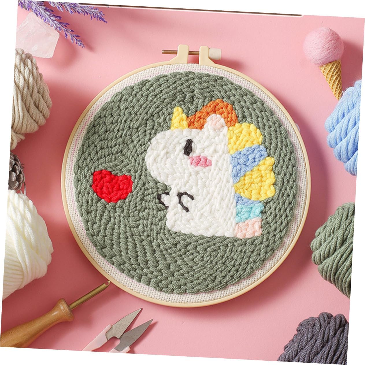 Decorazione creativa: l'articolo è un set di ricamo a punzone per fornire gli strumenti necessari per i appassionati di artigianato artistico fai da te, artigianato artistico del ricamo Base rotonda per ricamo: il set di fili di lana colorati può soddisfare facilmente le tue esigenze di ricamo con motivi colorati, artigianato artistico per ricamo Aghi per stoffa: finire il ricamo fai da te con i tuoi amici o i tuoi è davvero un momento significativo e speciale, artigianato artistico del ricamo Ricamo artigianale: semplice da seguire, pezzo di stoffa per ricamo a punzone fai da te, borsa di materiale fai da te Accessori fai da te: ago da punzonatura con manico in legno e design ergonomico per una migliore presa, divertimento e apprendimento per i , artigianato artistico e ricamo