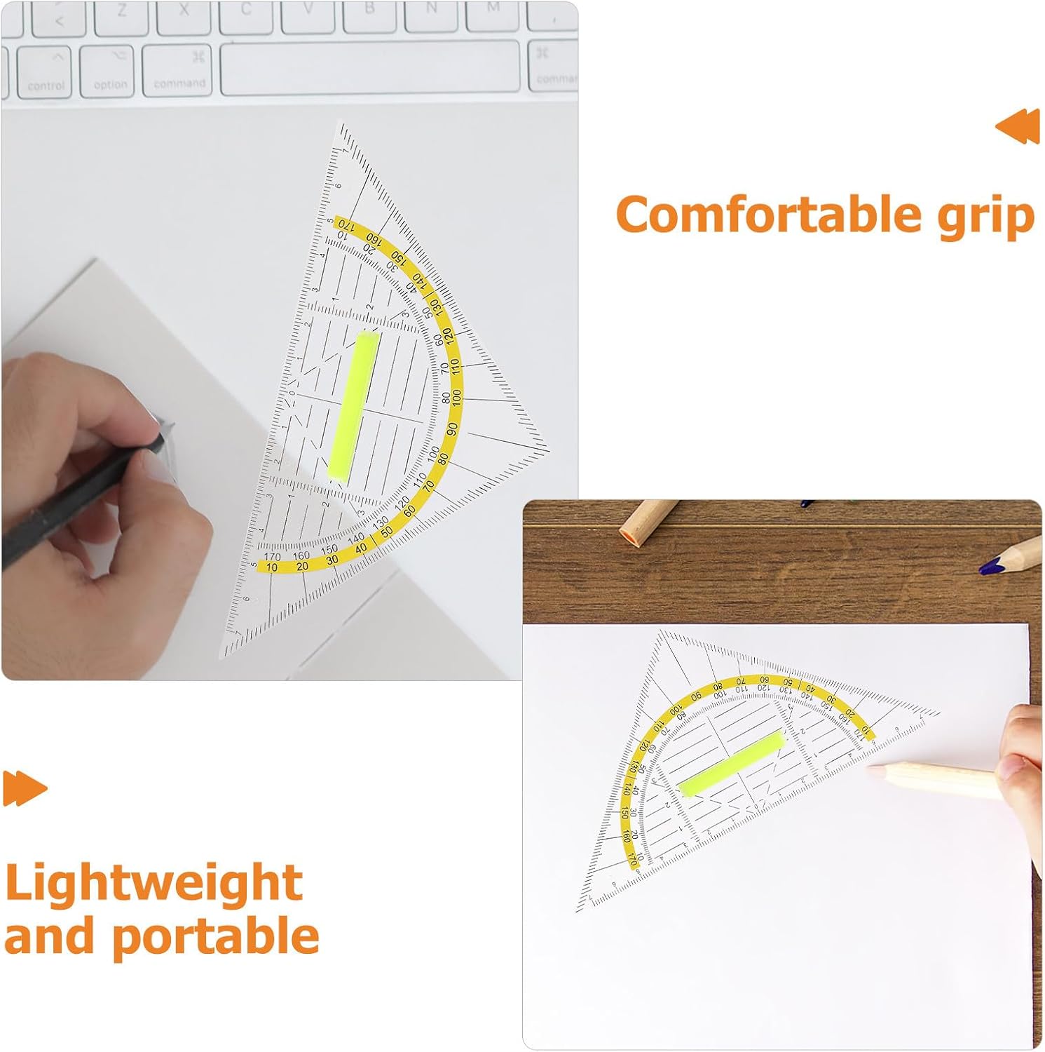 Precisione: ottieni misurazioni precise con il set di righelli dotato di maniglia integrata, che garantisce stabilità durante l'uso del righello per qualsiasi lavoro di cancelleria scolastica con righello geometrico Set versatile: può essere utilizzato come goniometro, righello triangolare, consentendo una soluzione completa per la marcatura degli angoli per la scuola o l'ufficio Uso professionale e per studenti: i set di righelli triangolari in plastica leggera sono pensati per i bambini che per le attività scolastiche e ingegneristiche, soddisfacendo ogni esigenza di classe e di progettazione Qualità duratura: il righello in plastica con manico resiste all'uso frequente in classe, agli strumenti da ufficio per le attività in classe e alle ripetute applicazioni su scala ingegneristica Facile da riporre e trasportare: questi strumenti da disegno portatili, compresi i piccoli righelli, si adattano perfettamente agli zaini o ai cassetti della scrivania, rendendoli un must per le forniture scolastiche e i professionisti