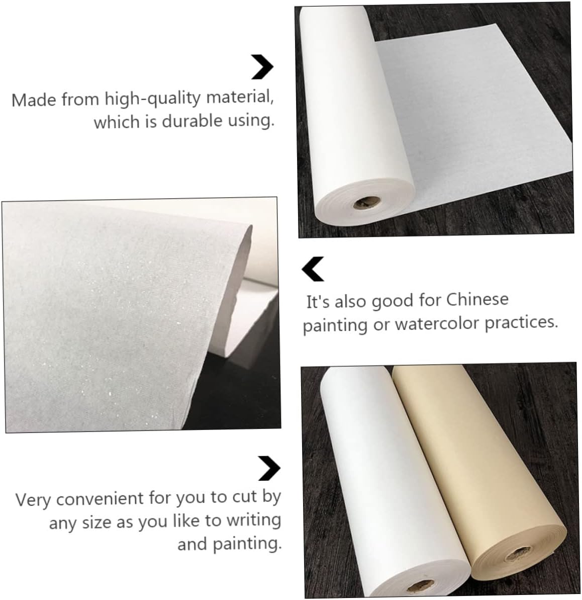 Carta xuan addensata: ha un'imbibizione moderata dell'inchiostro e un'infiltrazione lenta, adatta per la pittura cinese a pennello, la scrittura, i kanji e la pratica della calligrafia giapponese. Sumi-- cosa riceverai: riceverai un rotolo di carta di riso, che è molto comodo per tagliare qualsiasi dimensione in base alla scrittura e al disegno preferiti. i di carta di riso sono facili da riporre e non occupano molto spazio. Scrivere carta di riso: molto comoda da tagliare di qualsiasi dimensione come preferisci scrivere e dipingere. Carta artistica cinese: non facilmente penetrabile durante la pittura. possono essere conservati ordinatamente sulla carta. Carta da pittura cinese: offre un'eccellente esperienza di scrittura e disegno.