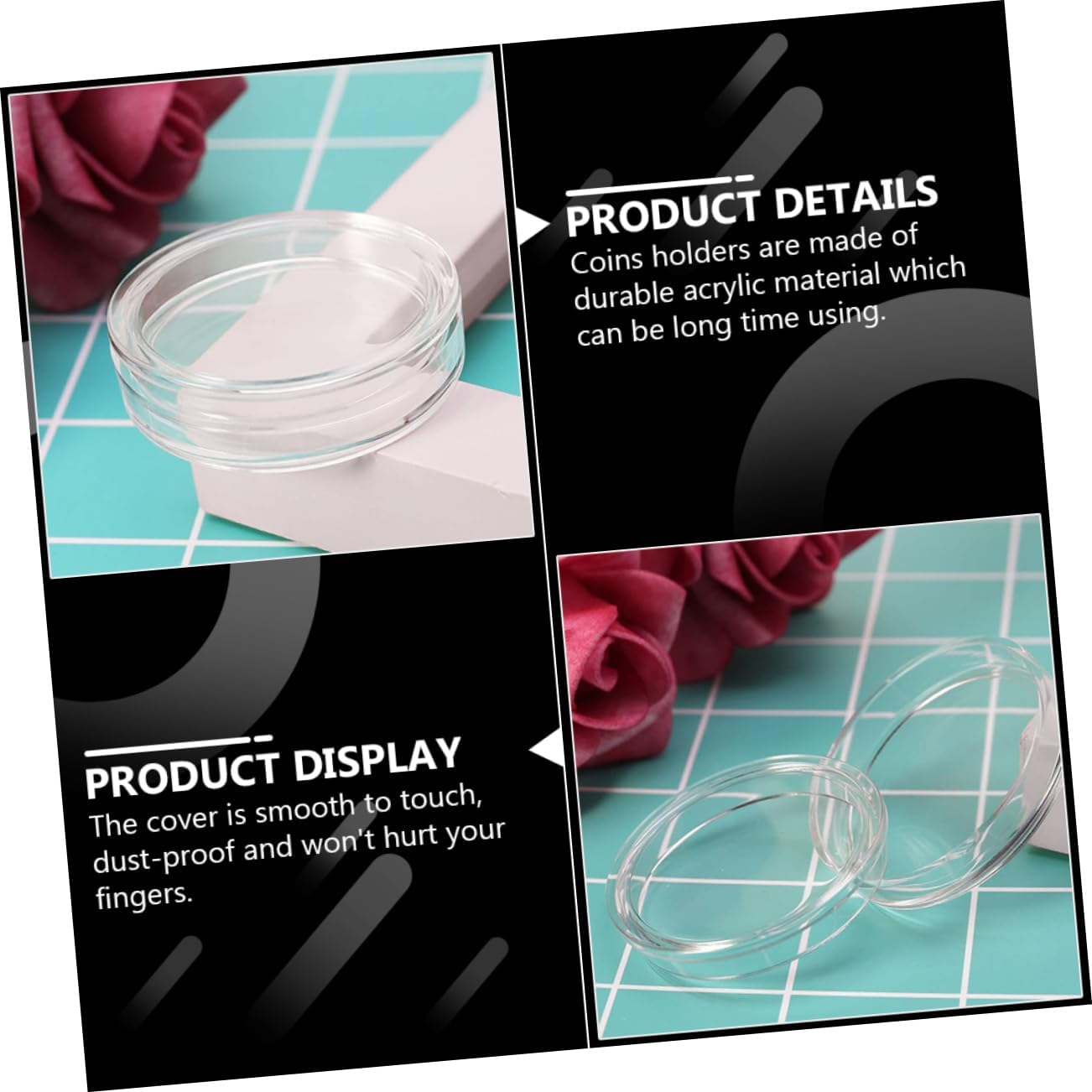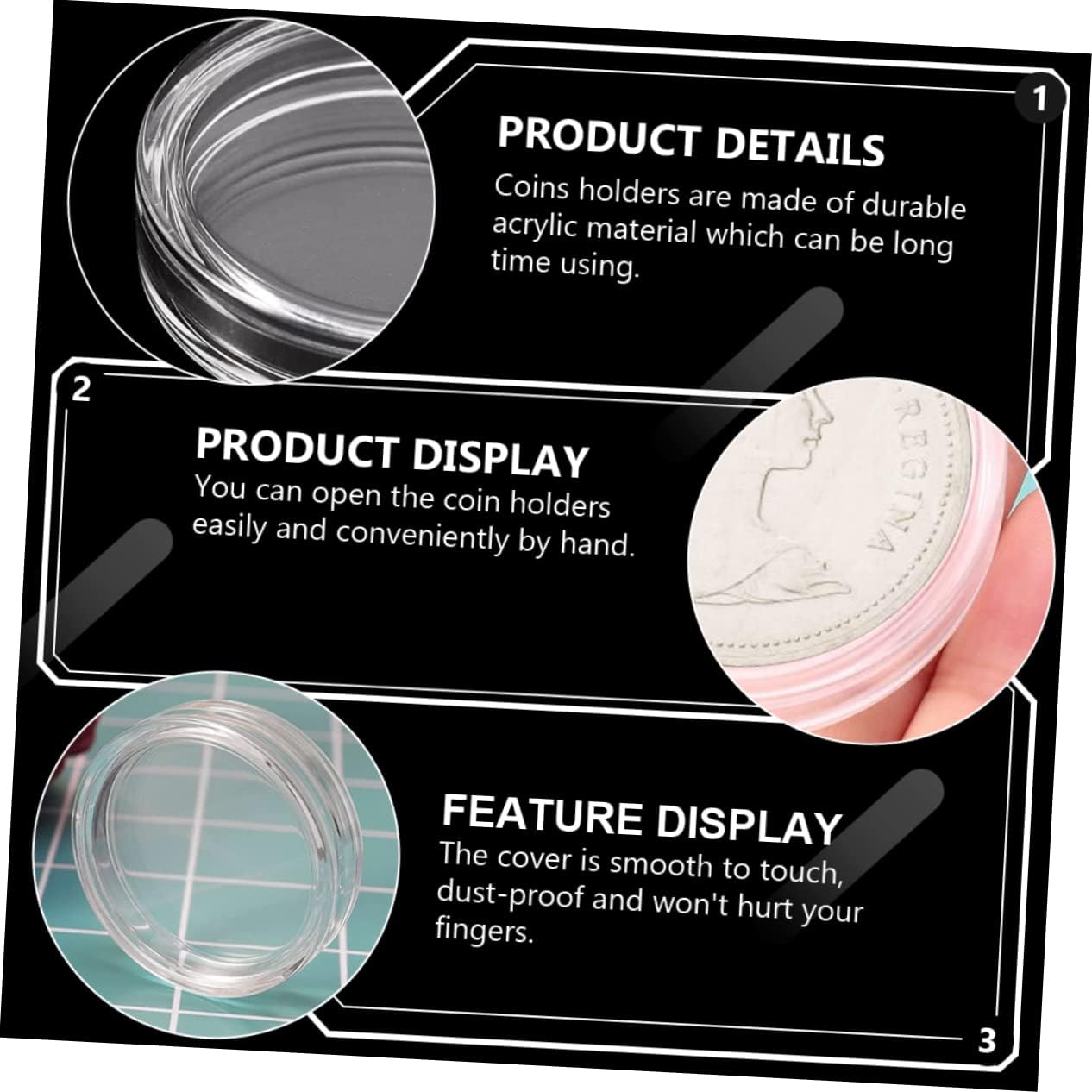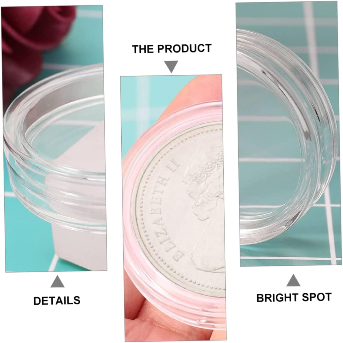 Capsule portamonete: i portamonete sono realizzati in materiale acrilico resistente che può essere utilizzato a lungo. Portamonete: l'organizzatore trasparente per monete comodo per conservare, esporre e cambiare monete, il coperchio e la base si incastrano saldamente e l'antiossidante protegge il contenuto interno in modo sicuro. Contenitore raccolta monete: puoi aprire facilmente e comodamente a mano il contenitore monete. Contenitore trasparente: può essere utilizzato come porta capsule per monete, come regalo promozionale, per mostre o come regalo pratico per i collezionisti di monete per conservare e proteggere le loro monete preferite. Illuminazione del percorso solare per le vacanze: queste custodie portamonete sono realizzate in materiale acrilico altamente trasparente, sicuro, ben sigillato e resistente all'ossidazione.