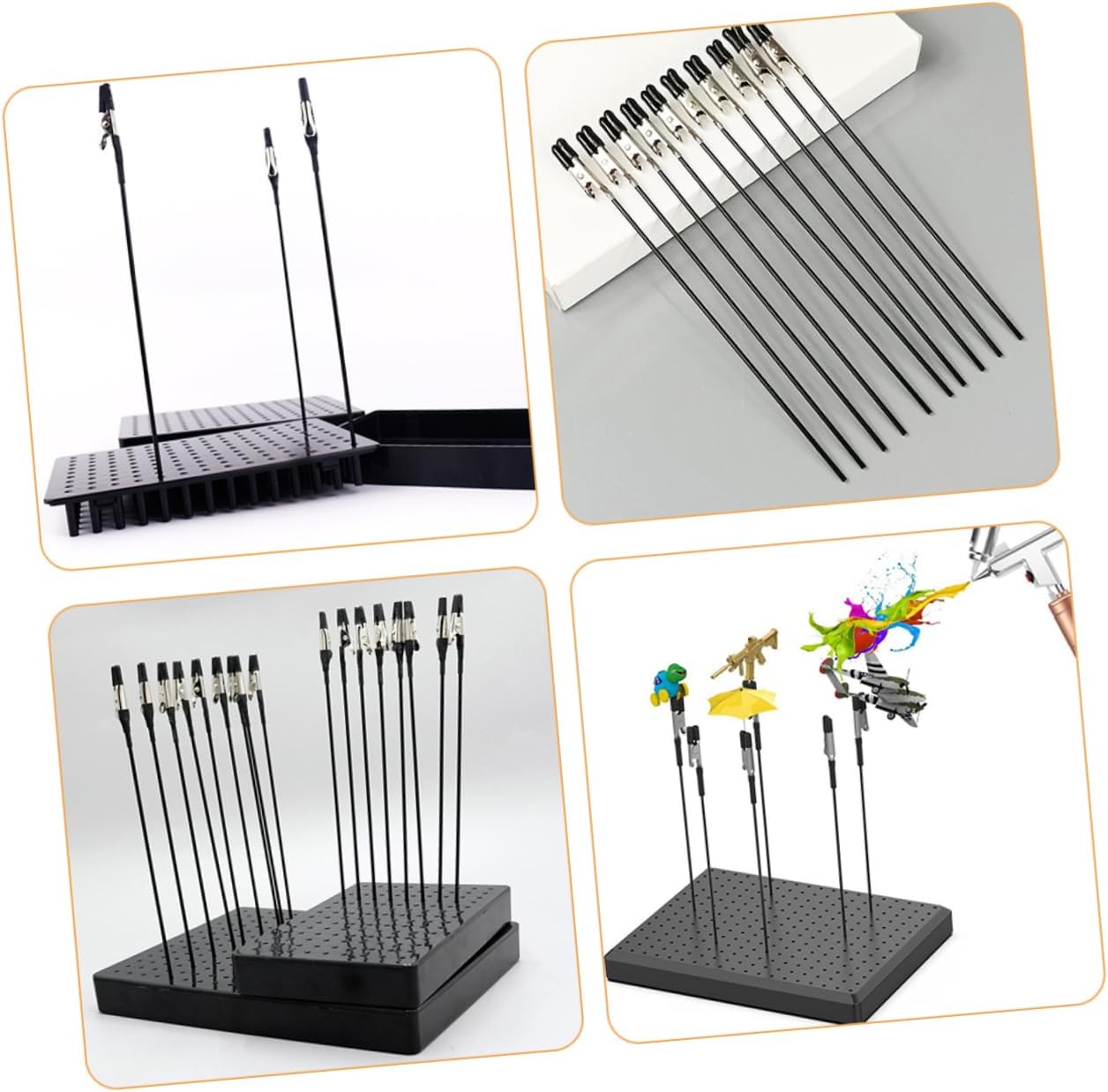 Piccole clip a coccodrillo: la clip per vernice è stata accuratamente assemblata con la clip a coccodrillo e l'asta per vernice facile da afferrare, clip da colorare modello fai da te Clip per colorare il modello: adatta per la verniciatura a spruzzo o l'asciugatura per mantenere i risultati più accurati del tuo lavoro, piccole clip metalliche Morsetto a coccodrillo-- per conservare promemoria, foto, appunti, menu, carta, biglietti da visita, feste, ricevimenti, matrimoni, ecc., porta carte Morsetti a coccodrillo: appassionati di modellismo in miniatura che hanno bisogno di fare un sacco di aerografia di modelli, clip colorate Materiali per creare oggetti artigianali: questi strumenti per modelli sono pratici per coloro che hanno bisogno di spruzzare il proprio kit modello, base con clip da colorare fai da te