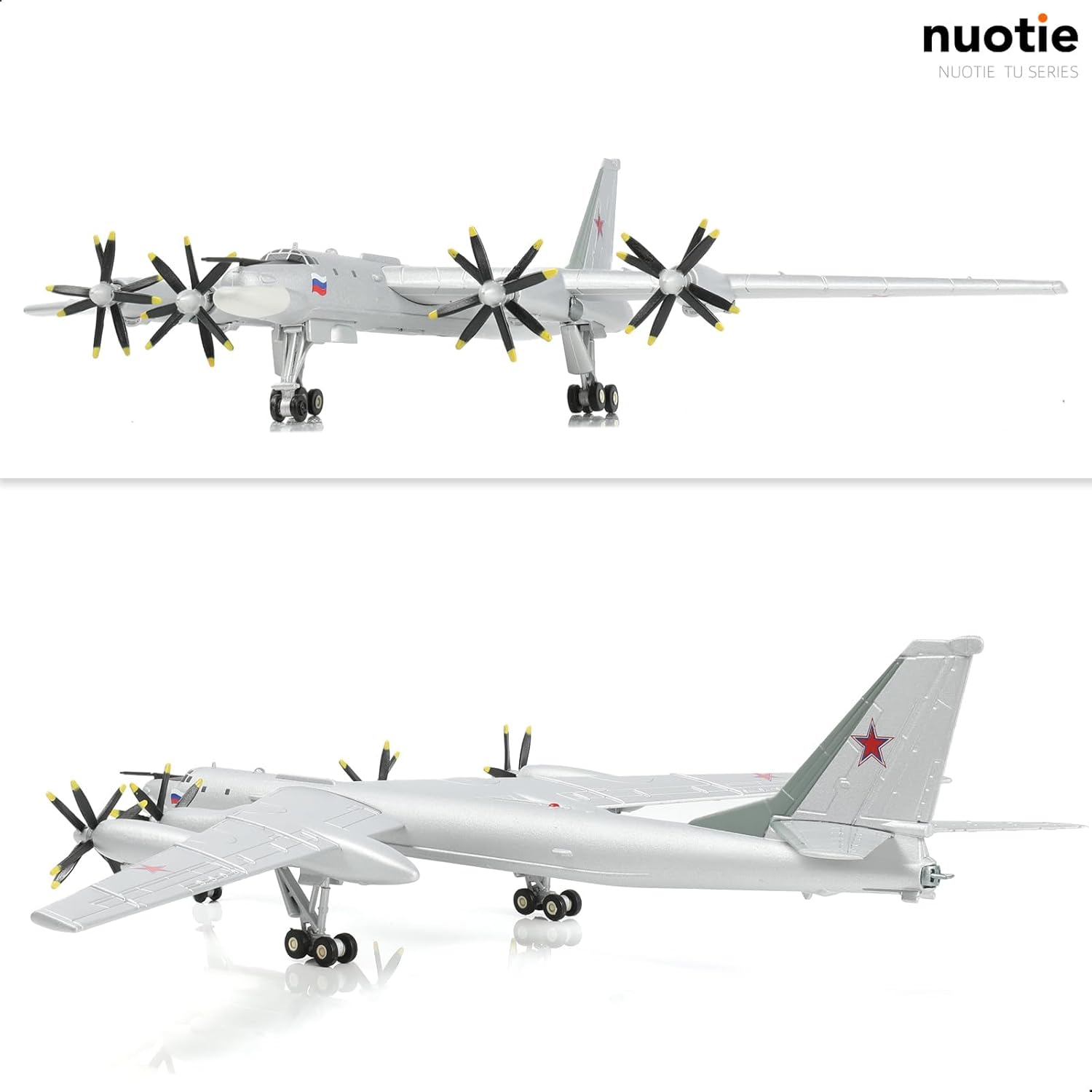 【Tu-95 Bea】Tu-95 Bear è un bombardiere strategico a lungo raggio sovietico/russo. Il bombardiere Tu-95 era un aereo sovietico Tupolev design con un'ala spazzata indietro e quattro motori turboelica, ciascuno guidando due eliche contro-pale di grande diametro. La fusoliera era lunga e snella, con un ampio rapporto di apertura alare e accordi, e ampi angoli spazzati indietro sia sulla coda piatta che su quella drogue. Il primo prototipo volò nel 1954 e i primi modelli di produzione furono consegnati nel 1956. Dimensioni e dettagli: il modello è realizzato con cura secondo il bombardiere reale a 95, la scala del modello 95 è 1/200, la dimensione è 23,9 x 25,4 x 5,3 cm, il peso è di 0,4 kg, il supporto è alto 8,4 cm. Il modello è ricco di dettagli, quattro eliche possono essere ruotate, il modello è dotato anche di una staffa rimovibile, che può simulare due diverse forme del velivolo, rendendo il modello più realistico. Tecnologia dei materiali: il modello da esposizione Tu95 Bomber Aircraft è un modello di aeromobile in metallo fuso realizzato in lega di alta qualità, perfettamente spruzzato con tecnologia di verniciatura industriale per un colore liscio e uniforme che non è soggetto a sbiadimento o screpolature nel tempo per garantire una maggiore durata e longevità. Proporzioni accurate, superficie liscia, ripristinano l'aspetto di un vero jet da combattimento. Un must per gli appassionati militari. Ottima decorazione e regalo: abbiamo splendidamente confezionato questo modello 1/200 TU95 e incluso una scatola fissa in schiuma, questo modello di bomber TU95 viene fornito anche con un supporto per mostrare l'atteggiamento di volo. Riproduzione realistica di questo aeroplano. Che tu sia un appassionato militare o un appassionato di aviazione, questo kit di modelli di aeroplano da noi è perfetto per te. Modello da collezione di alta qualità, adatto per collezione e regalo. 【Acquisto senza preoccupazioni】Aderiamo a rigorosi requisiti di produzione per controllare la qualità dei nostri aeroplani. Questo modello viene fornito con una scatola resistente per proteggere il modello da danni durante il trasporto. Siamo orgogliosi di offrire una garanzia di un anno su questo kit modello Bomber TU95. Se riscontri problemi o hai domande sul tuo acquisto, il nostro team di assistenza clienti dedicato risolverà eventuali problemi entro 24 ore.