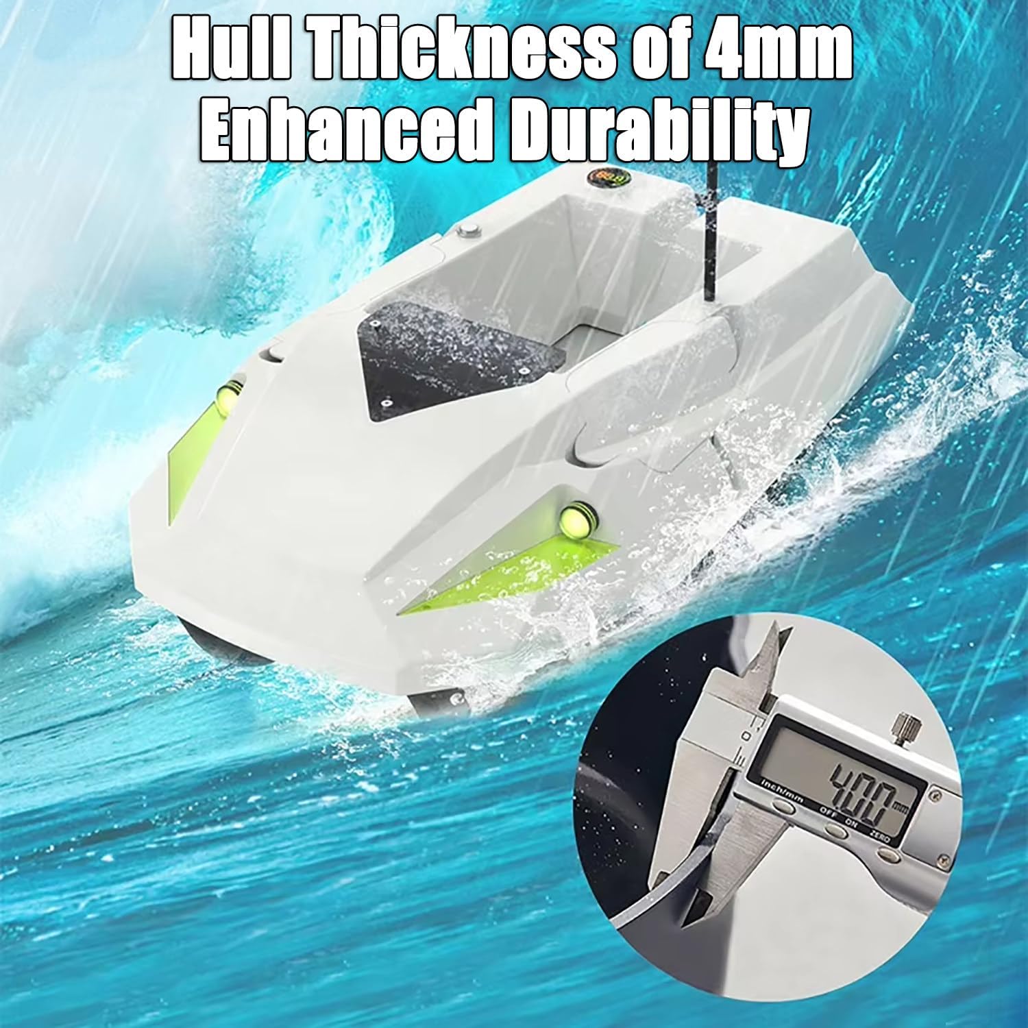 ✅✅【Barca da pesca con esche GPS avanzata】 Migliora le tue abilità di pesca con questa barca da pesca con esche GPS intelligente dotata di ritorno automatico, luci notturne, ritorno per batteria scarica, velocità regolabili e controllo dell'elettrovalvola con un solo pulsante. Perfetta sia per i principianti che per i pescatori esperti in cerca di uno strumento di pesca intelligente. ✅✅【Rilascio esche di precisione】 Questa barca da pesca con esche RC è dotata di un ampio silo indipendente in grado di trasportare fino a 2 kg (4,4 libbre) di esche. Il dispositivo di alimentazione verso il basso garantisce un posizionamento silenzioso e preciso dell'esca, prevenendo al contempo l'impigliamento della lenza, massimizzando l'efficienza della cattura. ✅✅【Controllo GPS a lunga distanza】 Dotata di posizionamento GPS a 100 punti e telecomando a 500 m, questa barca da pesca intelligente consente il pieno controllo con tre marce regolabili: modalità nido a risparmio energetico, distribuzione efficiente dell'esca e modalità traina/trascinamento potente con una forza di trazione di 1,5 kg. ✅✅【Pronto per la pesca notturna】 Le luci di navigazione a LED guidano la tua barca RC in condizioni di scarsa illuminazione, attirando al contempo i pesci. Il display LCD impermeabile mostra lo stato della batteria, la distanza, la posizione, la luce notturna e le funzioni di ritorno con un solo tasto, rendendolo perfetto per la pesca notturna in mare aperto. ✅✅【Batteria a lunga durata】 Il doppio alimentatore da 15600 mAh offre 2-4 ore di pesca ininterrotta, supportando onde di livello 5-6 e condizioni di tempesta. Dedica più tempo alla pesca e meno tempo alla ricarica. Forniamo supporto tecnico a lungo termine.