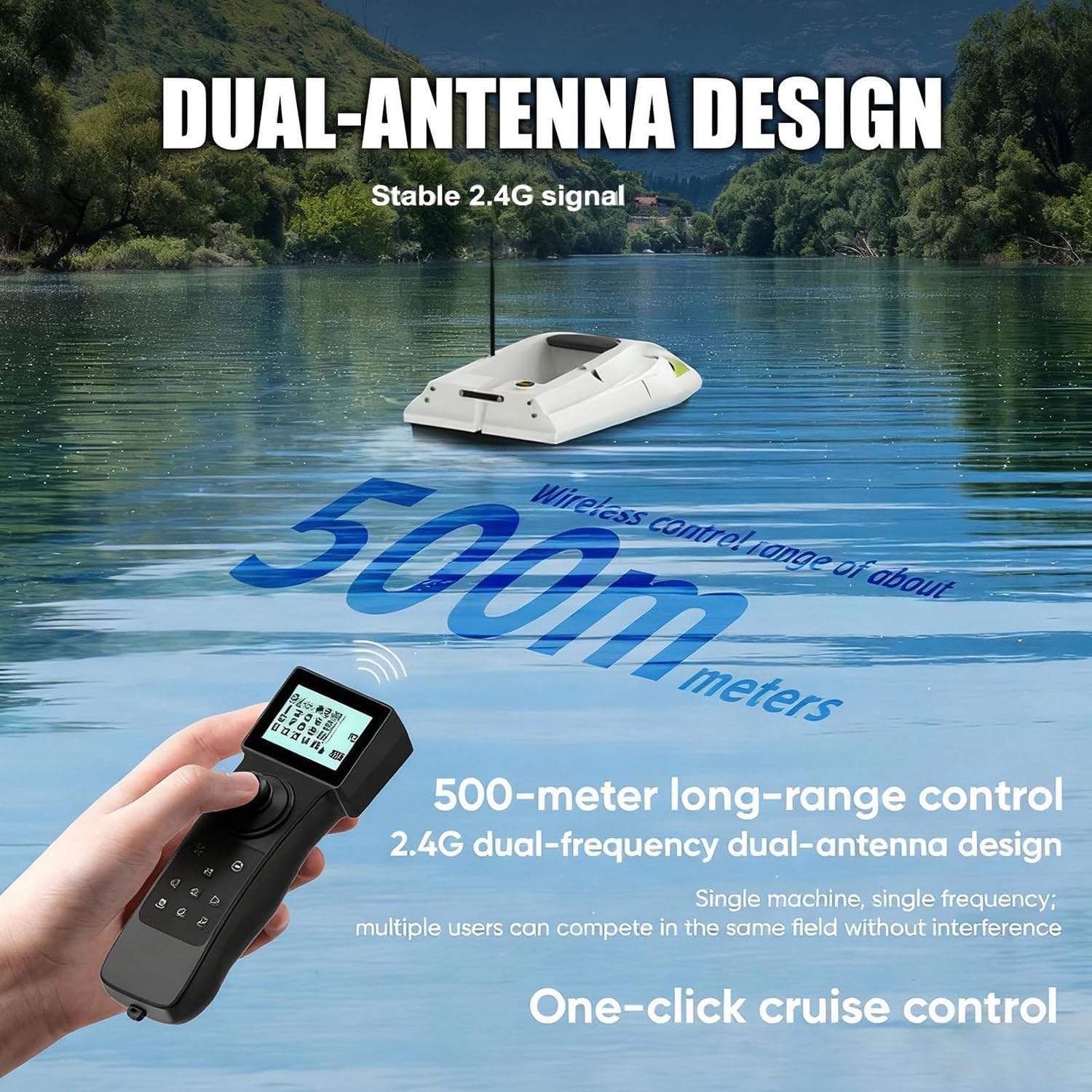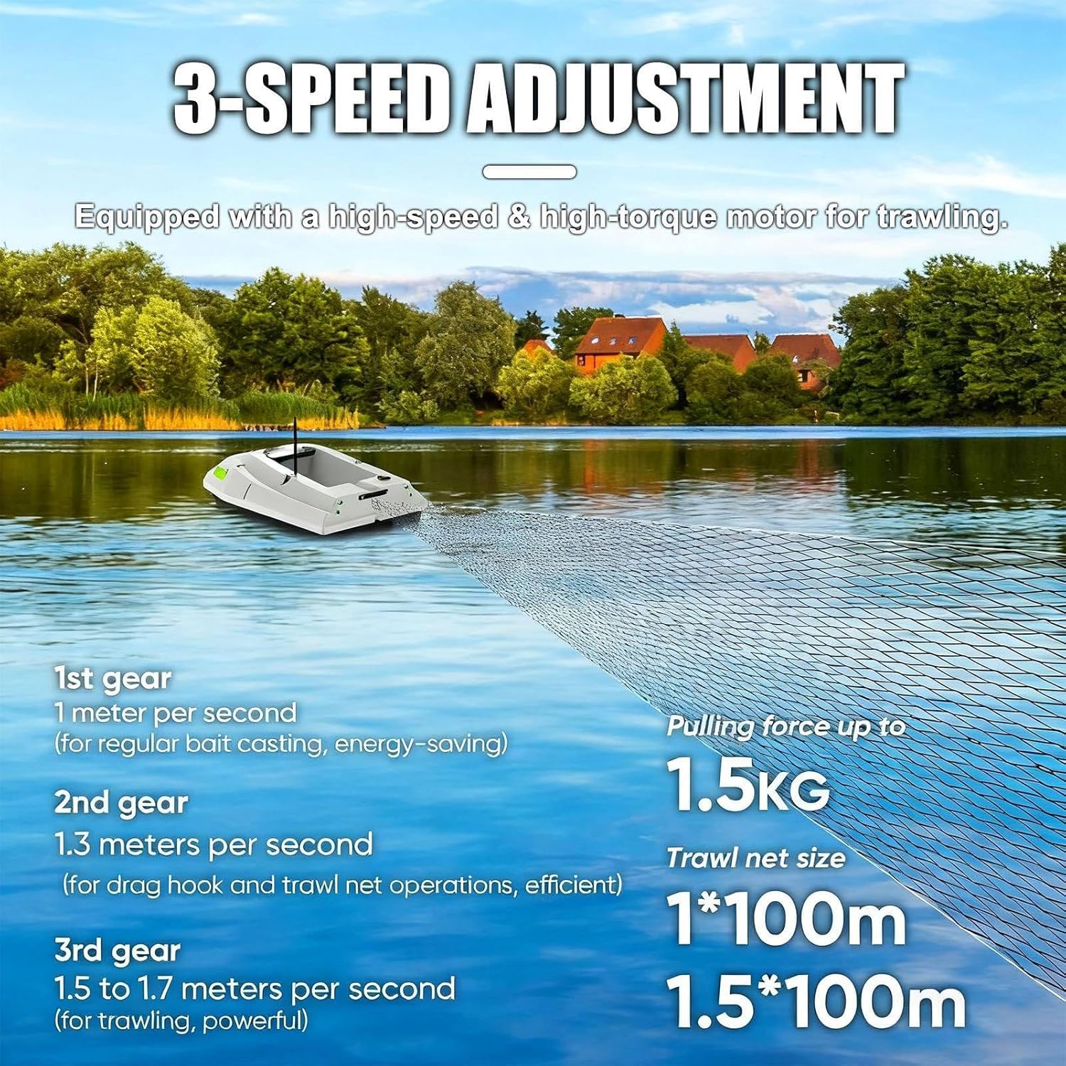 ✅✅【Barca da pesca con esche GPS avanzata】 Migliora le tue abilità di pesca con questa barca da pesca con esche GPS intelligente dotata di ritorno automatico, luci notturne, ritorno per batteria scarica, velocità regolabili e controllo dell'elettrovalvola con un solo pulsante. Perfetta sia per i principianti che per i pescatori esperti in cerca di uno strumento di pesca intelligente. ✅✅【Rilascio esche di precisione】 Questa barca da pesca con esche RC è dotata di un ampio silo indipendente in grado di trasportare fino a 2 kg (4,4 libbre) di esche. Il dispositivo di alimentazione verso il basso garantisce un posizionamento silenzioso e preciso dell'esca, prevenendo al contempo l'impigliamento della lenza, massimizzando l'efficienza della cattura. ✅✅【Controllo GPS a lunga distanza】 Dotata di posizionamento GPS a 100 punti e telecomando a 500 m, questa barca da pesca intelligente consente il pieno controllo con tre marce regolabili: modalità nido a risparmio energetico, distribuzione efficiente dell'esca e modalità traina/trascinamento potente con una forza di trazione di 1,5 kg. ✅✅【Pronto per la pesca notturna】 Le luci di navigazione a LED guidano la tua barca RC in condizioni di scarsa illuminazione, attirando al contempo i pesci. Il display LCD impermeabile mostra lo stato della batteria, la distanza, la posizione, la luce notturna e le funzioni di ritorno con un solo tasto, rendendolo perfetto per la pesca notturna in mare aperto. ✅✅【Batteria a lunga durata】 Il doppio alimentatore da 15600 mAh offre 2-4 ore di pesca ininterrotta, supportando onde di livello 5-6 e condizioni di tempesta. Dedica più tempo alla pesca e meno tempo alla ricarica. Forniamo supporto tecnico a lungo termine.