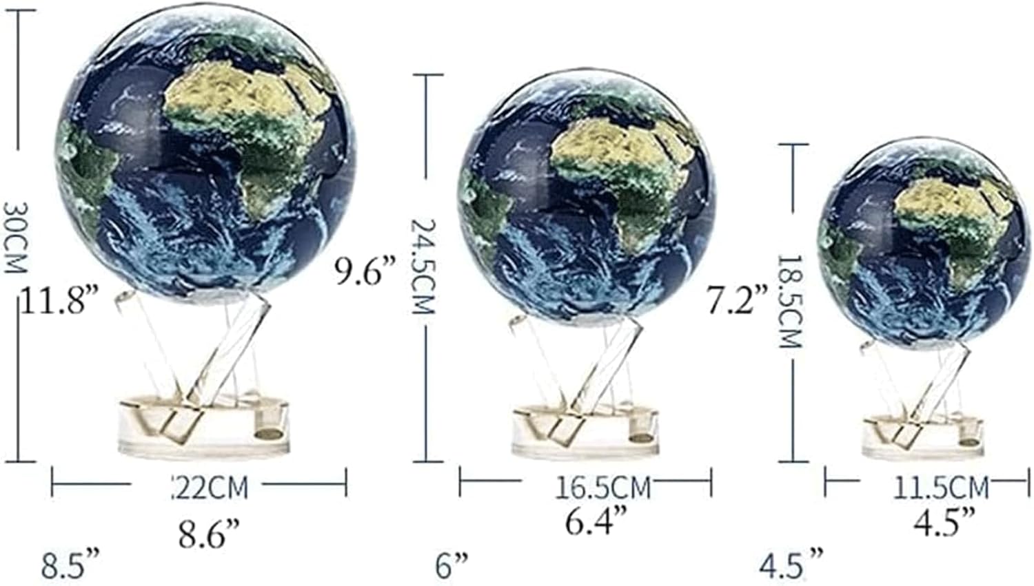 La stampa ad alta definizione riproduce il mappamondo educativo con chiari dettagli geografici della Terra. Informazioni sulla carta facili da leggere. Base durevole: la base è realizzata in materiale durevole e di alta qualità, molto resistente e resistente alle cadute e all'usura! 3 dimensioni: 4,5 pollici, 6,4 pollici, 8,6 pollici di diametro, 3 dimensioni, 4,5 pollici stanno nel palmo della tua mano; leggermente più grande di una palla da softball. Una volta assemblata, la base è alta circa 7 pollici e pesa 4 libbre. Rotazione alimentata dalla luce: alimentato dalla tecnologia delle celle solari, ruota silenziosamente da solo in qualsiasi luce ambientale interna o luce solare indiretta, senza la necessità di batterie o cavi. Il globo didattico aiuta i tuoi bambini a esplorare i confini politici del mondo, i continenti oceanici e le città. Questo rende divertente l'apprendimento della geografia!