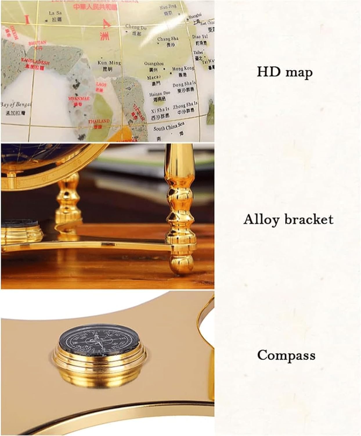 La stampa ad alta definizione riproduce il mappamondo educativo con chiari dettagli geografici della Terra. Informazioni sulla carta facili da leggere. Materiale di alta qualità: la lega addensata è stabile, non sbiadisce ed è liscia e delicata. La staffa è contrassegnata con una scala di latitudine, ha una pregevole fattura, un telaio a sfera in alluminio e la qualità è più nobile. Bussola di precisione: la bussola del globo viene setacciata attraverso 5 processi e ogni processo viene controllato strato per strato, il che è più accurato dei normali globi. Intagliati e fusi a mano: i globi Gem Craft sono realizzati con pietre semipreziose naturali e lucidati a mano per rendere i prodotti cristallini. Il globo didattico aiuta i tuoi bambini a esplorare i confini politici del mondo, i continenti oceanici e le città. Questo rende divertente l'apprendimento della geografia!