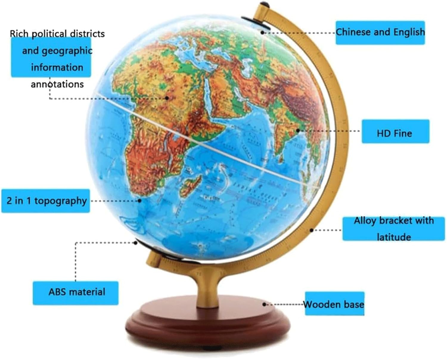 La stampa ad alta definizione riproduce il mappamondo educativo con chiari dettagli geografici della Terra. Informazioni sulla carta facili da leggere. Topografia cinese e inglese, alta definizione, informazioni ricche, stampa chiara e stratificata, nomi di luoghi cinesi e inglesi, informazioni ricche. Stampa a nove colori. Doppio schermo. Perfetta tecnologia equatoriale, armonia e unità degli emisferi settentrionale e meridionale, nuova tecnologia di stampa a nove colori, colori intensi, immagini ad alta risoluzione a doppio strato di terreni e aree politiche uniche (con le luci accese). Questo globo luminoso con supporto non solo può fornirti una mappa del mondo completa ma anche migliorare le tue abilità geografiche. Puoi anche accendere la luce per trasformarla in una bellissima palla luminosa che può essere utilizzata come lampada da scrivania o per studio notturno. Il globo didattico aiuta i tuoi bambini a esplorare i confini politici del mondo, i continenti oceanici e le città. Questo rende divertente l'apprendimento della geografia!