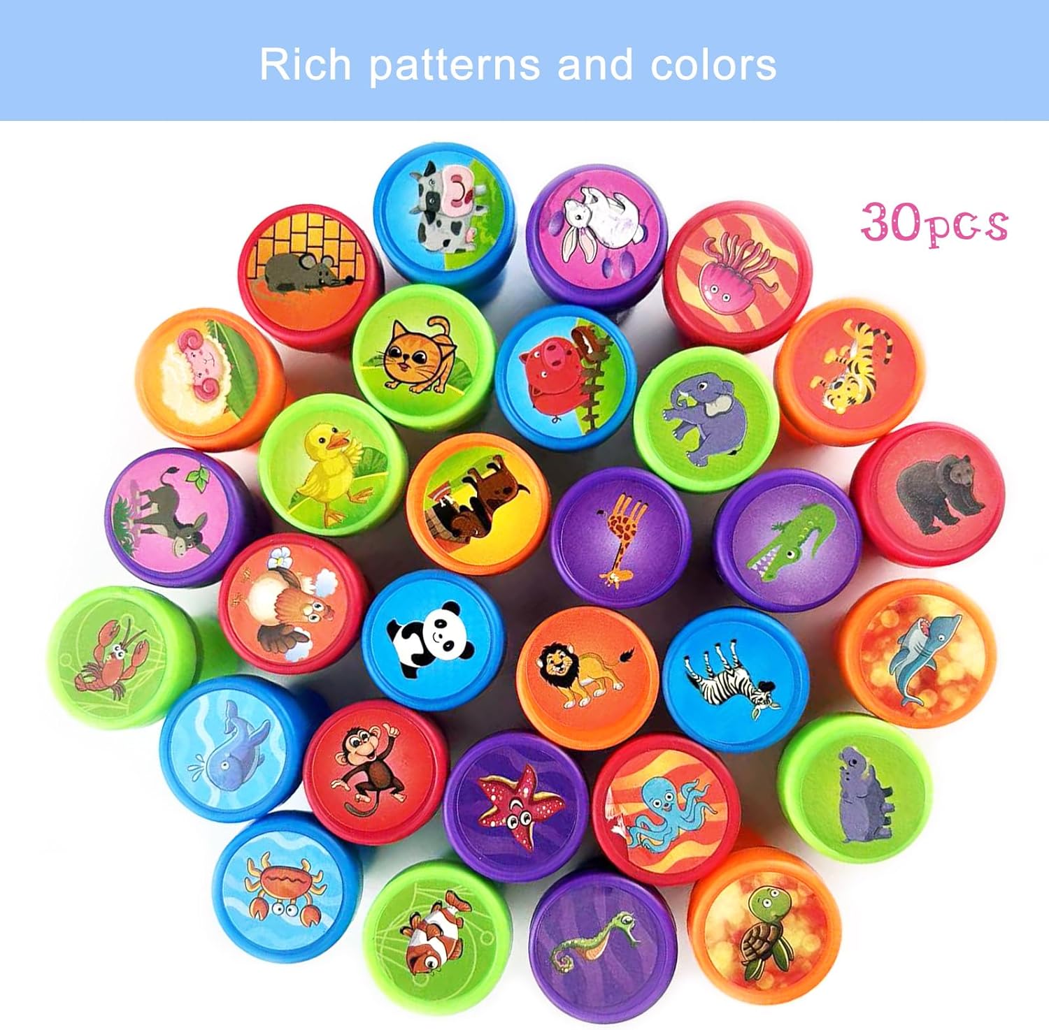 VARIE SCELTE: Il set di timbri autoinchiostranti è composto da 30 animali diversi, tra cui 10 creature marine, 10 animali selvatici e 10 animali da fattoria, oltre a 5 colori rosso, blu, verde, viola e arancione. I modelli sono chiari e ricchi, il che può promuovere lo sviluppo dell'immaginazione dei bambini. Materiale lenitivo: i timbri per vernice sono realizzati in plastica ecologica e inchiostro affidabile, non tossico e naturale, facile da pulire e non diffonde cattivi odori, così tu e la tua famiglia potete usarli in tutta tranquillità. I rispettivi motivi degli animali sono marcati sulla copertina, rendendo facile la distinzione tra i diversi francobolli. Per un effetto migliore, usali su carta bianca o cartoncino. Design autoinchiostrante: il timbro ha inchiostro colorato incorporato, non è necessario olio da stampa né inchiostro aggiuntivo, basta un tocco e viene visualizzato il motivo desiderato. Ricordarsi di chiudere il coperchio quando non in uso. I tamponi di inchiostro devono essere sigillati e conservati in un luogo fresco per prolungarne la durata. AMPIE APPLICAZIONI: Questi timbri colorati sono disponibili in coperchi singoli per evitare che si secchino. Sono perfetti per bomboniere, premi in classe, premi di carnevale, biglietti di auguri, cartoline e altro ancora. Quantità sufficiente e stili diversi possono soddisfare le esigenze di decorazione della tua festa. Leggero e portatile: ogni timbro di vernice misura circa 2,5 (diametro) x 3,5 cm (altezza), sigillato in modo indipendente, molto adatto per il trasporto o l'imballaggio in una piccola borsa.