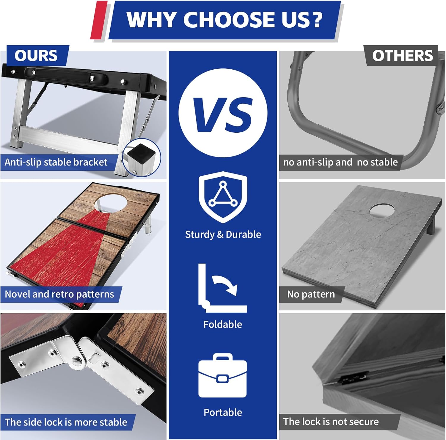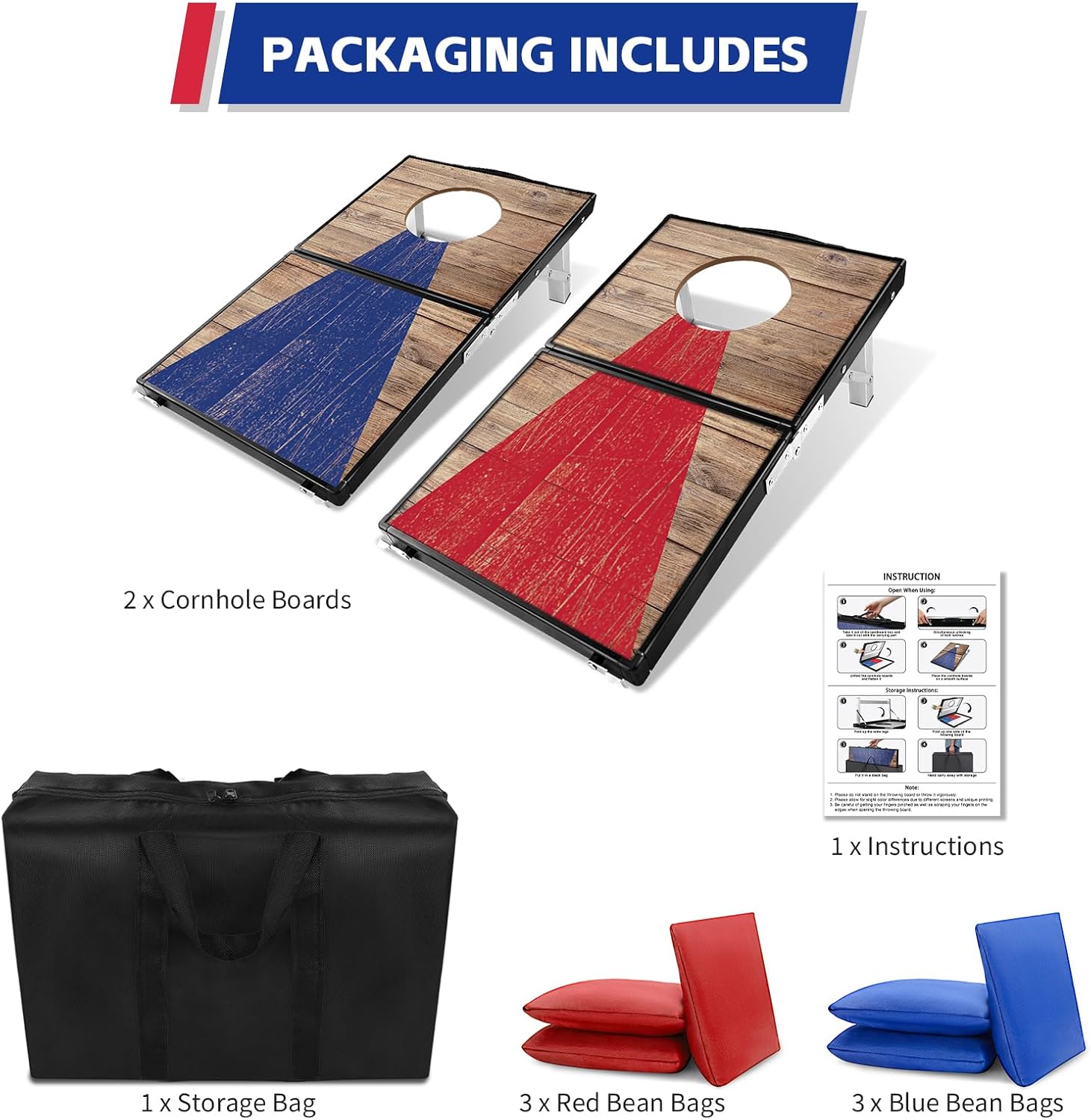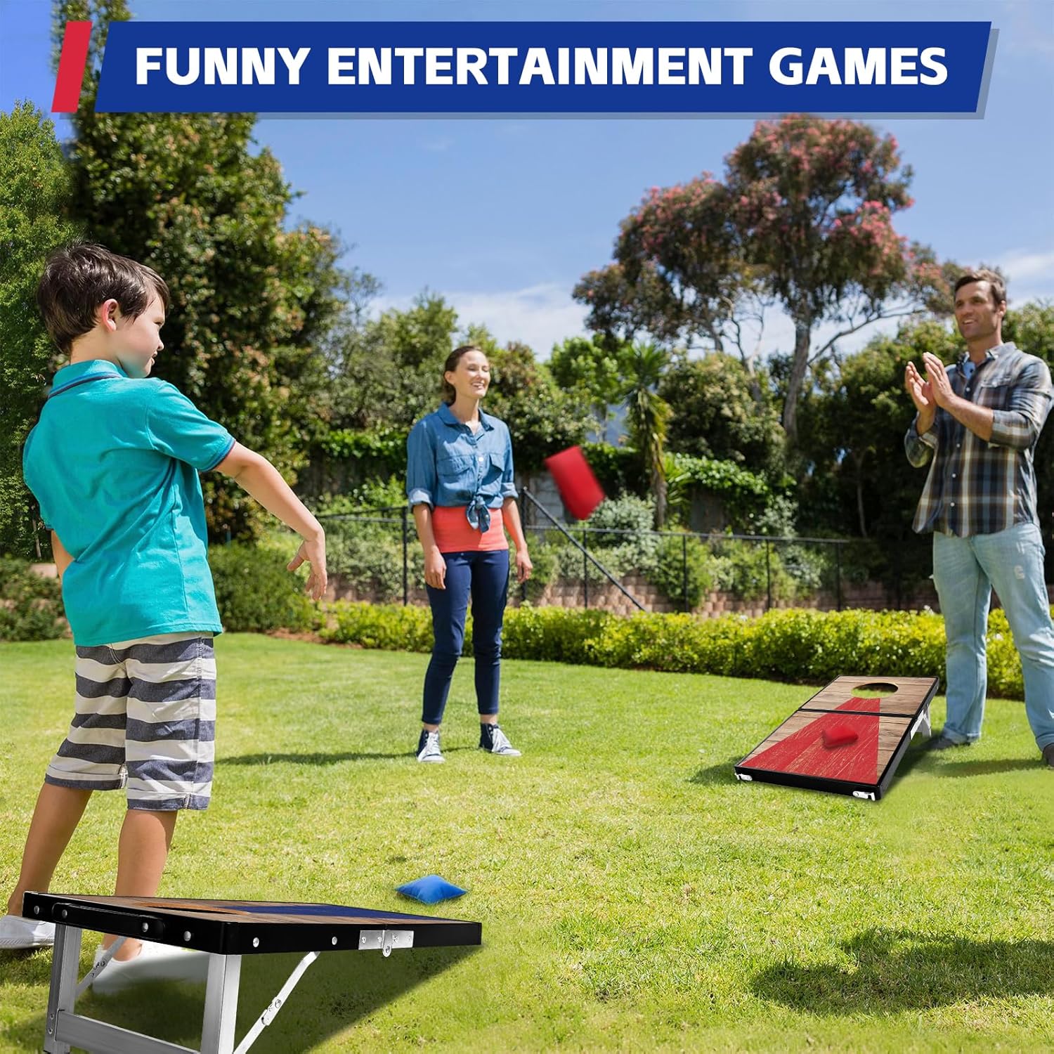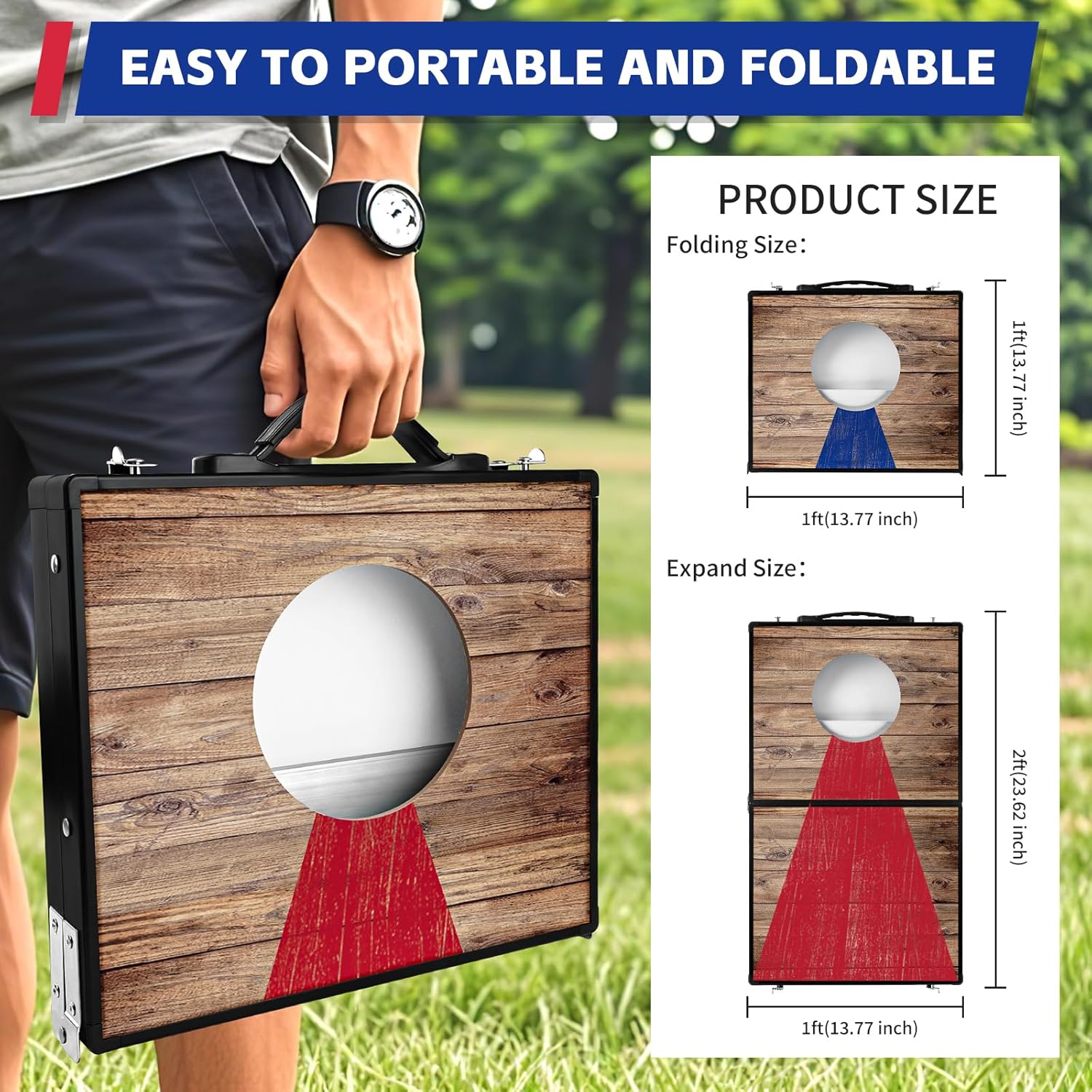 Gioco di lancio di alta qualità: Questo set di gioco corn hole, dopo l'assemblaggio è 60x35cm (Corn hole Φ15 cm). Il telaio è realizzato in materiale di legno resistente. Il motivo di ispirazione vintage ricorda il colore erbaceo del legno originale. È stampato con un motivo simile a uno scudo con un simbolo di tutela e responsabilità. Facile da installare e portatile: Set di gioco cornhole pieghevole con chiusura di sicurezza e cinghia di trasporto, la lunghezza ripiegata misura 30 cm, con la nostra borsa di stoccaggio in dotazione è possibile riporlo e giocare nel parco, cortile, campeggio, spiaggia, cortile, viaggi in campeggio e in qualsiasi altro luogo. Set per il gioco del Cornhole per divertirsi: il set comprende due tavole da lancio di alta qualità, progettate con dimensioni standard e lavorazione artigianale per garantire un processo di lancio fluido e senza intoppi. Inoltre, vengono forniti 3 sacchi di fagioli rossi e 3 blu. È inclusa anche una pratica borsa per il trasporto, che consente di portare con sé l'intero set ovunque si vada. Divertimento per tutte le età: Giochi all'aperto per bambini, un gioco che può divertire tutta la famiglia, è semplice e facile. Basta prendere il sacco di fagioli, mirare al buco e lanciarlo, questa è la regola. Può essere più divertente con le partite multiplayer. Dopo la vendita: Se avete domande sull'articolo dopo averlo ricevuto, vi preghiamo di contattarci per assicurarvi di ottenere un'esperienza di acquisto soddisfacente.