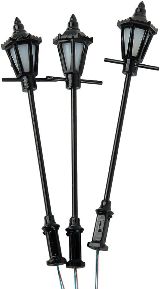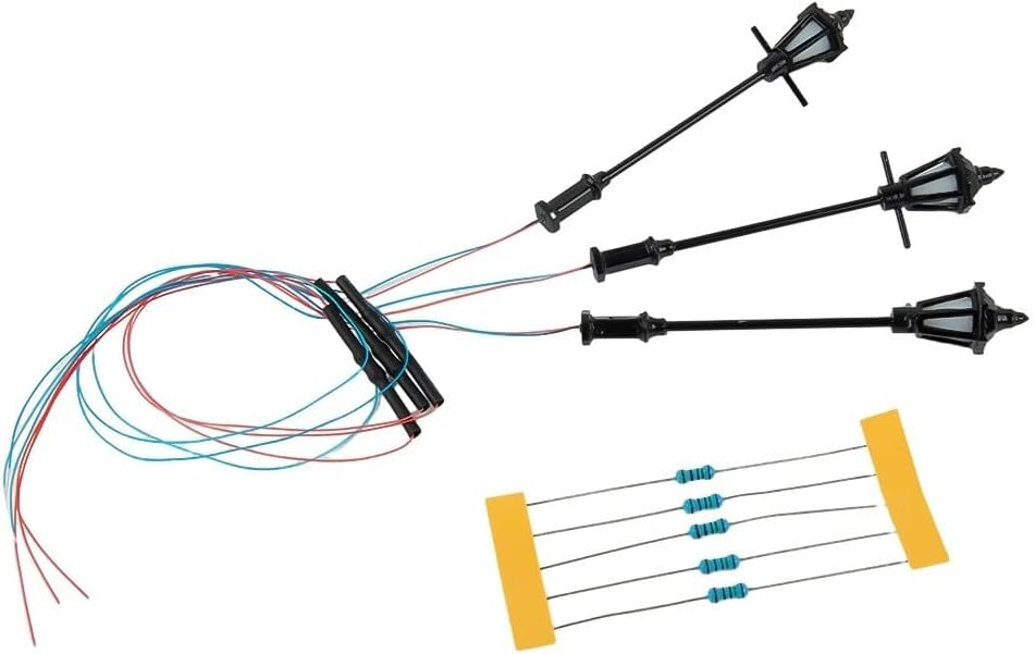 Kit di lampioni a LED: questo kit include 3 lampioni da 7 cm che si illuminano, perfetti per aggiungere realismo al layout dell'edificio. Corrente di funzionamento corretta: per prestazioni ottimali, è importante applicare la corrente di funzionamento corretta di 20 mA a ciascun LED. Struttura in metallo: questi lampioni sono realizzati con materiali metallici, qualità di lunga durata e resistenza all'usura. Facile installazione: il kit include 5 resistori serie per tensione da 12 a 16 V. Se si dispone di un trasformatore da 12-16 V, inserire il resistore incluso nella linea per un'installazione senza problemi.