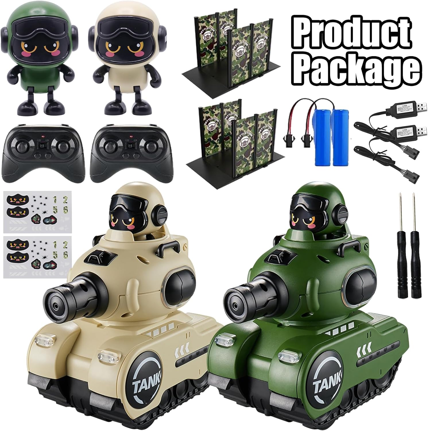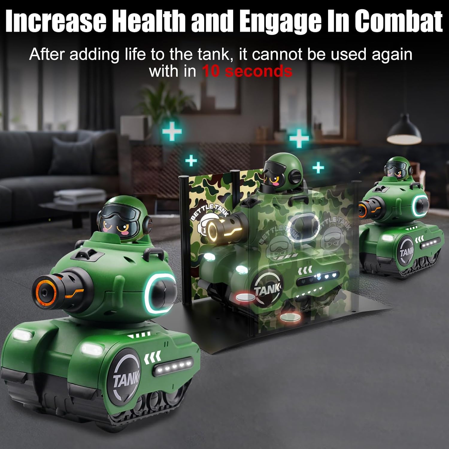 GIOCO DI BATTAGLIA PER DUE GIOCATORI: Ogni carro da battaglia RC è dotato di un controller a 2,4 GHz, utilizzando tecnologia di rilevamento a infrarossi (senza fascio visibile) per sparare in sicurezza e eseguire facilmente manovre avanzate come la deriva e la rotazione a 360 °, rendendolo perfetto per due duelli per paraurti con amici o famiglia. REGOLE TATTICHE DIVERTENTI: Quando il serbatoio viene attaccato dall'arma principale, verranno dedotti 2 punti di salute (5 secondi di tempo di recupero) e 1 punto di salute (1 secondo di tempo di recupero) dall'arma secondaria colpita. Dopo aver colpito, 1 punto di salute (10 secondi di tempo di raffreddamento) può essere aumentato attraverso la tavola di induzione. Quando il punto di salute è 0, il pilota viene espulso e deve tornare al cockpit per continuare la battaglia! LUNGO TEMPO DI GIOCO E DIVERTIMENTO: Ogni serbatoio è alimentato da una batteria al litio ricaricabile da 3,7V 500mAh, e l'interfaccia USB consente di godersi fino a 50 minuti di divertimento in soli 70 minuti di tempo di ricarica. Il telecomando richiede 2 batterie AA (non incluse), e le luci LED fresche consentono al serbatoio di acrobazie di andare e venire liberamente di notte. ALTA QUALITÀ E MATERIALI SICURI: Questo serbatoio RC è realizzato in plastica ABS di alta qualità, che è non tossico e innocuo. Il corpo è stampato a iniezione con modelli chiari. I pneumatici in gomma sono resistenti, elastici e resistenti, con prestazioni di ammortizzazione in grado di resistere a vari urti e collisioni. I materiali di alta qualità migliorano notevolmente la durata del prodotto. BATTLE TANK GIFT SET: Questi serbatoi a infrarossi hanno una distanza di telecomando di 30 metri, tra cui 2 serbatoi, 2 telecomandi, 2 bambole, 2 cavi di ricarica, 1 cacciavite, 1 scheda guida utente, 2 tavoli a induzione, 2 batterie ricaricabili e 1 manuale d'istruzioni. Sono regali sicuri e divertenti per i compleanni dei bambini, il Natale e altre celebrazioni.