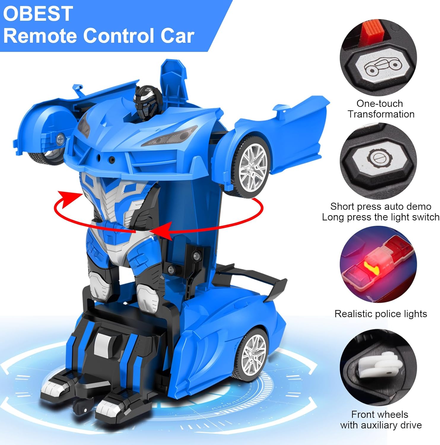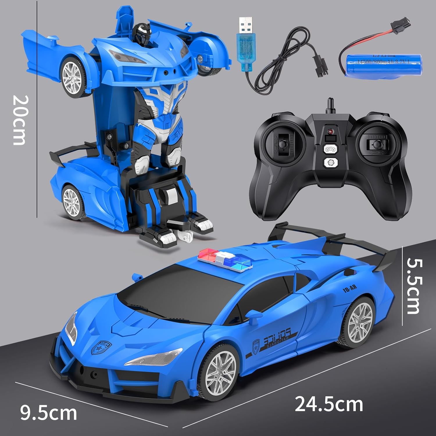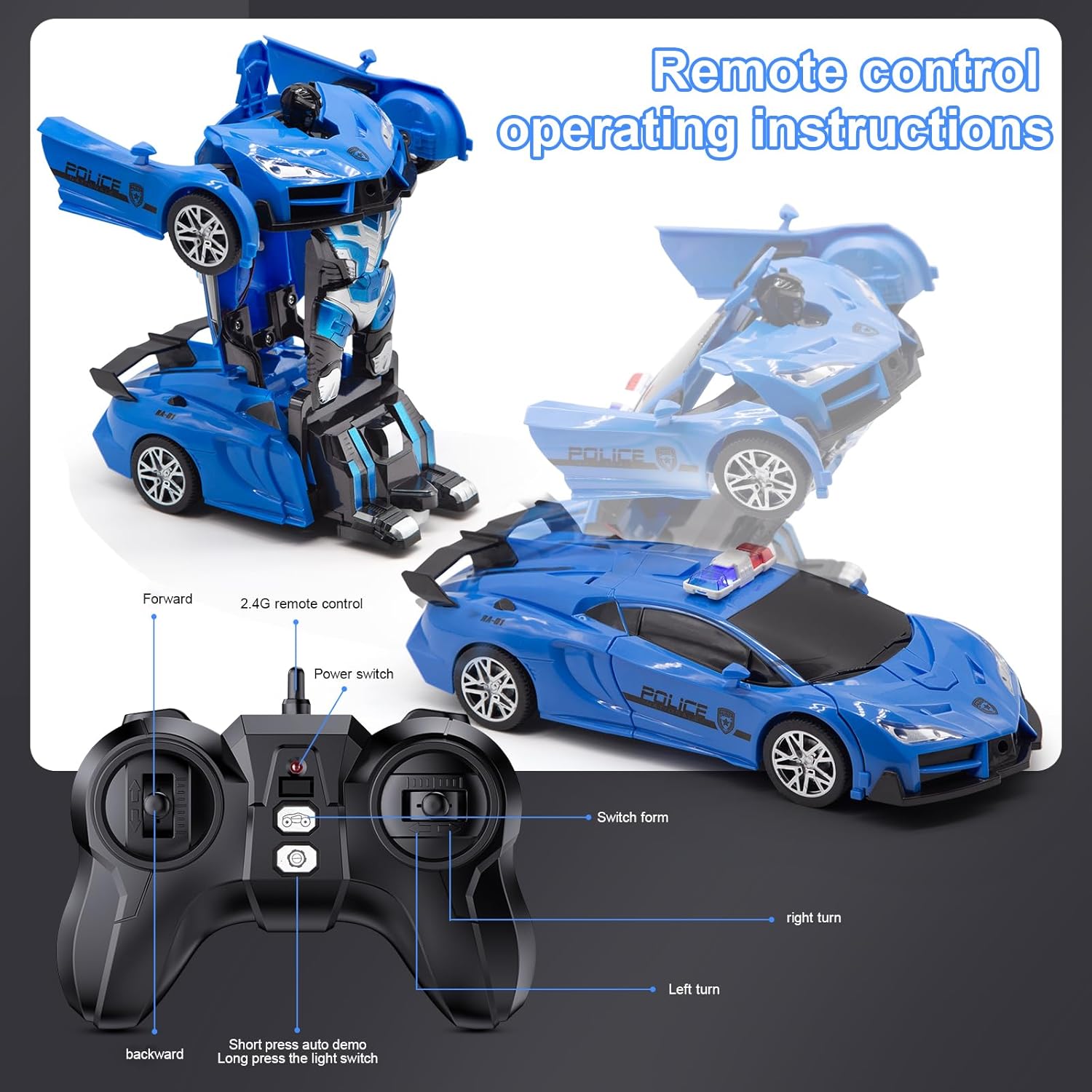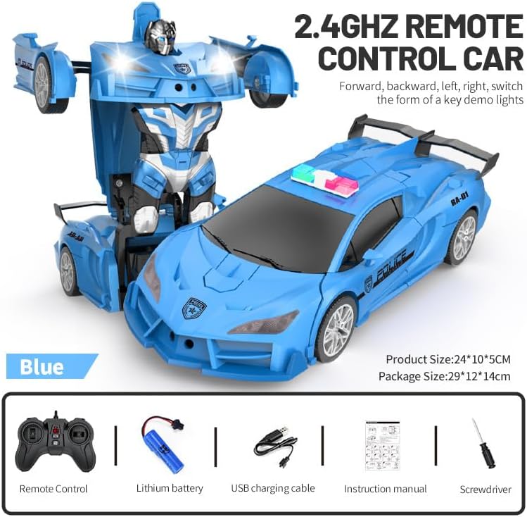 【Robot per auto 2 in 1】Robot per auto trasformabile con telecomando, passa da due moduli con un clic. La struttura esterna ed interna dell'auto della polizia è stata restaurata. Premi il pulsante sul telecomando per trasformarti in un robot mecha con un clic. L'operazione di trasformazione del telecomando è semplice. 【Radiocomando da 2,4 GHz】Questa macchina telecomandata è dotata di un telecomando ad alta frequenza da 2,4 GHz con segnale stabile e funzionamento regolare. La distanza controllabile è lunga e l'accelerazione in avanti, la retromarcia, la rotazione e la svolta in curva e il cambio di deformazione sono fluidi e senza ritardi. 【Ricarica e portatile】Questo robot per auto telecomandato è dotato di batteria integrata e cavo di ricarica USB. È facile da caricare e trasportare quando si esce. È adatto ad una vasta gamma di ambienti e può adattarsi a una varietà di terreni complessi. 【Materiale sicuro e resistente】 Questo giocattolo per auto telecomandato è realizzato in plastica di alta qualità, che aumenta lo spessore della scocca dell'auto e ne aumenta la robustezza. Il guscio esterno è robusto, più resistente agli urti, all'usura e alle cadute e può essere utilizzato in tutta sicurezza dai bambini. 【Adatto per regali giocattolo per bambini】 Questo giocattolo per auto telecomandato per bambini è adatto a ragazzi e ragazze dai 5 ai 14 anni. Il robot dell'auto ha una forma squisita e un gameplay divertente. Un regalo perfetto per Natale, Halloween, riunioni di famiglia, riunioni di amici, compleanni.