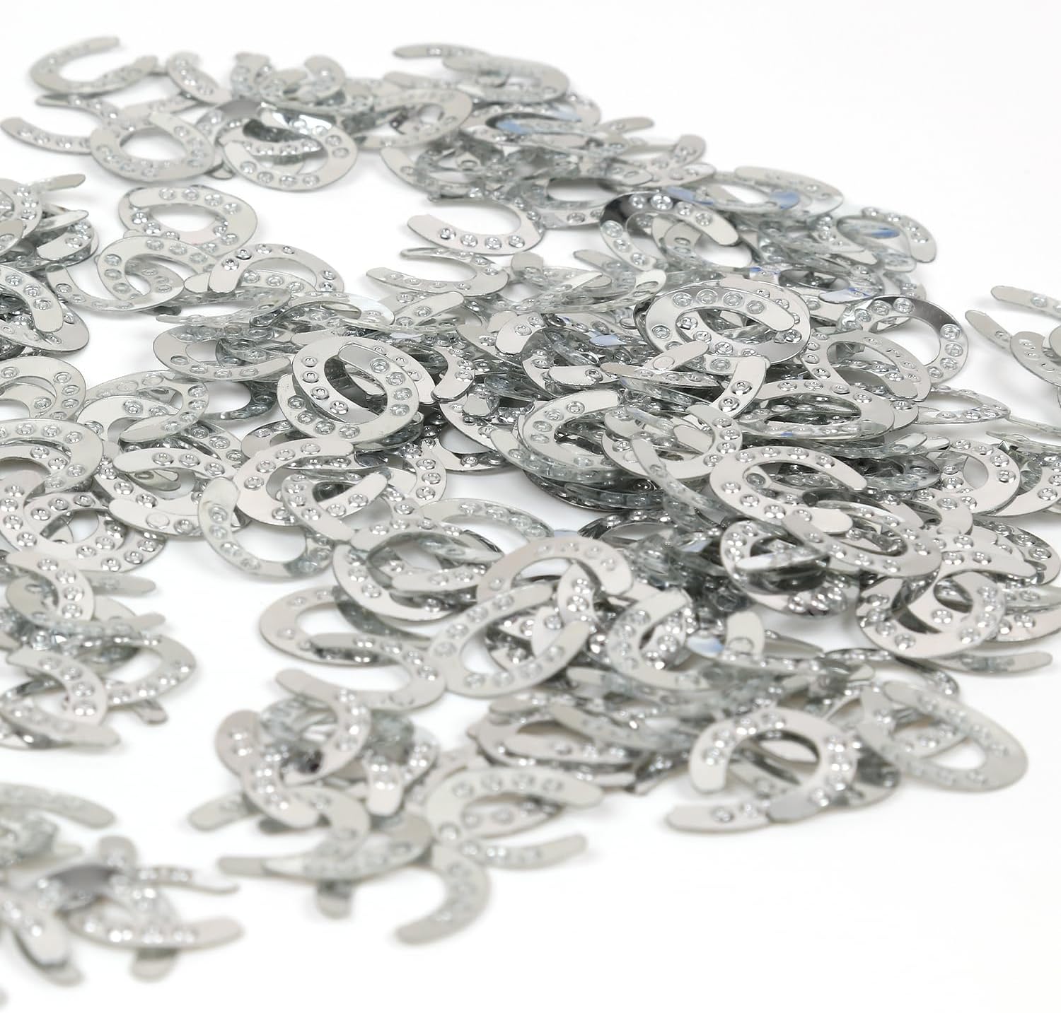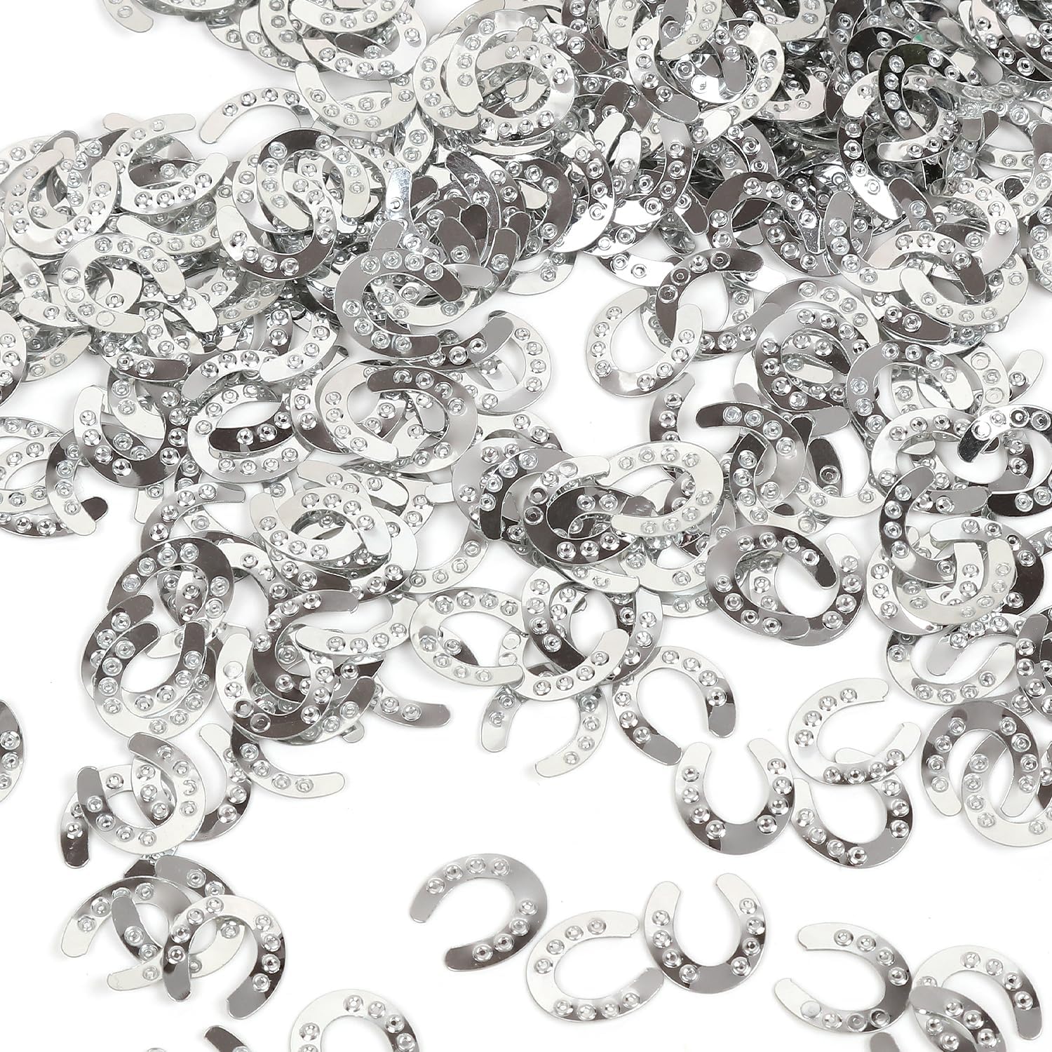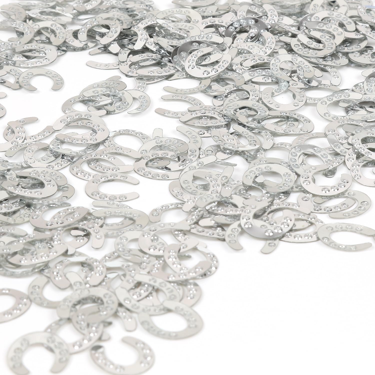 VARIE QUANTITÀ: Il nostro set di coriandoli comprende ferri di cavallo argento da 15 g, perfetti per Capodanno, Capodanno, compleanni e feste a tema. Argento brillante: i nostri coriandoli a ferro di cavallo in argento lucido sono l'aggiunta perfetta a qualsiasi festa di Capodanno o Capodanno. Materiale: plastica Piccoli eye-catcher di grande impatto: ogni singolo coriandolo è alto 1,5 cm, il che costituisce una decorazione da tavolo impressionante. Uso creativo: aggiungi un tocco speciale alla tua festa, ai progetti fai-da-te e all'artigianato: questi coriandoli sono versatili e garantiranno che saranno il momento clou del tuo evento.