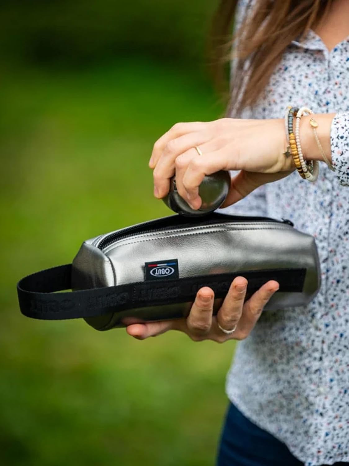 Borsa in pelle per 3 palline da bocce.