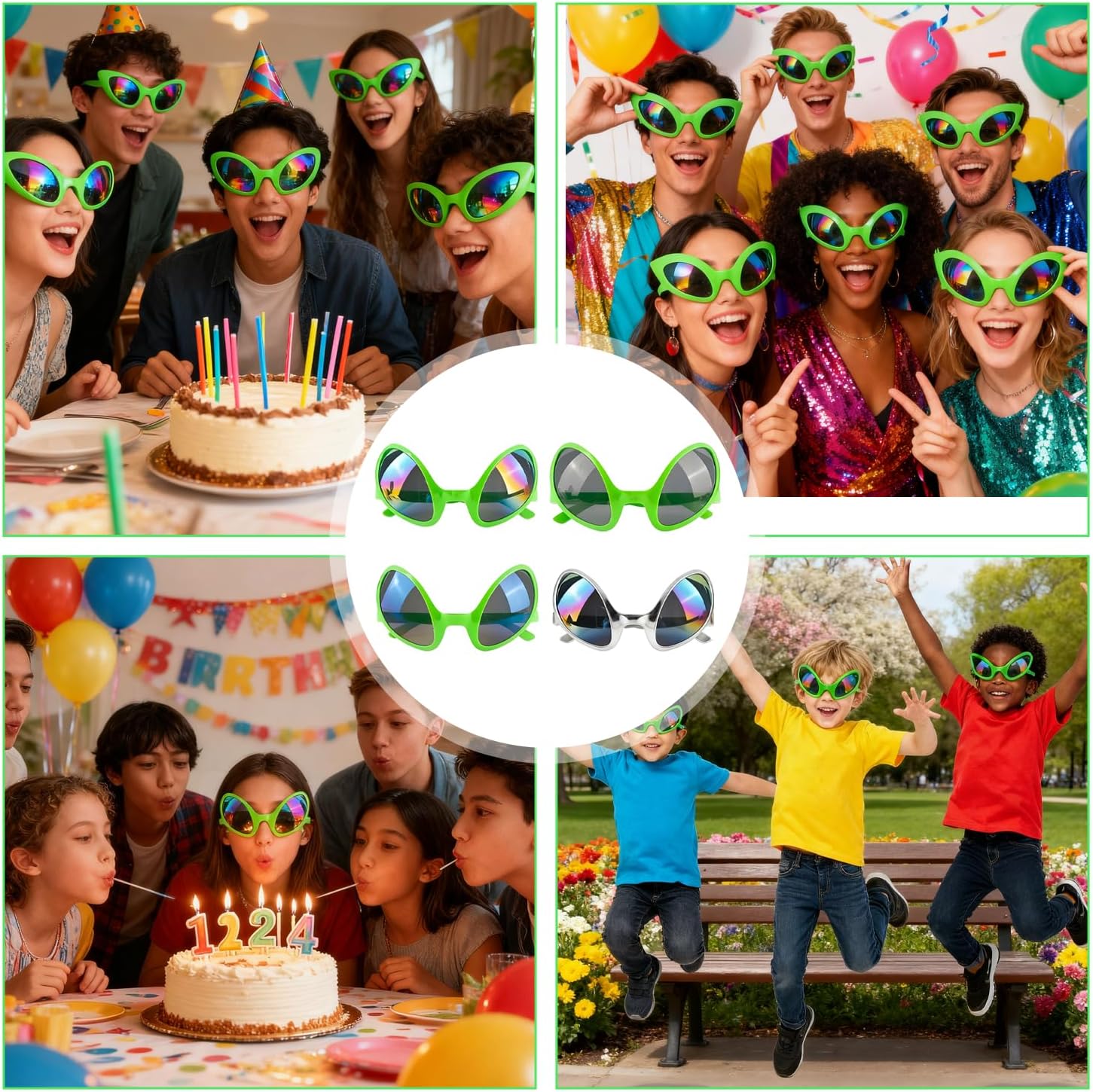 Descrizione prodotto Alien Occhiali da sole Alien Occhiali da sole Alieni Costume Occhiali da sole Alieni Bomboniere Accessori Alien Rainbow Lens Occhiali da sole Alien Boppers 【Caratteristiche】 1. Riceverai 4 occhiali da sole alieni con forme e colori classici, che hanno un eccellente effetto decorativo e sono molto adatti per vestirsi alle feste per farti sembrare più attraente. 2. Gli occhiali alieni possono essere utilizzati come oggetti di scena fotografici per creare stili più divertenti, alla moda e novità che faranno notare le persone a prima vista quando entri alla festa, molto attraenti. 3. La dimensione perfetta degli occhi alieni è adatta per la maggior parte degli adulti e degli adolescenti, ed è leggera, quindi non sentirai pressione se lo indossi tutto il giorno. Deve essere molto interessante regalarlo ai bambini. Specifiche tecniche: Dimensioni: 13,7 x 13,6 cm. Colore: verde, argento. Materiale: plastica. Contenuto della confezione: 1 x Occhiali lenti colorate con montatura verde 1 x Occhiali con lenti grigie con montatura verde 1 x Occhiali con lenti blu montatura verde 1 x Occhiali con lenti colorate con montatura argento Avviso di sicurezza No