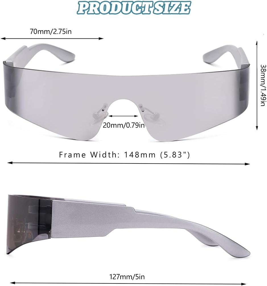 【Materiale di alta qualità】questi occhiali divertenti sono realizzati in materiale PC di alta qualità, leggeri e comodi da indossare e gli occhiali futuristici possono anche eliminare. 【Occhiali da sole futuristici】questi occhiali da festa sono caratterizzati da uno stile minimalista e dal design delle lenti senza bordo, belli e futuristici e offrono una visione chiara e naturale. 【Occhiali da sole alla moda】grazie al suo look alla moda, è adatto per costumi da personaggio e accessori fotografici e ti aiuta a catturare l'attenzione della folla. 【Ampie applicazioni】Questi occhiali da sole techno sono adatti a diverse occasioni, indossando questi occhiali diventerai un alieno, un ciclope e diventerai l'obiettivo più accattivante tra la folla. 【Servizio post-vendita soddisfacente】Siamo disposti a fornirti un servizio post-vendita soddisfacente al 100%. Se non sei soddisfatto del nostro occhiali futuristici uomo, non esitare a contattarci.