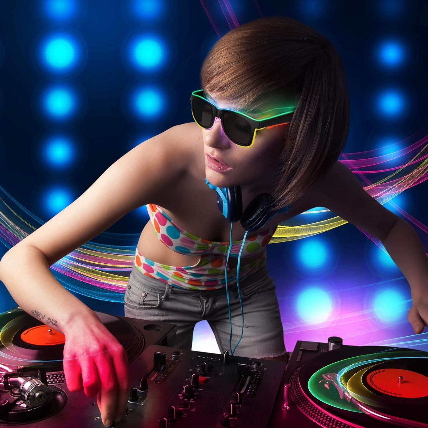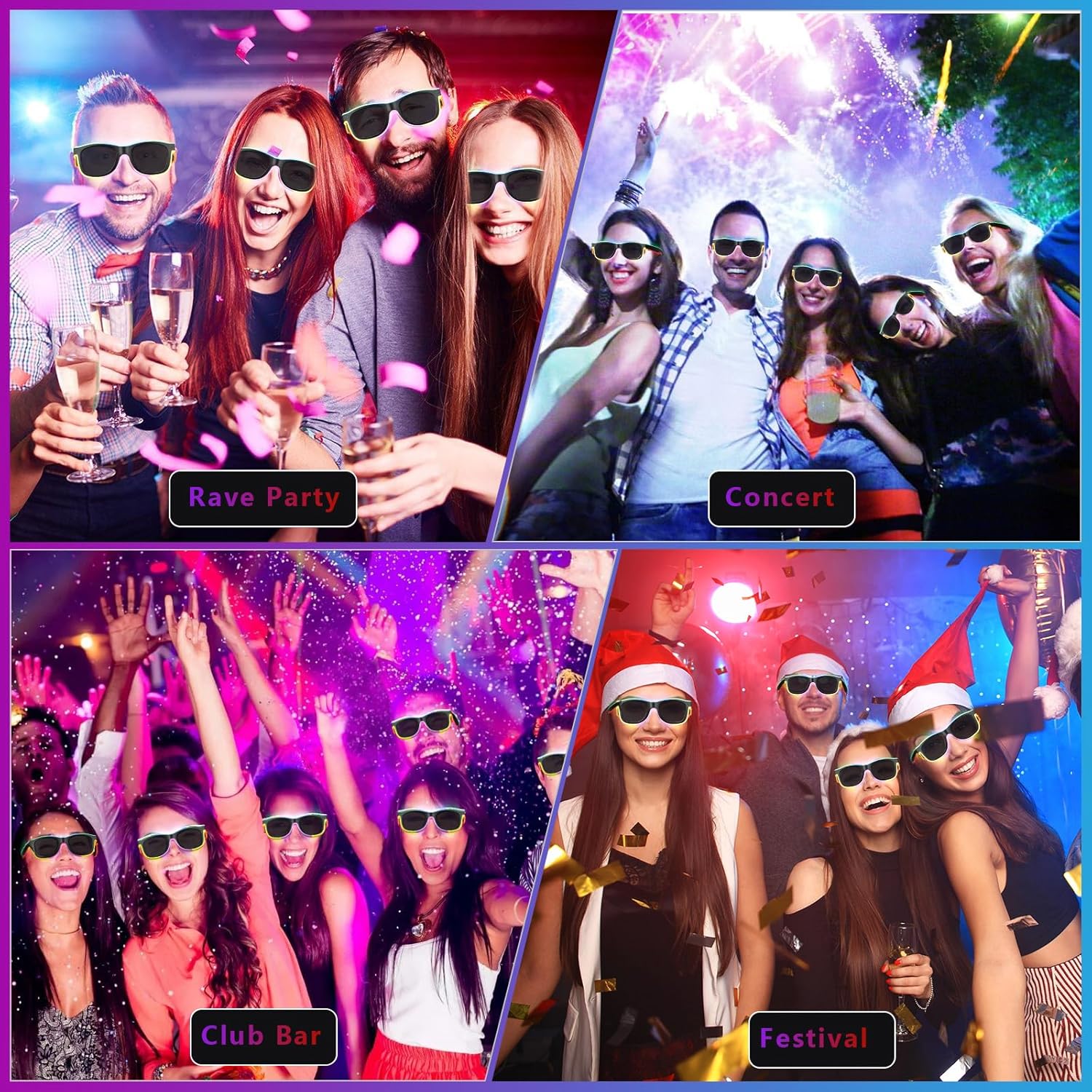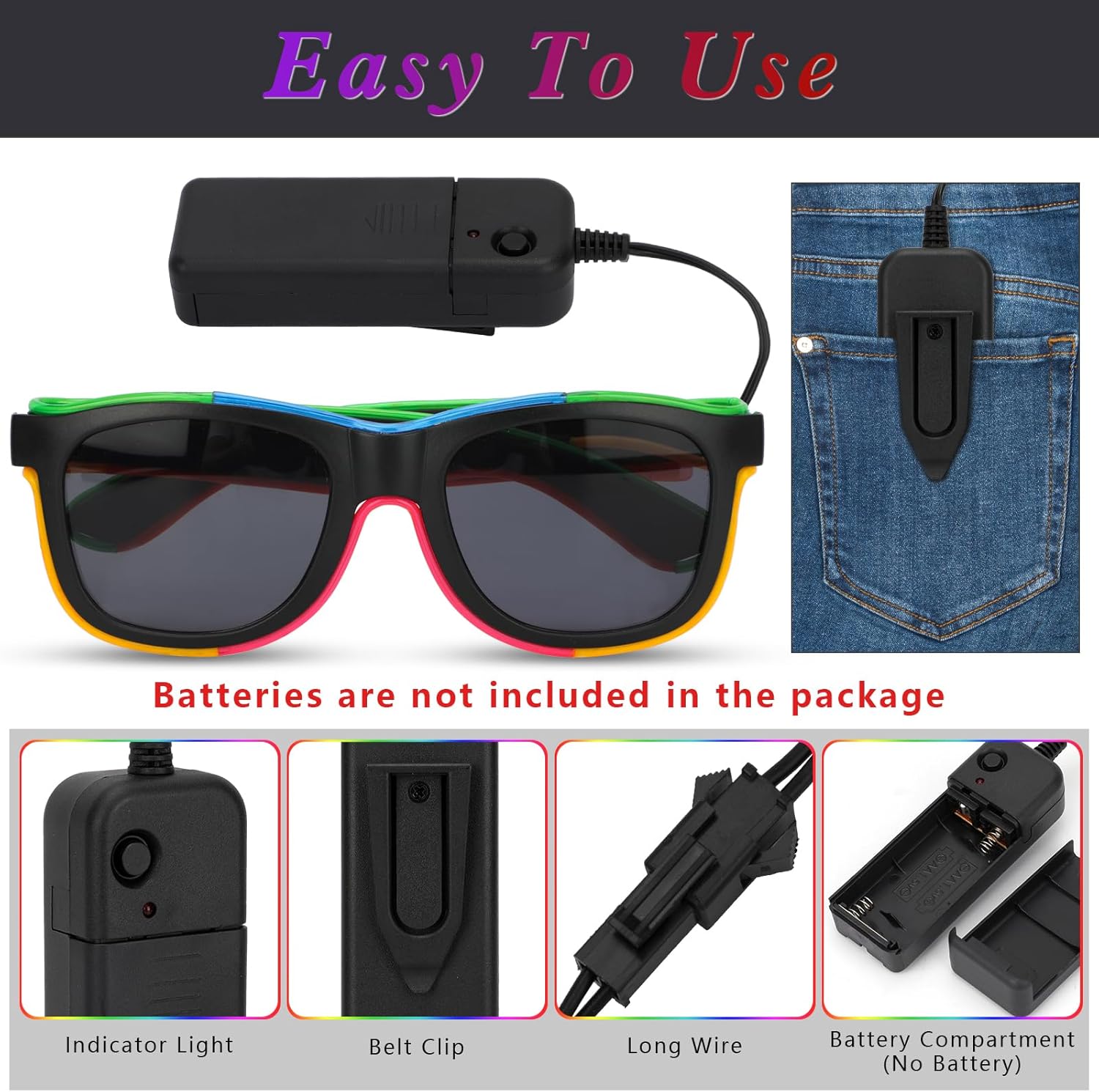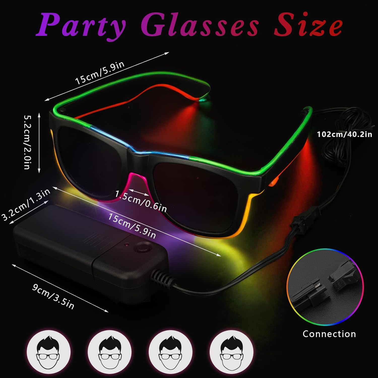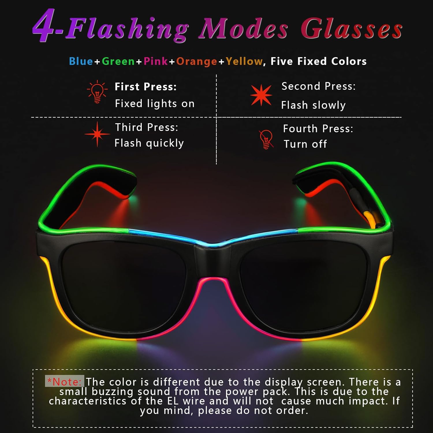 Occhiali LED Hifot con filo EL, occhiali da sole LED al neon, 4 modalità lampeggianti occhiali da festa al neon occhiali rave, occhiali da festa colorati occhiali luminosi divertenti per feste rave Halloween concerti EDM dance bar club DJ