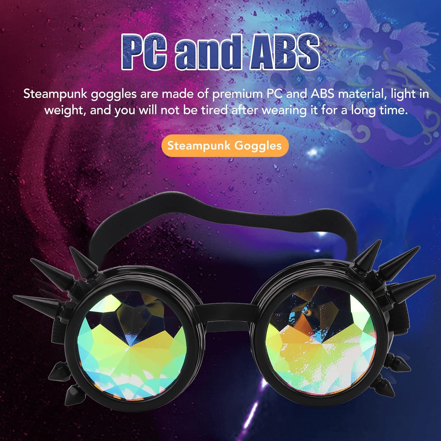 1. Squisita artigianalità: gli occhiali retrò, lo stile steampunk sono di squisita fattura e dotati di lenti caleidoscopiche, piene di personalità. 2. Poggiasaso regolabile: gli occhialini steampunk hanno un nasello regolabile, che è una taglia unica adatta sia per visi grandi che piccoli. 3. Con fascia elastica regolabile: gli occhiali da sole caleidoscopio hanno una fascia elastica di regolazione della fibbia, altamente elastica e adatta alla maggior parte dei tipi di testa. 4. Ampiamente applicabile: i nostri occhiali caleidoscopio rave sono applicabili a una vasta gamma di luoghi come retrò, decorazioni, feste e Halloween, ecc. 5. PC e ABS: gli occhiali Steampunk sono realizzati in policarbonato e ABS di alta qualità, leggeri e non ti stancherai dopo averli indossati per un lungo periodo di tempo. Specifiche tecniche: Tipo di articolo: occhiali Steampunk. Materiale: PC, ABS Contenuto della confezione: 1 paio di occhiali Steampunk.