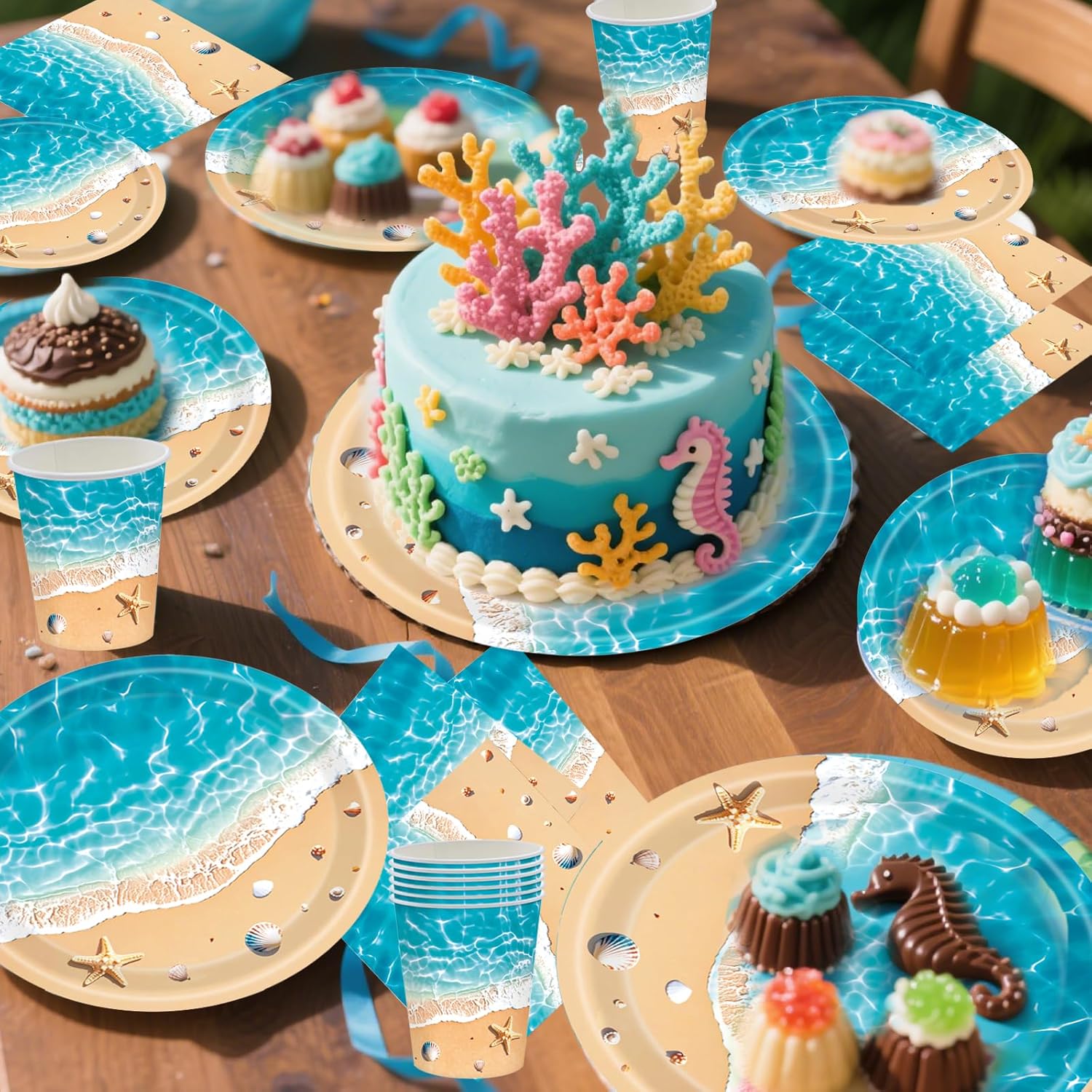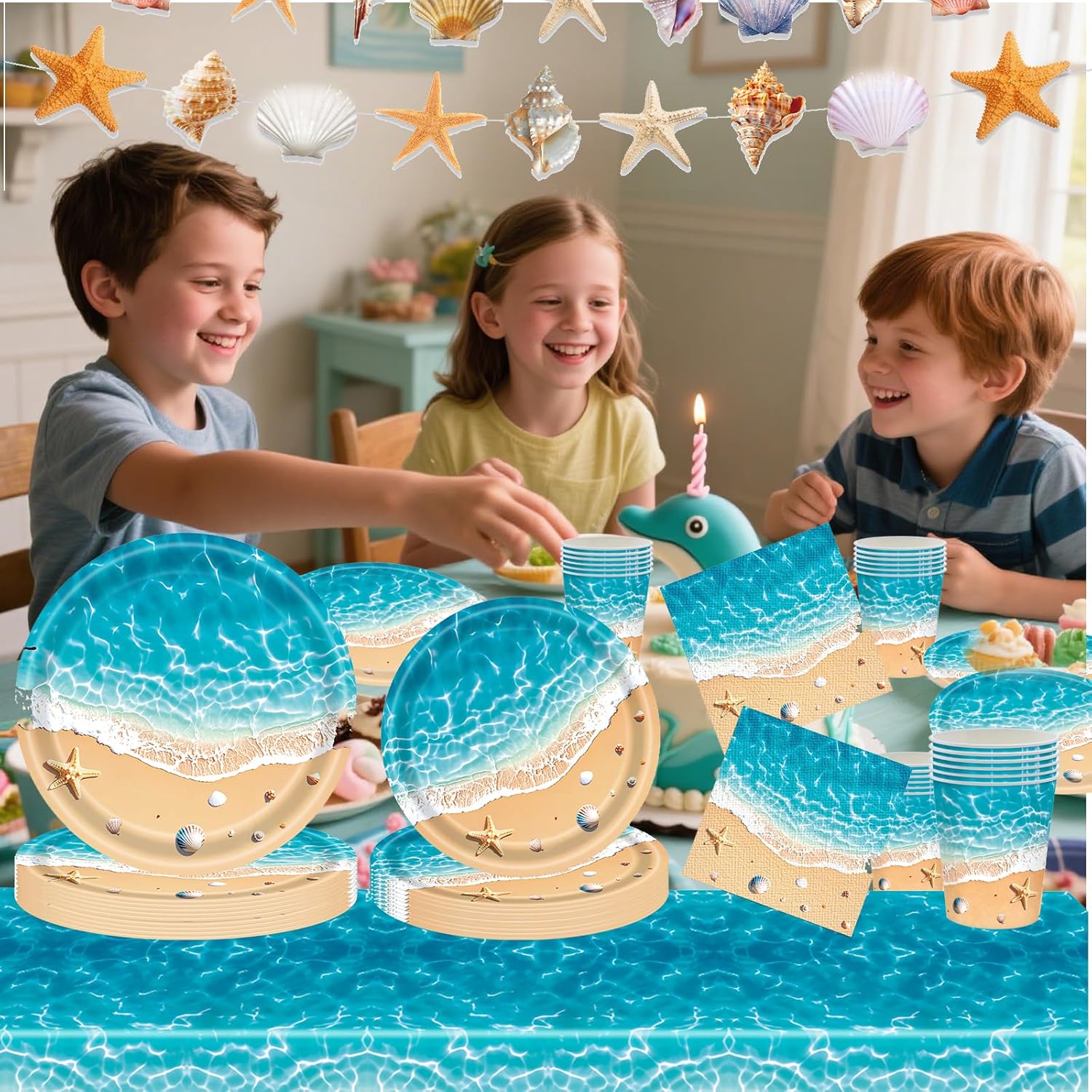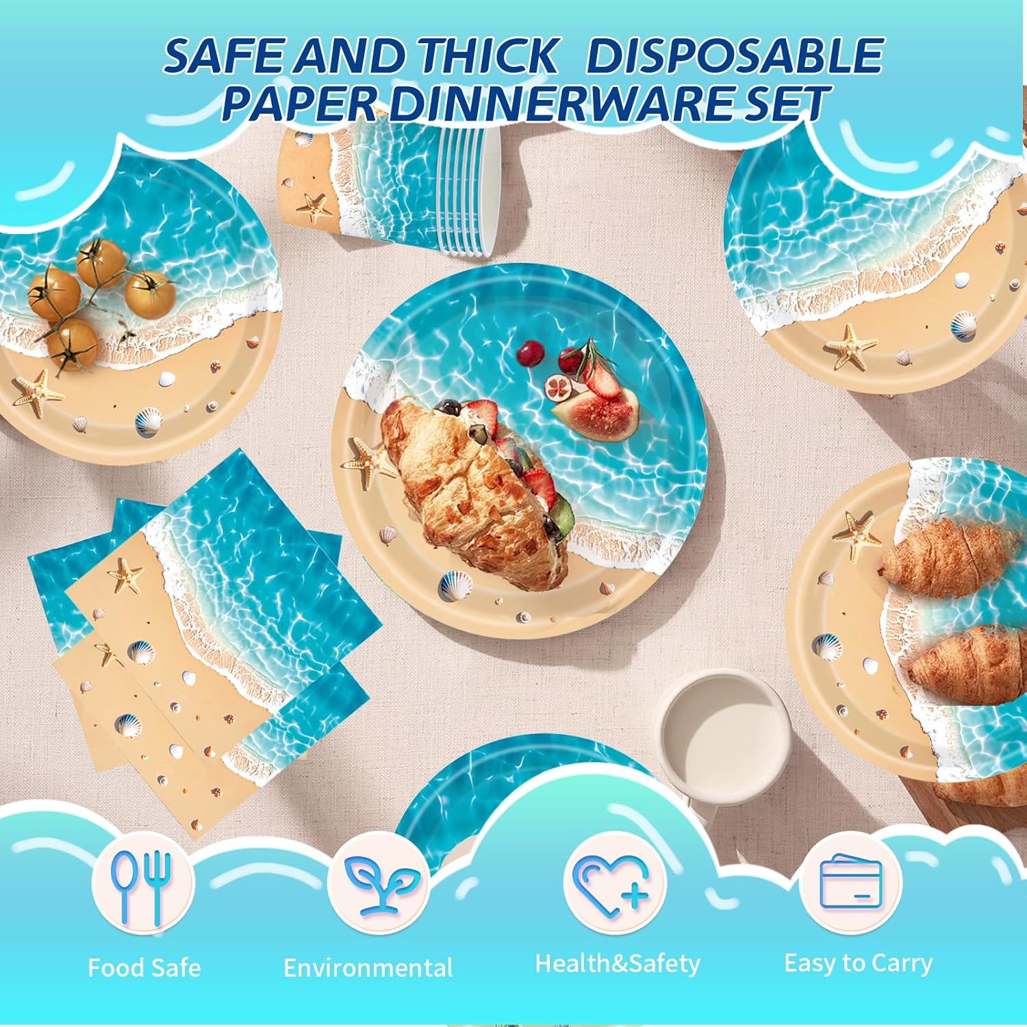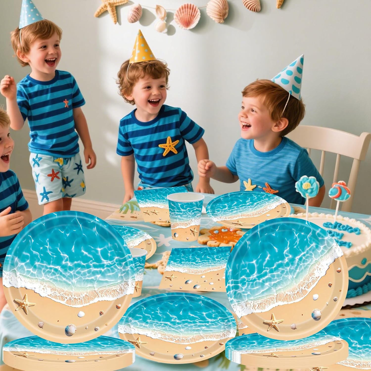 Design allegro sulla spiaggia e sul mare: illustrazioni colorate di onde, conchiglie e ombrelloni porteranno una vera sensazione di vacanza alla vostra festa. Set completo da 50 pezzi: contiene 10 piatti (9"), 10 piatti (7"), 10 tazze e 20 tovaglioli, adatti per fino a 10 bambini o ospiti. . Ideale per compleanni estivi: perfetto per feste in spiaggia, feste in giardino e feste a tema marittimo per ragazzi e ragazze. Sicura ed ecologica: realizzata in carta robusta per alimenti, senza BPA, biodegradabile e riciclabile. Facile e senza stress: tutto ciò di cui hai bisogno per una decorazione di successo in un unico set: risparmia tempo e fatica durante la preparazione