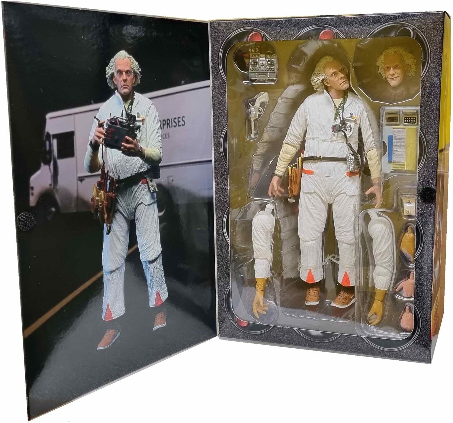 Statuetta molto realistica di Doc Emmett Brown da 18 cm con punti articolari Numerosi accessori forniti come una rivoluzione, un telecomando, portadocumenti…Testine e mani intercambiabili. Modello in edizione limitata, una figura da non perdere! Una fantastica idea regalo - Spedizione veloce