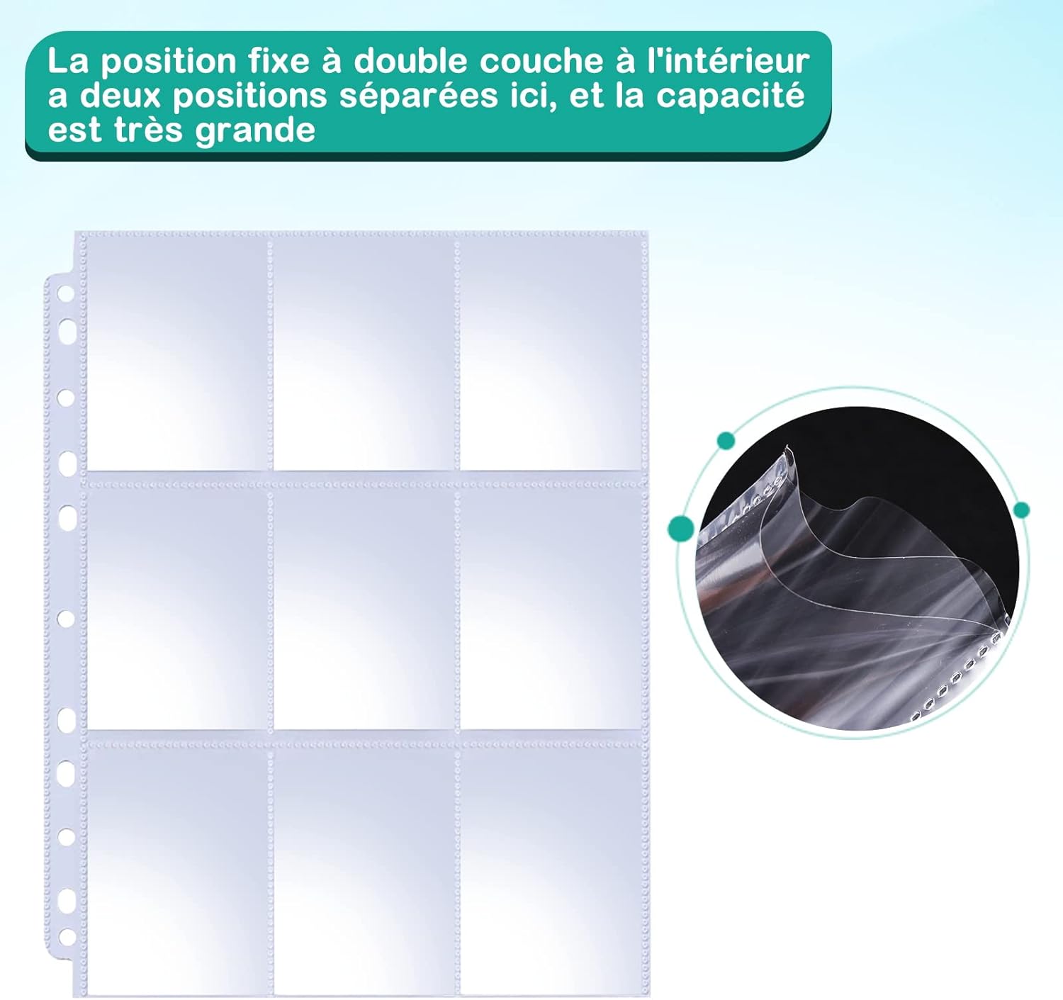Robusto e durevole: la custodia per carte Pokemon è realizzata in polipropilene trasparente, molto resistente e non facile da graffiare, protegge le tue carte dallo sbiadimento e dalla polvere Ampio spazio: 32 buste protettive 18 tasche (9 su ciascun lato), 576 slot per carte in totale, raddoppia la capacità, ogni scomparto misura 7 cm x 9,4 cm, adatto per carte da calcio, carte da gioco, giochi di carte collezionabili, ecc. Fori convenienti: il raccoglitore di carte Pokemon ha 11 fori sulla sinistra per adattarsi a tutti gli standard pagine. La custodia per carte non si adatta solo a raccoglitori A4 standard, ma anche ad album da collezione. Carte collezionabili: le nostre carte collezionabili si adattano a tutte le carte di dimensioni standard come carte da calcio, carte anime, carte da gioco, carte da gioco, altre carte collezionabili anime e altro ancora. La custodia delle carte ti consente di mostrare i tuoi giochi di carte collezionabili. Custodia per carte Pokemon: la custodia per carte Pokemon viene utilizzata per conservare Pokemon, adesivi, francobolli, ecc., lasciando ricordi indelebili