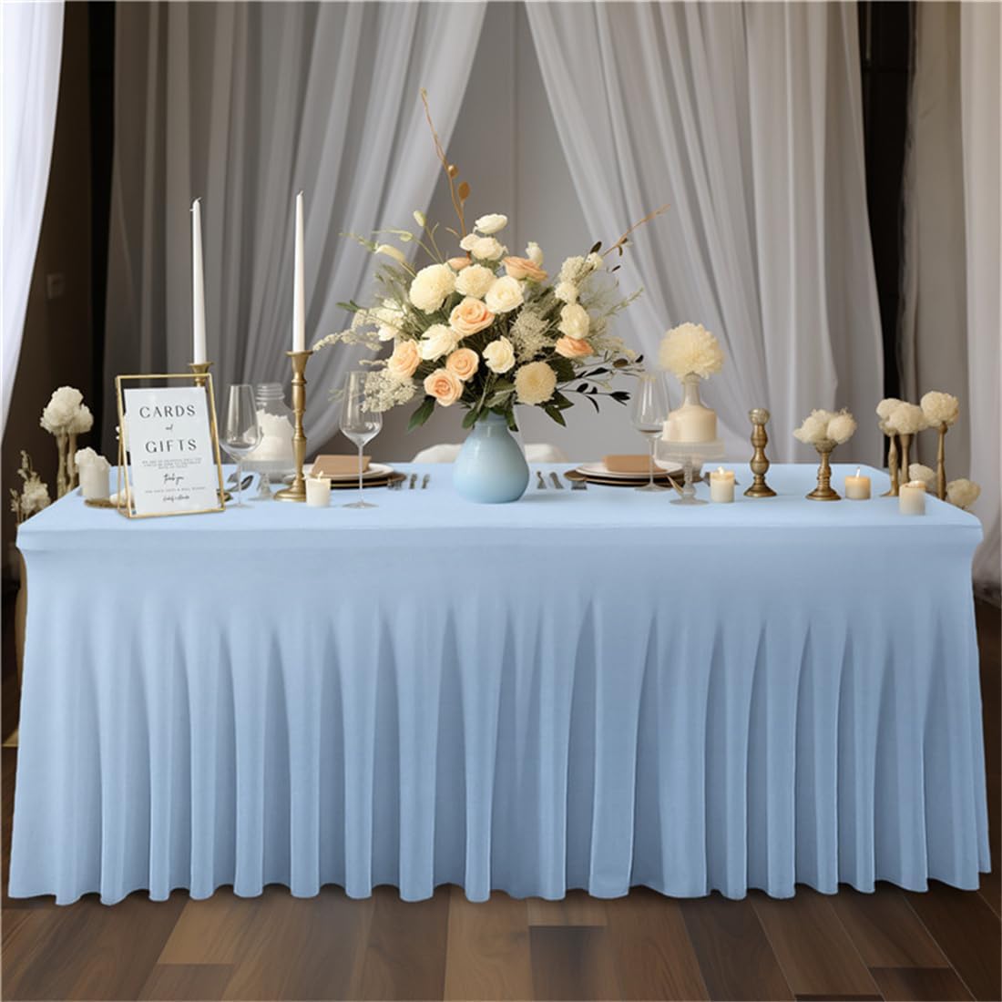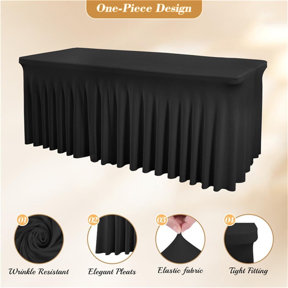 【Tessuti elasticizzati】 Le nostre tovaglie in poliestere sono realizzate in spandex. Morbido, elastico, forte, imponente. È una tovaglia resistente e assolutamente riutilizzabile. Lavalo, ogni volta che lo utilizzerai per qualsiasi occasione o evento, sembrerà nuovo. 【Tovaglia e gonna 2 in 1 perfette】 Non è necessario acquistare tovaglie e gonne separate. La tovaglia in spandex 2 in 1 si adatta all'intero tavolo con un'elegante gonna a pieghe grazie al suo design creativo e al tessuto elastico. 【Multiuso】 Questa tovaglia con gonna è perfetta per casa, hotel, matrimoni, eventi, banchetti, cene, riunioni, celebrazioni, cerimonie, decorazioni per la sala da pranzo di famiglia, ecc. La tovaglia si adatta perfettamente al tavolo e dona un look elegante e sofisticato accattivante per ogni occasione. 【Facile da lavare e risparmiare】 Lavare a mano e in lavatrice in acqua fredda, stirare, asciugare in asciugatrice, non candeggiare, per qualsiasi domanda, non esitate a contattarci. 【Facile da usare】 Gonna da tavolo facile da installare. Nessun assemblaggio o tasselli aggiuntivi richiesti. Posizionalo semplicemente sul tavolo del banchetto o della fiera e divertiti. La nostra gonna da tavolo in spandex dona sempre un aspetto pulito ed elegante alla tua tavola e copre tutte le forniture che preferisci nascondere sotto il tavolo.