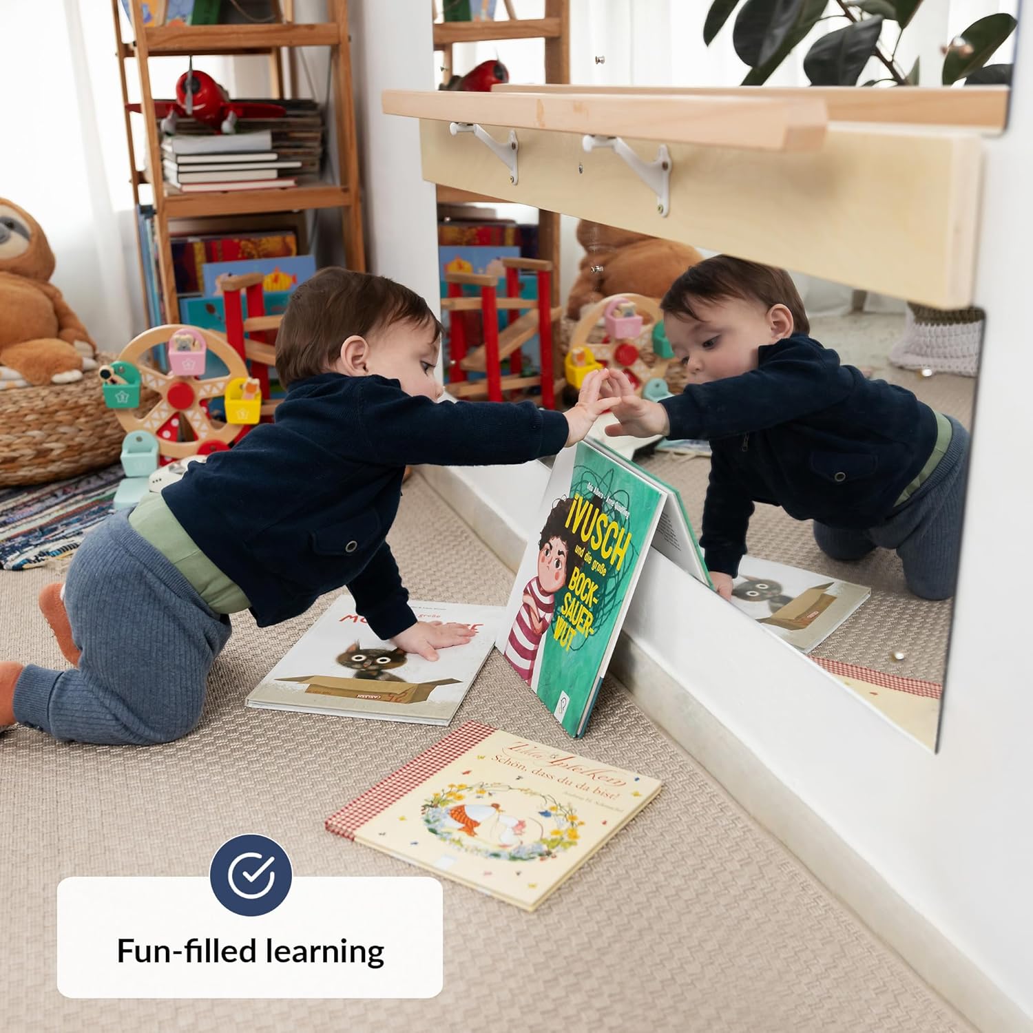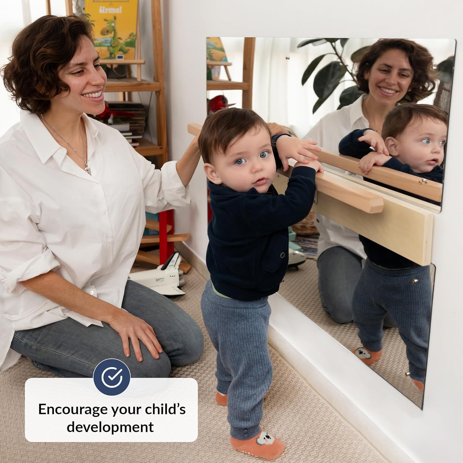 【PROMUOVE L'AUTONOMIA E LO SVILUPPO】 Questo specchio con sbarra aiuta i bambini a sviluppare equilibrio, coordinazione e sicurezza mentre imparano a stare in piedi e camminare. 【STIMOLA LO SVILUPPO MOTORIO】 Lo specchio montessoriano con barra favorisce il rafforzamento muscolare e la motricità globale. Con questo specchio con barra bambini, i piccoli possono osservare i loro movimenti e migliorare la consapevolezza corporea. 【DESIGN RESISTENTE E SICURO】 Realizzato in acrilico infrangibile, questo specchio montessori neonati con barra è progettato per un utilizzo duraturo e sicuro. La barra in legno liscia garantisce una presa stabile e confortevole. 【DIMENSIONI PERFETTE PER I BAMBINI】 Con una misura di 114 x 30 cm, questo specchio con barra da parete è ideale per camerette, scuole Montessori e spazi educativi. È posizionato all’altezza giusta per incoraggiare l’esplorazione autonoma. 【QUALITÀ GARANTITA】 Ci impegniamo a offrire prodotti di alta qualità e un eccellente servizio clienti. Se non sei soddisfatto del tuo acquisto per qualsiasi motivo, contattaci e ti rimborseremo senza esitazione.