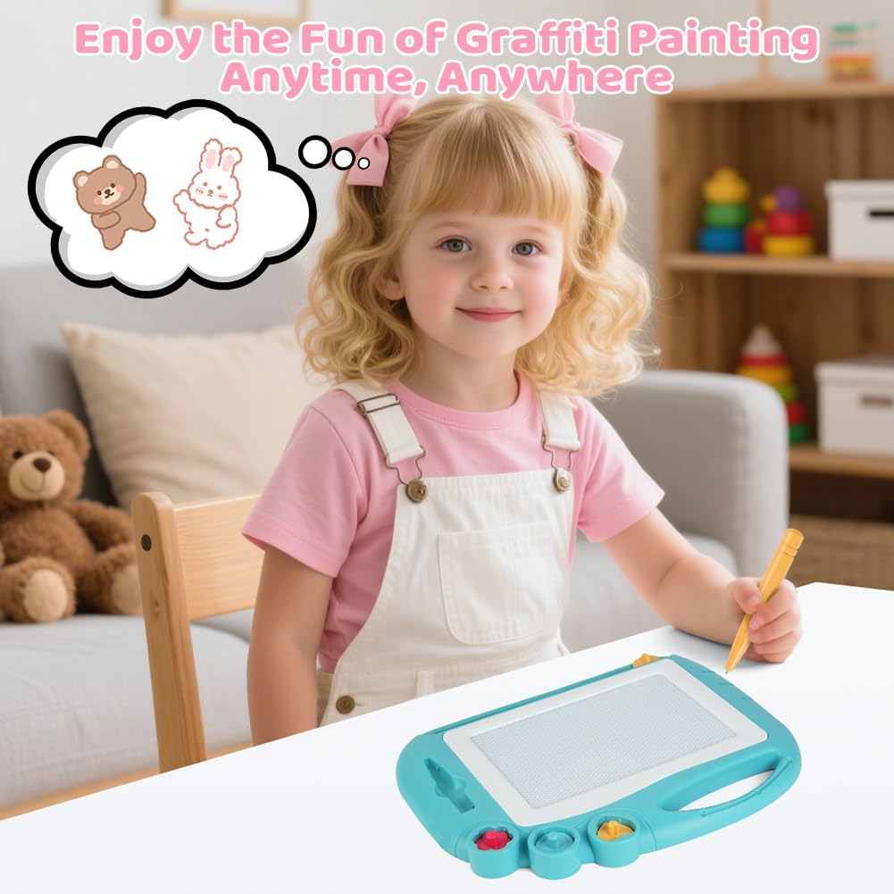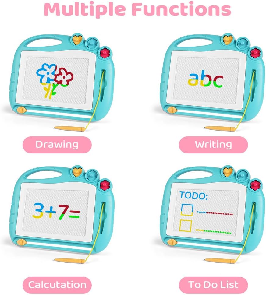 🎨【Materiale sicuro】Questa lavagna da disegno magnetica è realizzata in plastica ABS di alta qualità e resistente. La lavagna per graffiti è atossica, sicura e affidabile, non contiene BPA ed è adatta a bambini da 1 anno in su. La lavagna magica presenta bordi lisci e arrotondati e una testa della penna arrotondata per prevenire lesioni, rendendola molto sicura per i bambini. I genitori possono lasciare che i bambini da 1 anno in su giochino con questo giocattolo educativo in tutta sicurezza. 🎨【Tavolo da disegno colorato】Questo tavolo da disegno presenta quattro diverse aree colorate: blu, rosso, giallo e verde, permettendo ai bambini di divertirsi con il disegno colorato. I colori vivaci non solo attirano l'attenzione dei bambini, ma stimolano anche la loro creatività e immaginazione. Allo stesso tempo, allenano la coordinazione occhio-mano e migliorano la percezione dei colori. 🎨【Design facile da cancellare】La tavoletta da disegno è facile da cancellare. Basta far scorrere il pulsante di cancellazione per azionarla. Indipendentemente da ciò che il bambino disegna, anche se l'immagine è disordinata, può essere facilmente cancellata e ricreata. Questo offre ai bambini un ambiente di disegno pulito e sicuro e fa risparmiare ai genitori il tempo di pulire i vestiti o le mani sporche dei propri figli. 🎨【Timbri carini】Sono inclusi 3 timbri diversi: 1 cerchio, 1 fiore e 1 amore, per aggiungere divertimento al blocco da disegno. Il foro più profondo impedisce che i timbri cadano e si perdano facilmente. Con l'aiuto di timbri diversi, i tuoi bambini avranno più opzioni di disegno. Offrono ai tuoi bambini l'opportunità di usare vividamente la loro immaginazione per creare bellissime scene nella loro mente. 🎨【Regali adatti per bambini dai 3+ anni in su】Con questa lavagna colorata, le bambine possono esercitarsi a scrivere ed esprimere le proprie idee e la propria creatività attraverso la pittura e la scrittura, rendendo l'apprendimento davvero divertente. Sia all'interno che all'esterno, le bambine possono divertirsi senza limiti dipingendo. È un regalo premuroso e una scelta adatta per compleanni, Pasqua, Natale, Ringraziamento, Capodanno e altre festività.