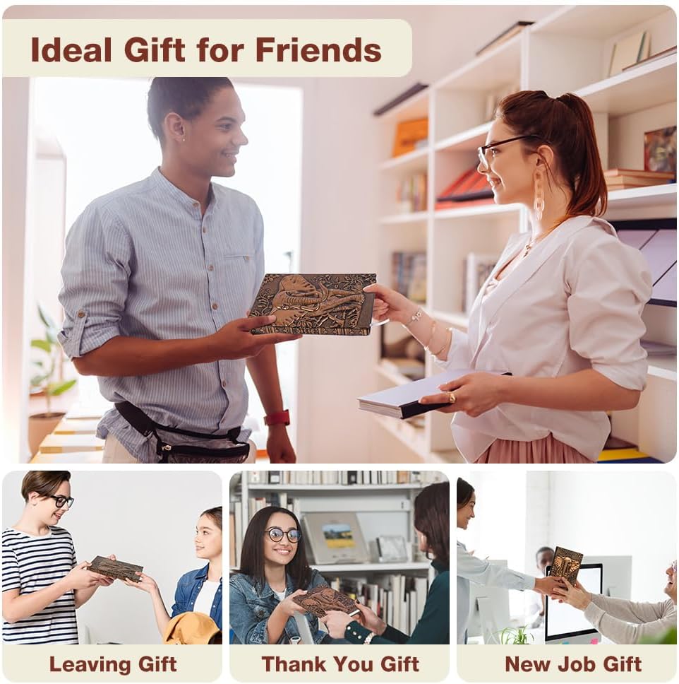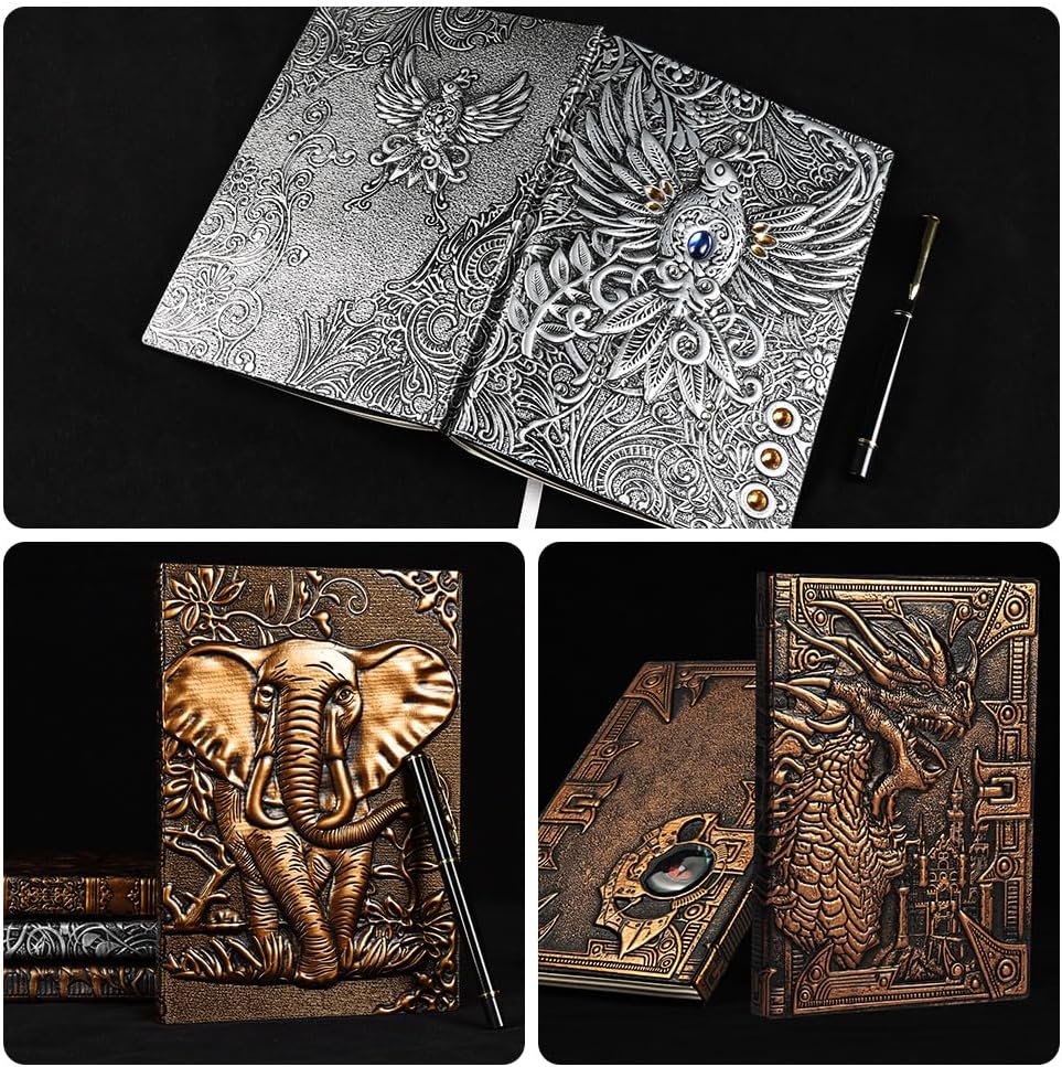 Blocco note unico: questo diario retrò A5 adotta un design con copertina rigida in rilievo 3D, con goffratura convessa e concava sui lati anteriore e posteriore e il motivo della copertina in rilievo è realistico. La copertina rigida è resistente e ha una trama metallica, offrendoti un'esperienza tattile e di scrittura unica. Pagine interne di alta qualità: le pagine interne del taccuino A5 sono realizzate in materiale di alta qualità, lo spessore è di 100 g/m². Design piatto a 180°, la carta è abbastanza spessa, l'inchiostro non penetra nella carta fronte-retro, adatta per scrivere facilmente con matita, penna, penna stilografica, ecc. Carta a righe: la copertina rigida del diario è realizzata in pelle PU. Contiene 200 pagine (100 fogli) di carta a righe, con un motivo alternato di carta beige e marrone per proteggere meglio la vista e rendere i registri più chiari e organizzati. Taccuino creativo versatile: utilizzato come taccuino per riunioni, diario di viaggio, taccuino per scrivere poesie, taccuino per obiettivi o pianificazione settimanale. Questo diario retrò non è solo pratico, ma rende ogni record pieno di stile fantasy e divertimento. Bel taccuino: questo taccuino in pelle 3D è un ottimo regalo per gli amanti del DND, per gli appassionati di libri fantasy o per studenti, insegnanti e amici.
