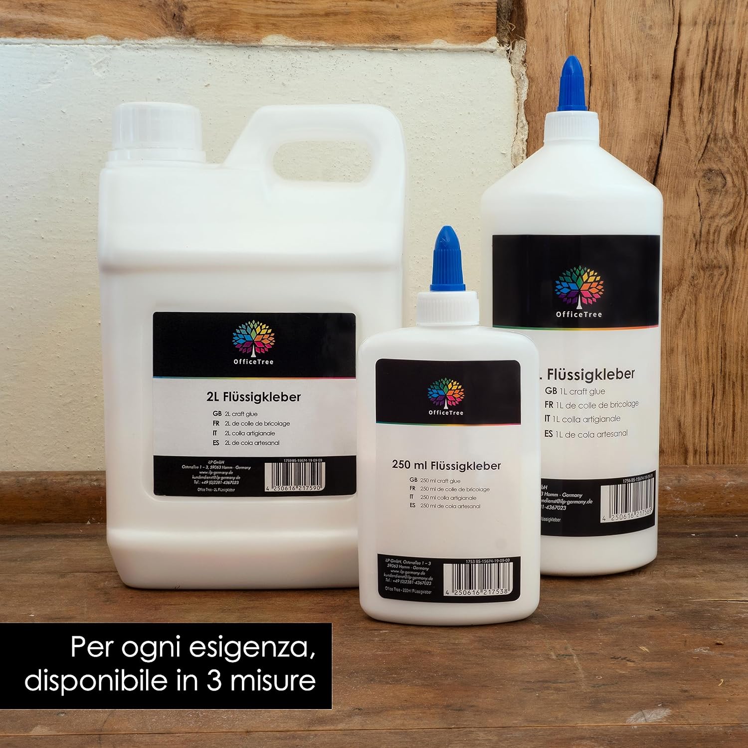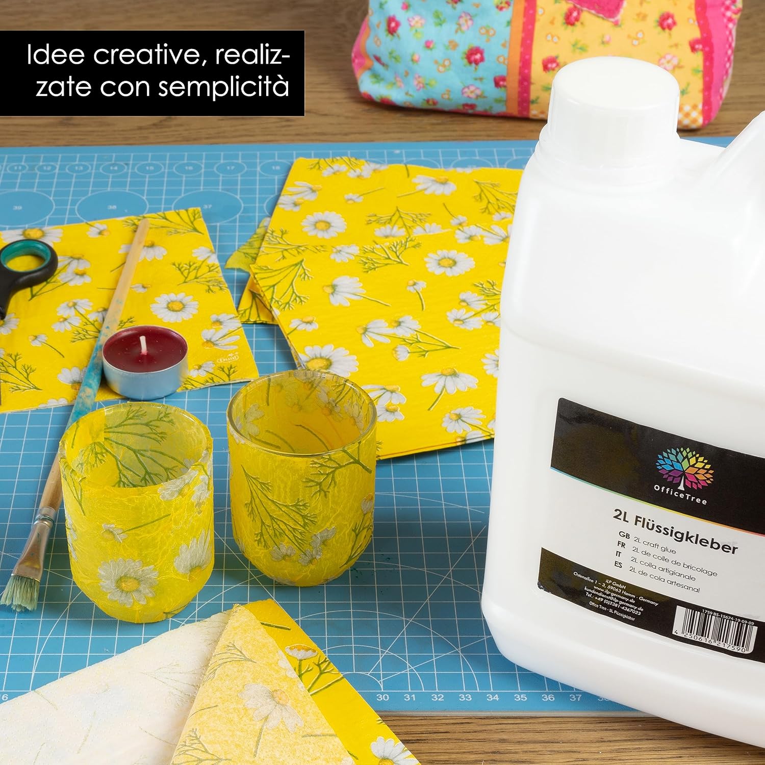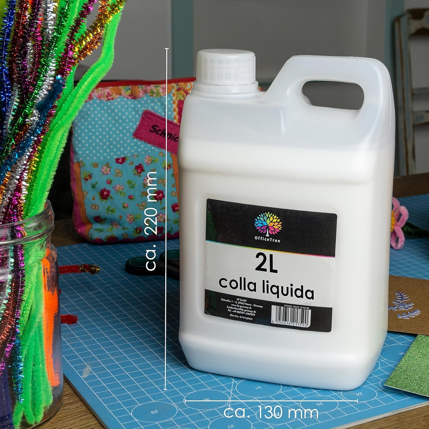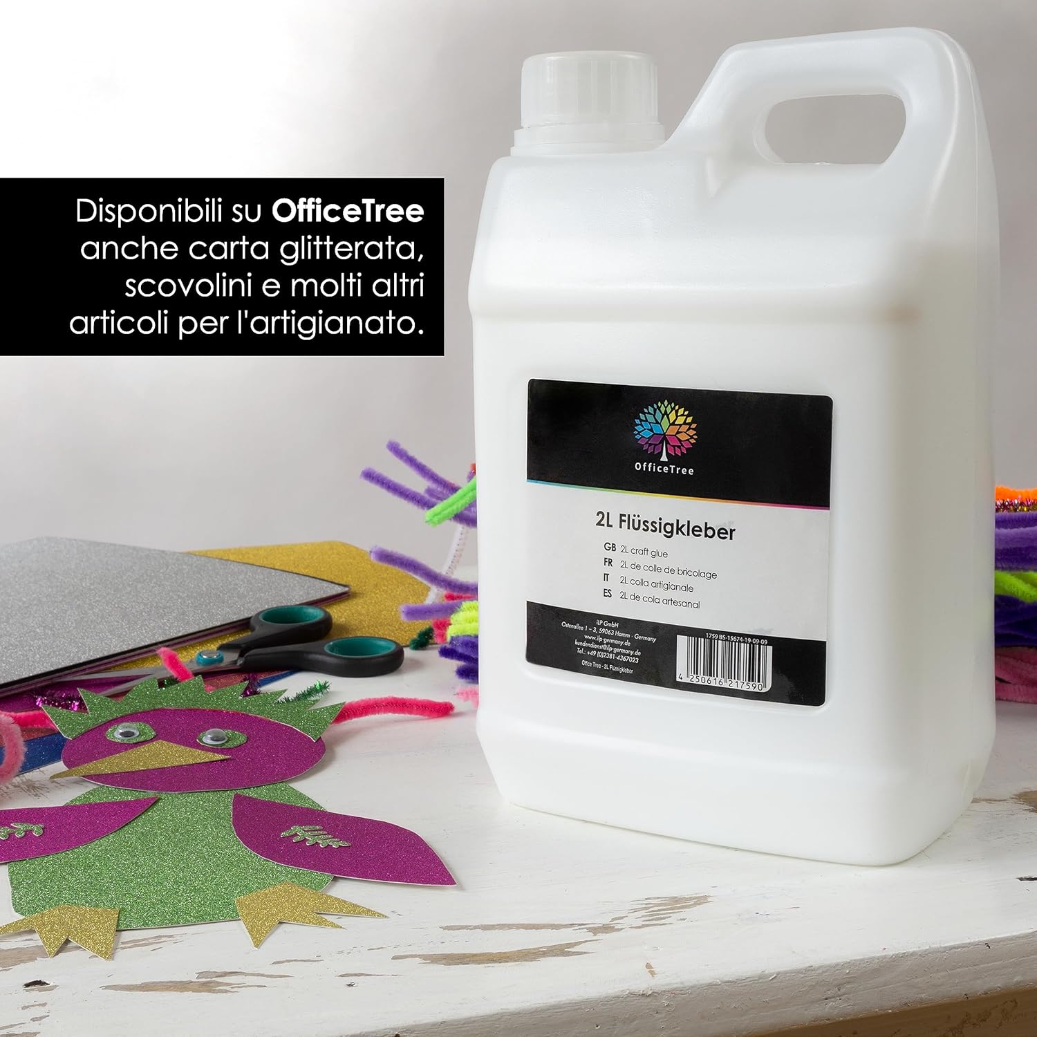 TRASPARENTE – OfficeTree 2 Litro Colla per hobbistica, che diventa trasparente una volta asciutta; a base acquosa, priva di solventi e idrosolubile VERSATILE – Colla universale per carta, cartone, legno, feltro, tessuti, polistirolo e molto altro; adatta per i bambini PRONTA ALL'USO – Colla per imbastire per carta forte per progetti di bricolage all'asilo, a scuola, a casa, per hobbistica e per lavoro DI PRIMA QUALITÀ – Colla inodore per bricolage e decorazioni, di ottima qualità, ideale per piccole e grandi superfici APPLICAZIONE FACILE – Si applica in modo semplice e pulito direttamente dal flacone schiacciabile, ideale per le mani dei bambini; lavabile prima che si asciughi
