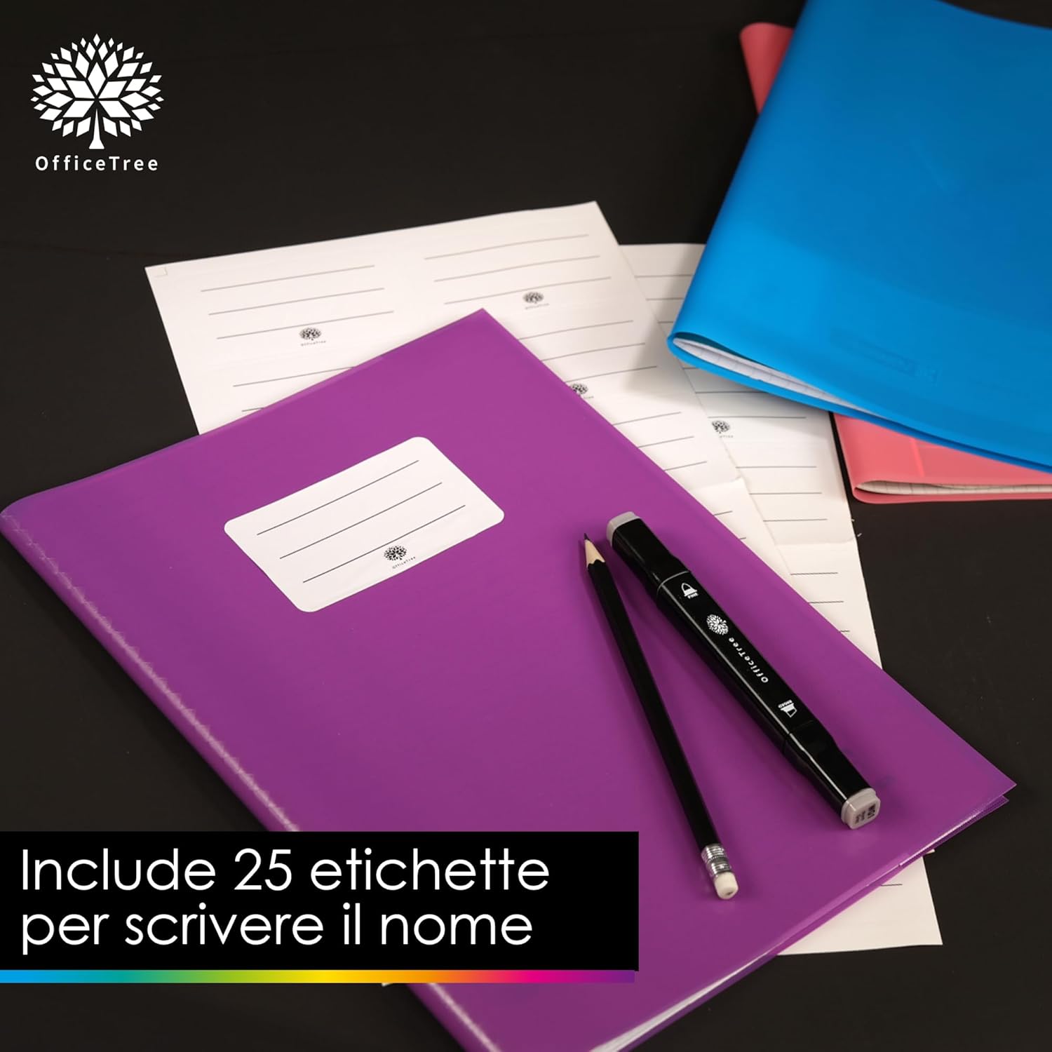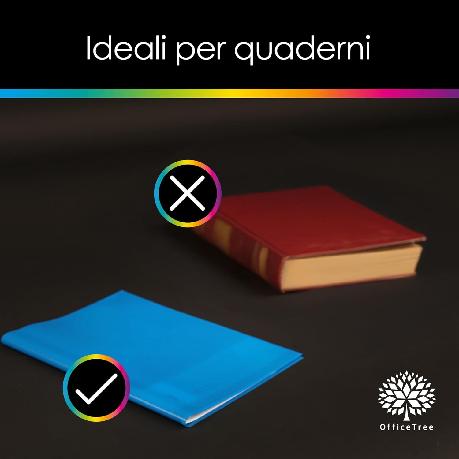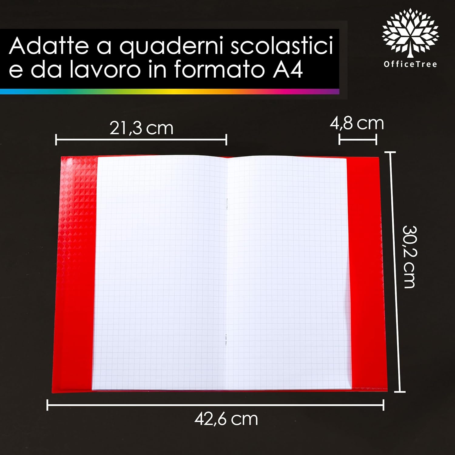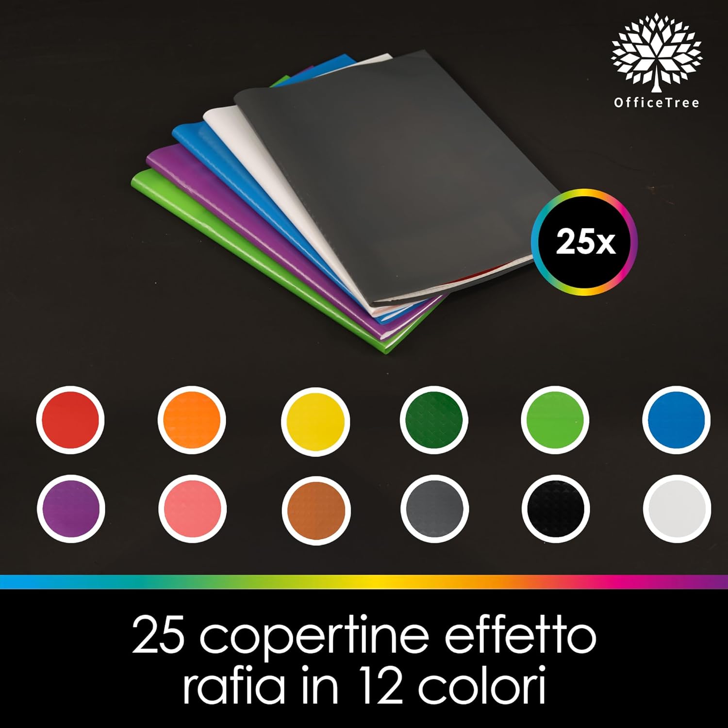 VARIETÀ DI COLORI - OfficeTree copertine colorate quaderni A4 in 12 colori vivaci per organizzare i quaderni in modo chiaro. Set di copertine colorate per quaderni con 3x rosso; 2x arancione, giallo, verde scuro, verde chiaro, blu, viola, rosa, grigio, nero, marrone, bianco. Copertine per quaderni colorate perfetta per contrassegnare con colori diversi le materie a scuola, all'università o in ufficio. IDROREPELLENTE - Copertine plastificate colorate foderine quaderni resistente e durevole con effetto rafia. Le copertine proteggono in modo affidabile dai segni, dall'umidità e dalle orecchie. ETICHETTE PER ETICHETTATURA - Copertine colorate quadernoni con 25 pratiche etichette per un' chiara classificazione. Ideale per scolari, studenti e insegnanti per etichettare rapidamente i quaderni. PERFETTA ADATTABILITÀ - Copriquaderno A4 colorati di dimensioni perfette per tutti i quaderni scolastici e i quaderni di lavoro standard in formato A4. Facile da inserire e tenuta sicura senza scivolare. 21,3 x 30,2 cm chiusa, 42,6 x 30,2 cm aperta, larghezza della copertina 4,8 cm VERSATILE - Foderine colorate quaderni A4 per la scuola, l'ufficio e la casa. Ottime per documenti, ricettari, quaderni per appunti e altro ancora. La varietà di colori delle foderine quadernoni colorate garantisce una rapida panoramica.